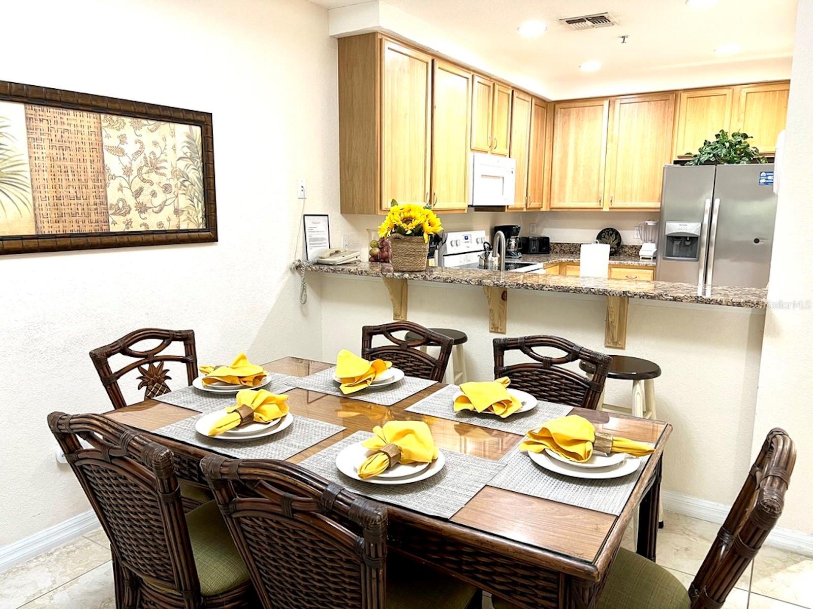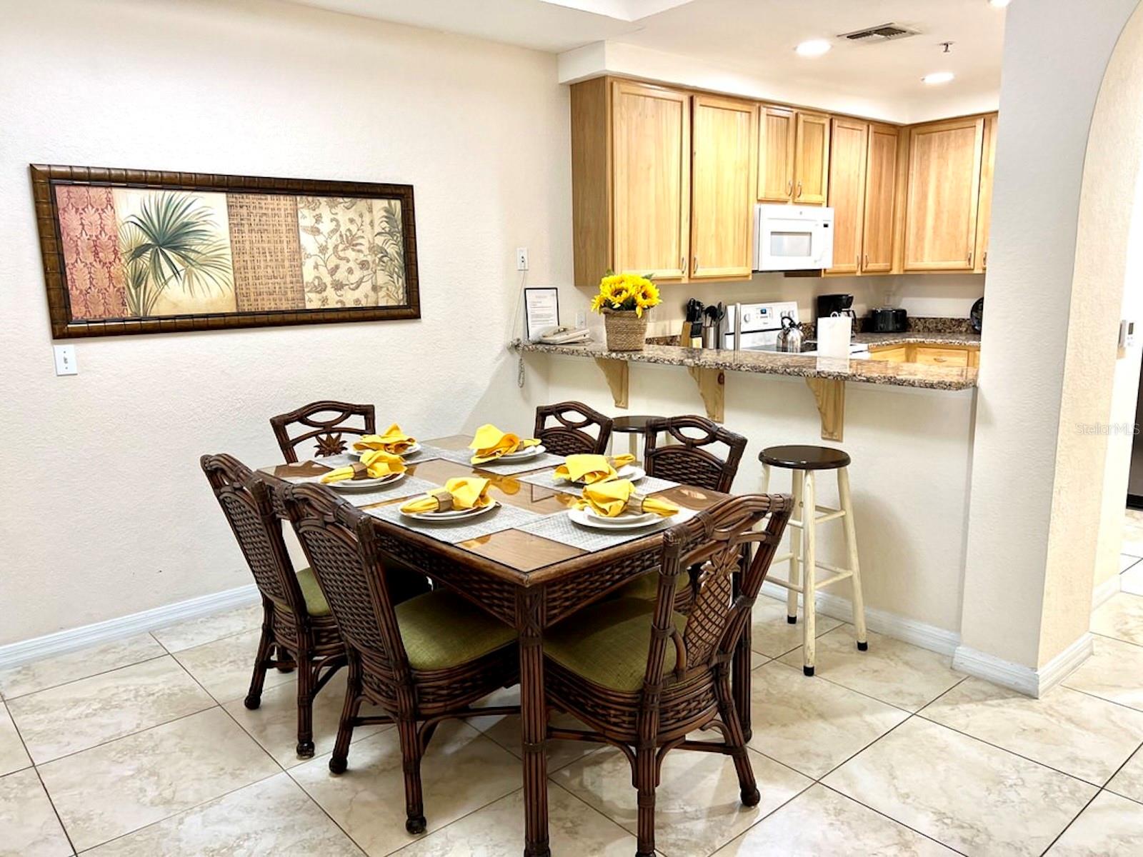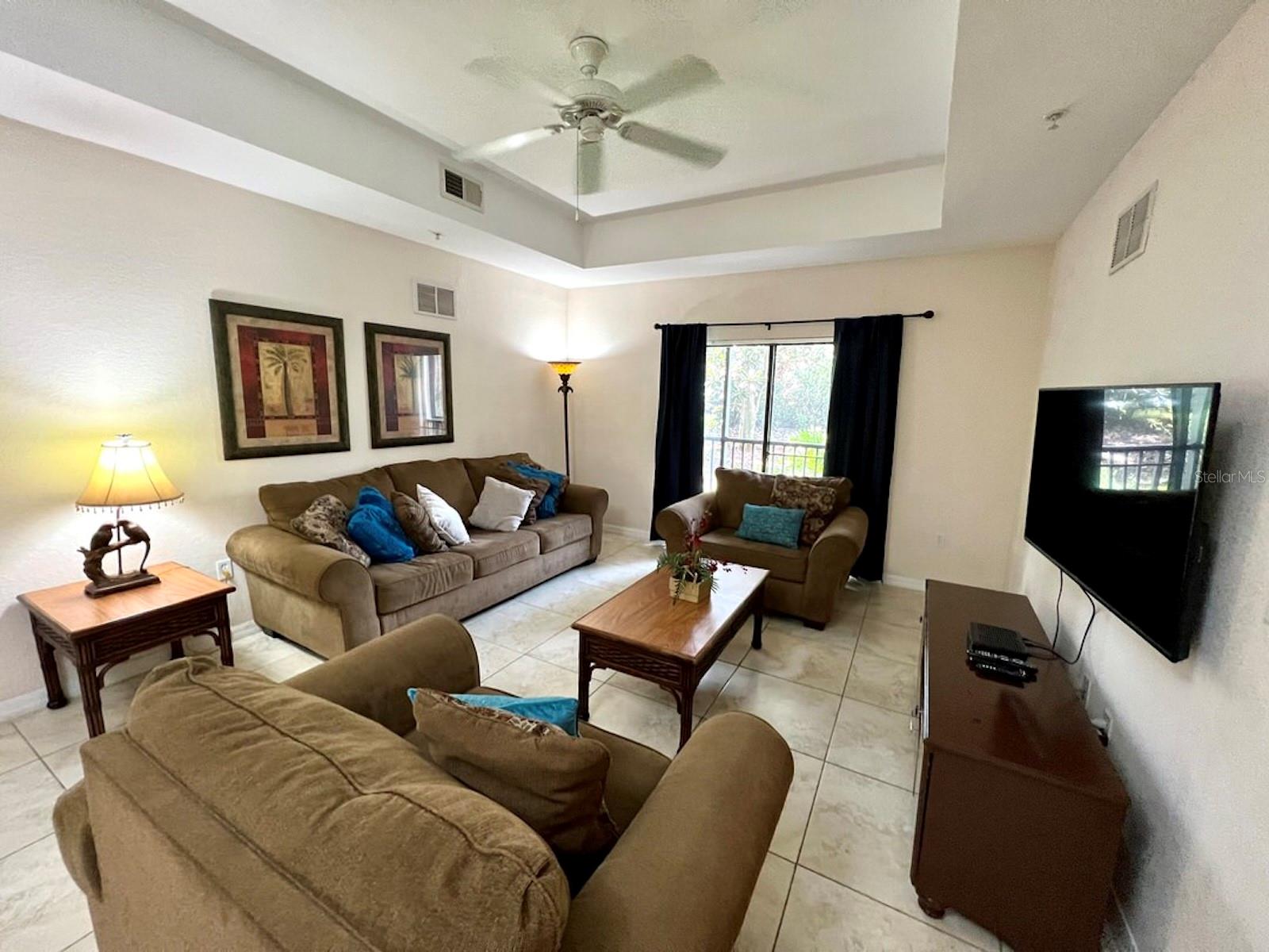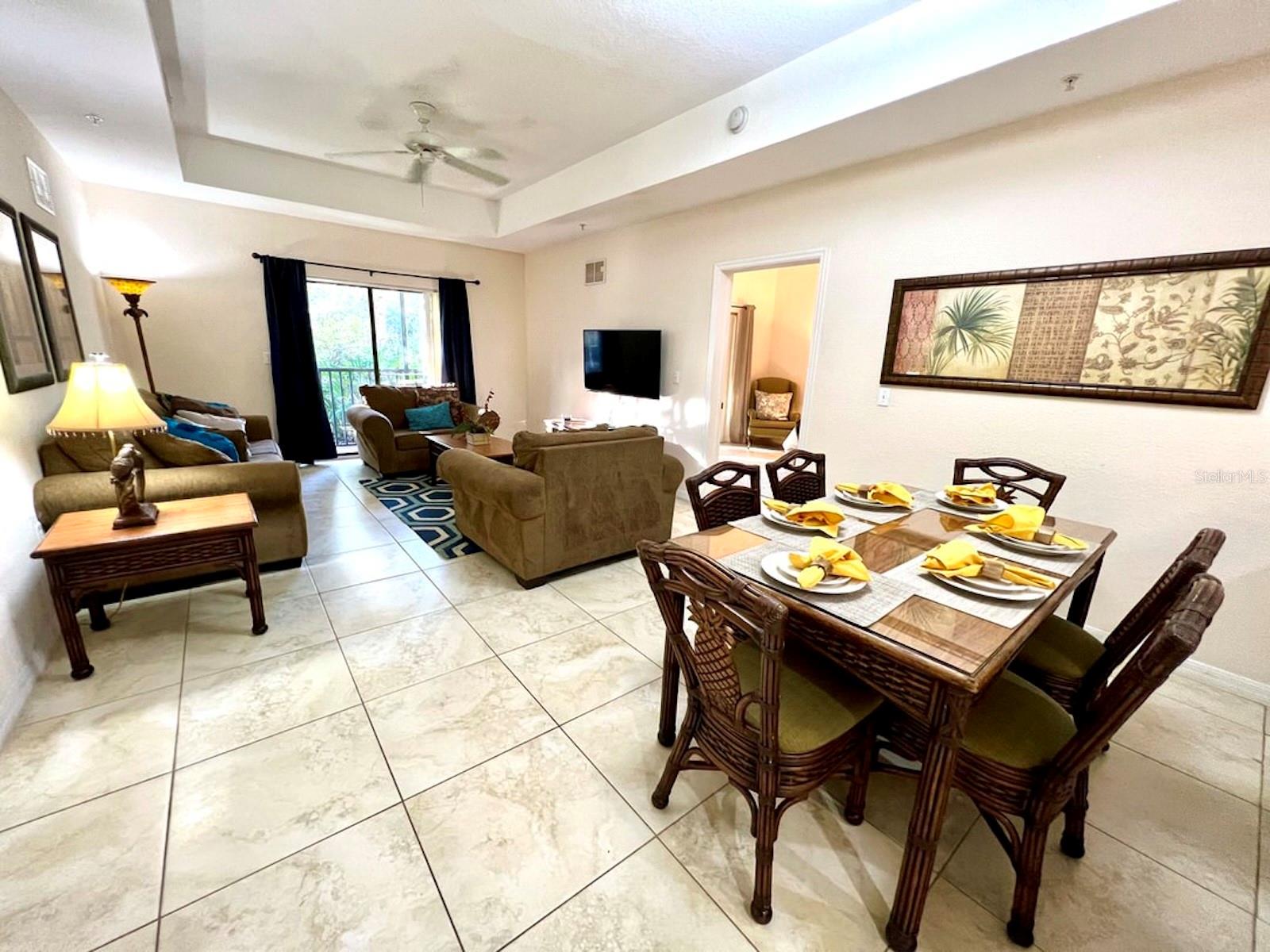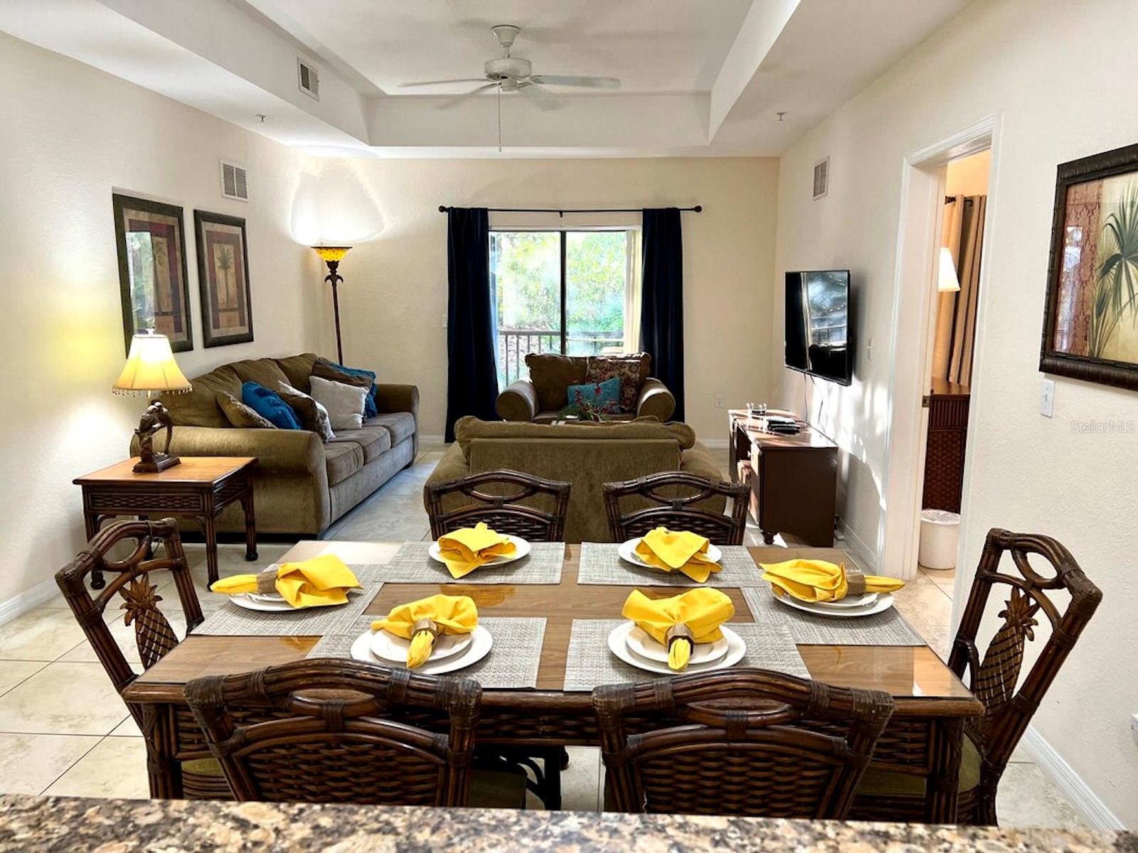 Incredible Location!!! This beautiful community is located just 7.9 miles from Disney Parks. The apartment is renovated and is rented fully furnished and equipped in the sought-after community of Caribe Cove. This spacious 1700 square foot place has 3 bedrooms, 2 full bathrooms. The dining room and living room are integrated, and only a beautiful bar separates them that ends with the wooden kitchen, ready for you to create great moments with all your family & friends. The unit is on the ground floor of the building, so its accessibility is ideal. The apartment has a beautiful view of the conservation area. Master bath includes separate shower, tub and double vanities. The two additional bedrooms share the other bathroom. The terrace is a bonus you can screened. The community includes a pool, hot tub, gym, and clubhouse, and the unit is very close to amenities. The Caribe Cove resort also has 24-hour security at the gate. You will be VERY WELL LOCATED, close to theme parks, supermarkets, restaurants and a golf course just a few minutes' drive away. Sale includes all furniture, appliances, water, cable, high-speed Internet, trash pickup, and common area maintenance. DON'T MISS IT AND SCHEDULE AN APPOINTMENT NOW!!!