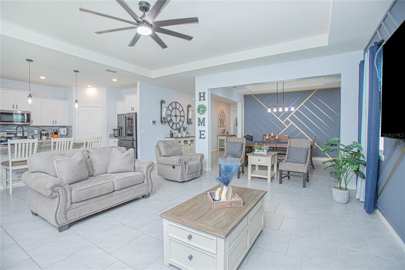 Welcome Home! Step into luxury style with this stunning 4-bedroom, 3.5-bath Corner Lot Camden Model built by D.R. Horton in Kindred, FL. This Smart Home is perfectly designed for modern living and boasts a multi-generational suite, ideal as a Mother-in-Law for family members or special guests. This convenient apartment with its private entrance offers the perfect space for privacy and comfort. Whether used as a mother-in-law suite, home office, game room, or theater room, this additional space enhances the home’s versatility for your lifestyle needs. The gourmet kitchen is a chef’s dream, featuring granite countertops, a large center island with a double sink, a sleek modern backsplash, elegant lighting, solid cabinetry with stylish handles, and premium stainless steel appliances. Bright recessed lighting and ceiling fans accentuate the home’s high and coffered ceilings, creating a spacious and inviting ambiance. This luxury home also includes several high-end upgrades, such as designer mirror bathrooms and upgraded faucets, custom wall décor in the Great Room and Dining areas, elegant front hallway tilework, fully customized closets, stylish window blinds for enhanced privacy, a screened covered lanai for outdoor enjoyment, gutters for improved exterior maintenance, and a whole-home water treatment system for quality water throughout. Kindred is a Resort-Style Living Community in a prime location that offers an array of resort-style amenities, including two Clubhouses with a sparkling pool, fitness centers, Tennis courts and sports fields, Scenic walking, and biking trails, parks and playgrounds for outdoor enjoyment, and a dog park. Kindred is also conveniently located just minutes from major highways, shopping centers, supermarkets, medical facilities, "NeoCity technology hub", dining options, and the Florida Turnpike, ensuring easy access to everything you need. Don't miss the opportunity to own this stunning corner lot Camden Model Smart Home in one of Kissimmee’s most desirable communities! Schedule your tour today!
