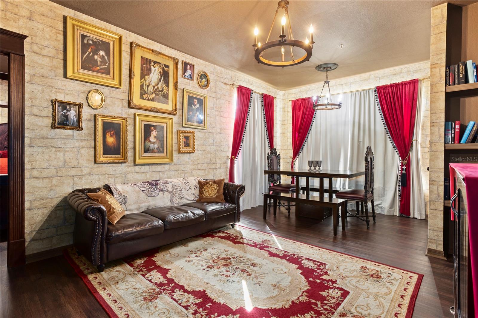 Welcome to this unique and immaculate FULLY FURNISHED 1 Bed, 1 Bath condo on the ground floor with imagination galore! This unit is eligible for short-term rentals and is a true testament to its theme. As you enter, the open-concept design immerses you into the world of Harry Potter with a spacious living area that seamlessly connects to the dining space and kitchen, providing a comfortable environment for relaxation or entertaining. The kitchen features stainless steel appliances with plenty of cabinet space, granite countertops, and a breakfast bar overlooking the living areas. Custom doors lead to the spacious bedroom with a stunning fireplace that is unique to the look and touch. The theme continues through the bathroom, with a beautifully upgraded bathtub/shower combination, and a magnificent modern basin sink. Additional storage space and a full washer & dryer hookup can be found in the separate laundry room. This community offers resort-style living with an extravagant clubhouse and access to the sparkling community pool, chef’s dream community kitchen & community dining areas, a full fitness center, and a full game room. There’s a full tennis court outside the clubhouse, another separate full community swimming pool, and a playground for the whole family to enjoy! The property's prime location close to major attractions like the highly desired Disney Parks, shopping centers, and dining options adds to its appeal. For Investors or Vacation Homeowners, this property has an 8.32% cap rate at the current price, a Cash-on-Cash Return of 8.42%, and has made over 89K in the past two years! Schedule a showing today!