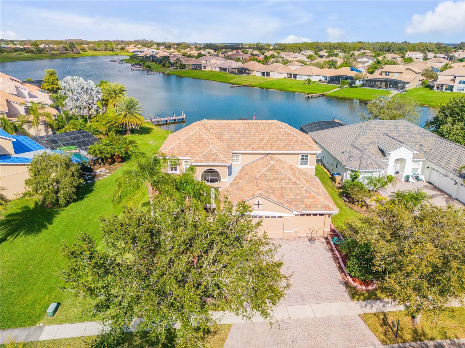 MUST SEE! New Tile Roof (2023), Private Boat Dock on Property (built 2021), Cul-De-Sac Location, (2) new Air Conditioning Compressors and main floor Air Handler (2022), Designer Style-Full Glass, Double Door Entry System (2022) and Complete Exterior Re-Paint (2025)! Beautifully maintained and upgraded, this WATERFRONT 4-bedroom, 3.5-bathroom home in the gated community of Bellalago is ready for a new owner! Inside, the bright and spacious floor plan offers stunning lake views, formal and casual living spaces, and designer upgrades throughout. The large kitchen boasts new Samsung appliances, bar seating, quartz countertops, and a walk-in pantry. The oversized primary suite features two walk-in closets, dual vanities, a garden tub, and a tiled shower. The second first-floor bedroom is a Jr. Master with an en-suite bath, perfect for guests or multigenerational living. Upstairs, enjoy a huge bonus/media room, two additional bedrooms, a shared bath, and a convenient laundry chute! Outside, relax on the covered/screened lanai, take advantage of extra storage throughout, and enjoy the 3-car garage with built-in cabinets and racks, an extended paver driveway, and professional landscaping. Located along more than a mile of shoreline on Lake Tohopekaliga, Bellalago offers world-class, resort-style amenities, including 24/7 gated security, boat docks, boat lifts, championship fishing, nature/biking trails, community events, and more. HOA fees include 1GB Fiber Internet & TV with DVR, security gate, and common area maintenance. This one won’t last! Schedule your private showing today!