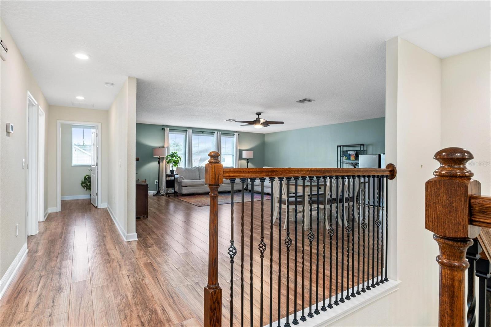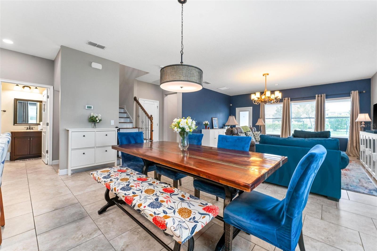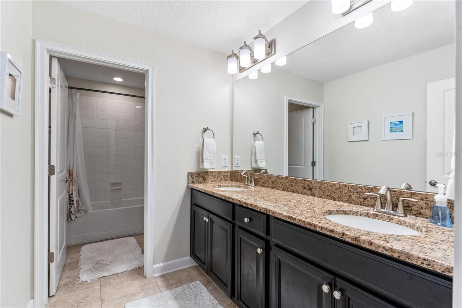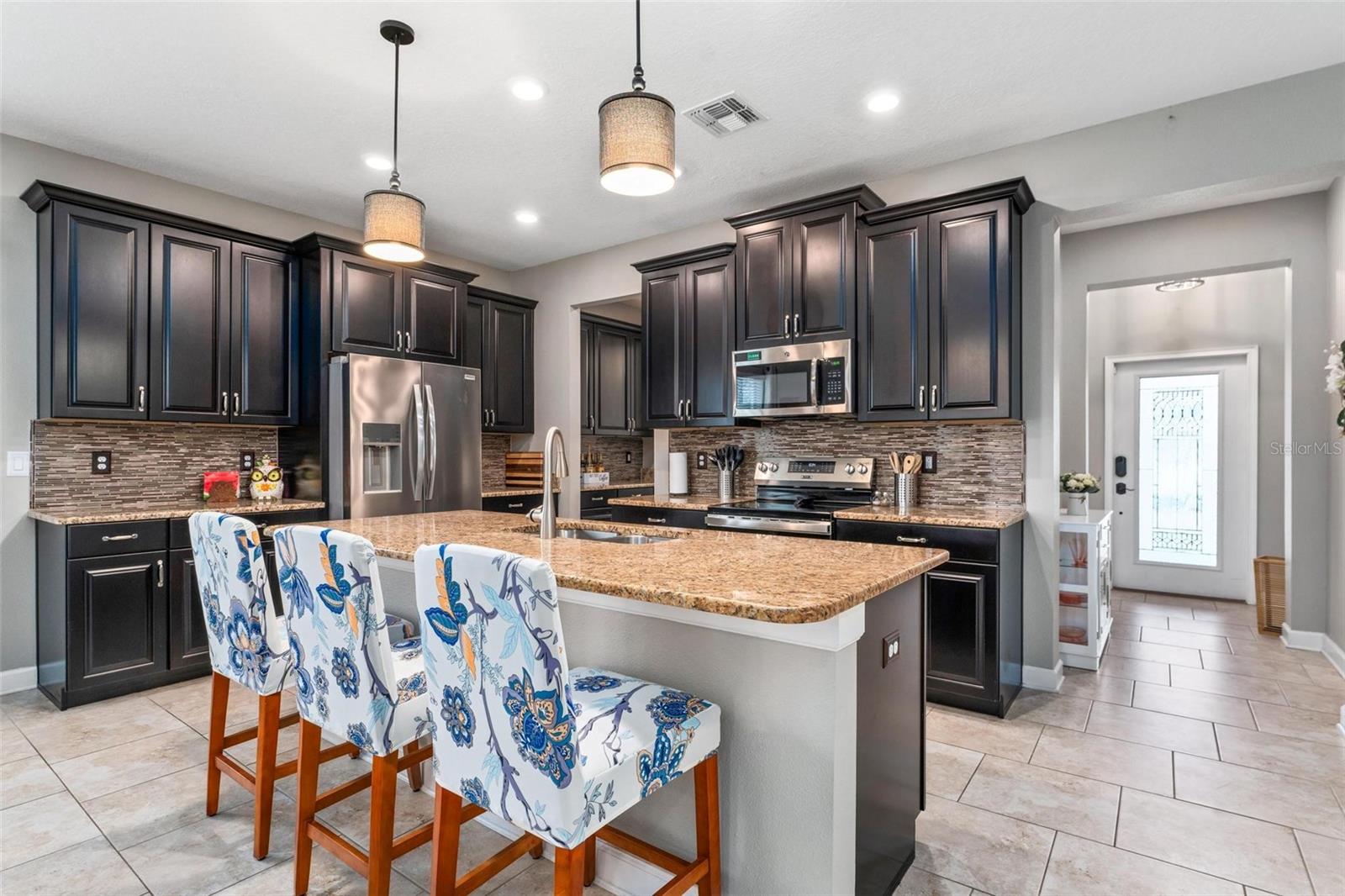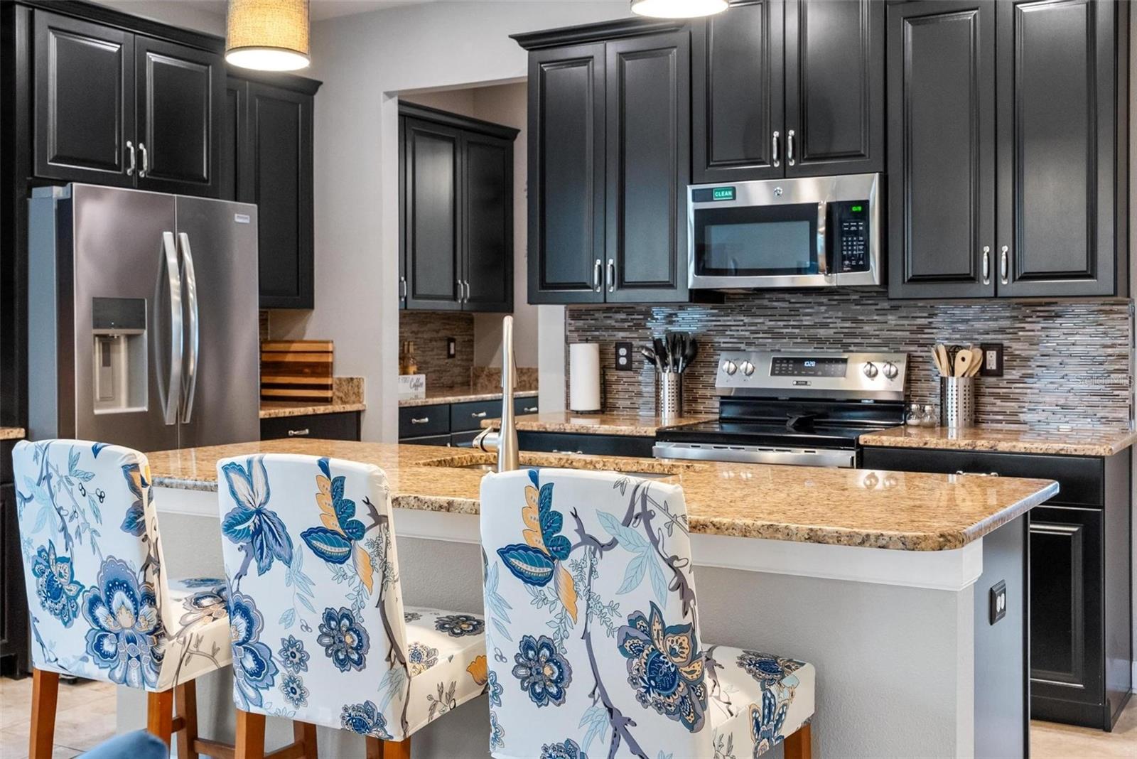 This well-maintained home features 5 bedrooms, 4 baths, 3-car garage, a beautifully decorated interior, and a fully fenced expansive backyard complete with a covered patio and plenty of paved entertaining space with an oversized lot. This Harwich I floor plan by Lennar is nestled in the highly sought-after gated community of Reflections at Storey Lake. This charming two-story home is optimized for modern living with tons of upgrades. The first floor showcases a spacious office off the foyer, a kitchen with a butler’s pantry and a huge walk-in pantry, a generous dining area overlooking the family room and a COMPLETE 1ST FLOOR LAUNDRY ROOM with ample storage next to the 1ST FLOOR PRIMARY MASTER SUITE. The kitchen boasts all BRAND NEW APPLIANCES replaced in 2024, gorgeous GRANITE counter spaces, modern tile backsplash, 42-inch wooden cabinets, an island with breakfast bar, and a large dining space. As you make your way to the Master Suite, you will be amazed with the large windows that invite a lot of natural light, a huge walk-in closet, and an en-suite bathroom with a DUAL VANITIES, GRANITE countertops, GARDEN TUB, and a separate glass-enclosed WALK-IN SHOWER. The 2ND OVERSIZED LAUNDRY ROOM is located upstairs with the remaining 4 bedrooms including with a HUGE UPSTAIRS GREAT ROOM for gathering, playing games, and more. Bedrooms 2 and 3 share a Jack and Jill bathroom with a double vanity and private shower. Bedroom 4 and 5 also share a Jack and Jill bathroom and an overall desirable SPLIT BEDROOM FLOOR PLAN for everyone to enjoy. Some of the great features of this home include 2 separate sets of washer/dryers, seamless gutters, custom light fixtures and draperies, the brick-paved backyard, and an oversized lot large enough for an expansive private pool, outdoor kitchen, and more! Storey Lake offers family-friendly, resort-style amenities that everyone will enjoy including a clubhouse with a playground and fitness center, a resort-style pool and a waterpark. Residents can also access Storey Lake Resort’s world-class amenities, including additional Fitness centers, Tiki bars, waterslides, splash pad & mini-golf, playgrounds and even more resort pools. Just minutes away from the best attractions Central Florida has to provide, this home is perfect for a destination getaway with easy access to Walt Disney World.