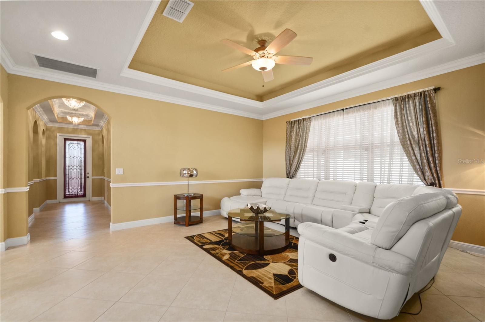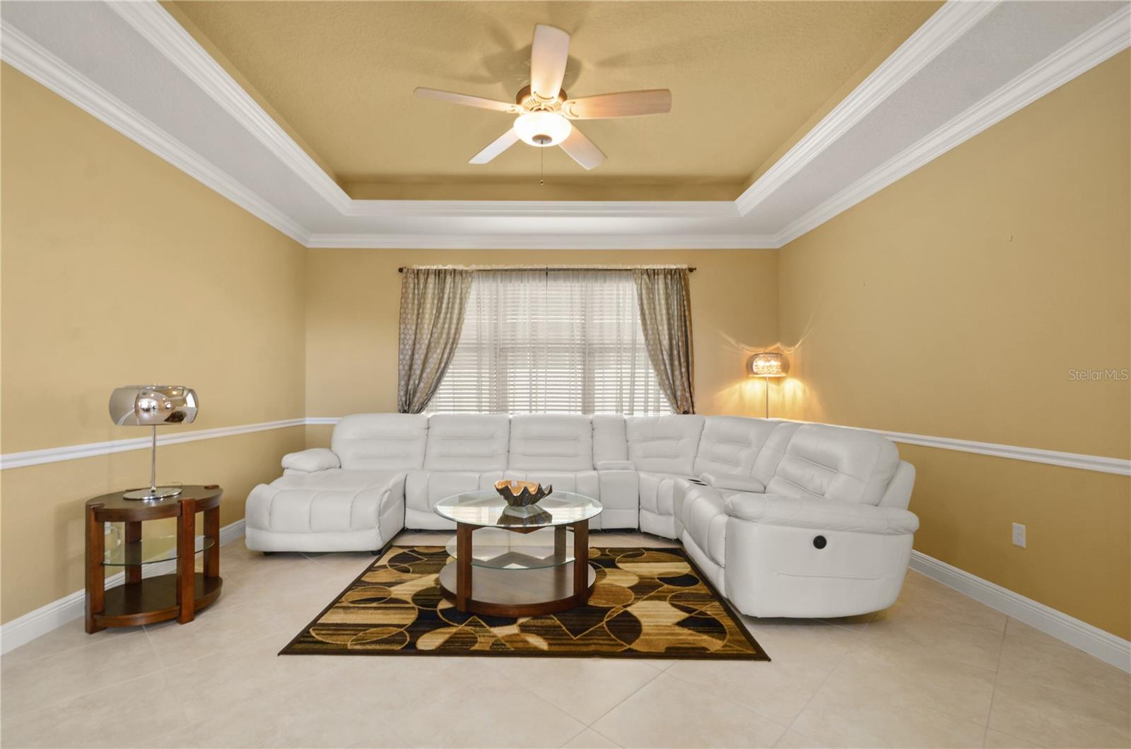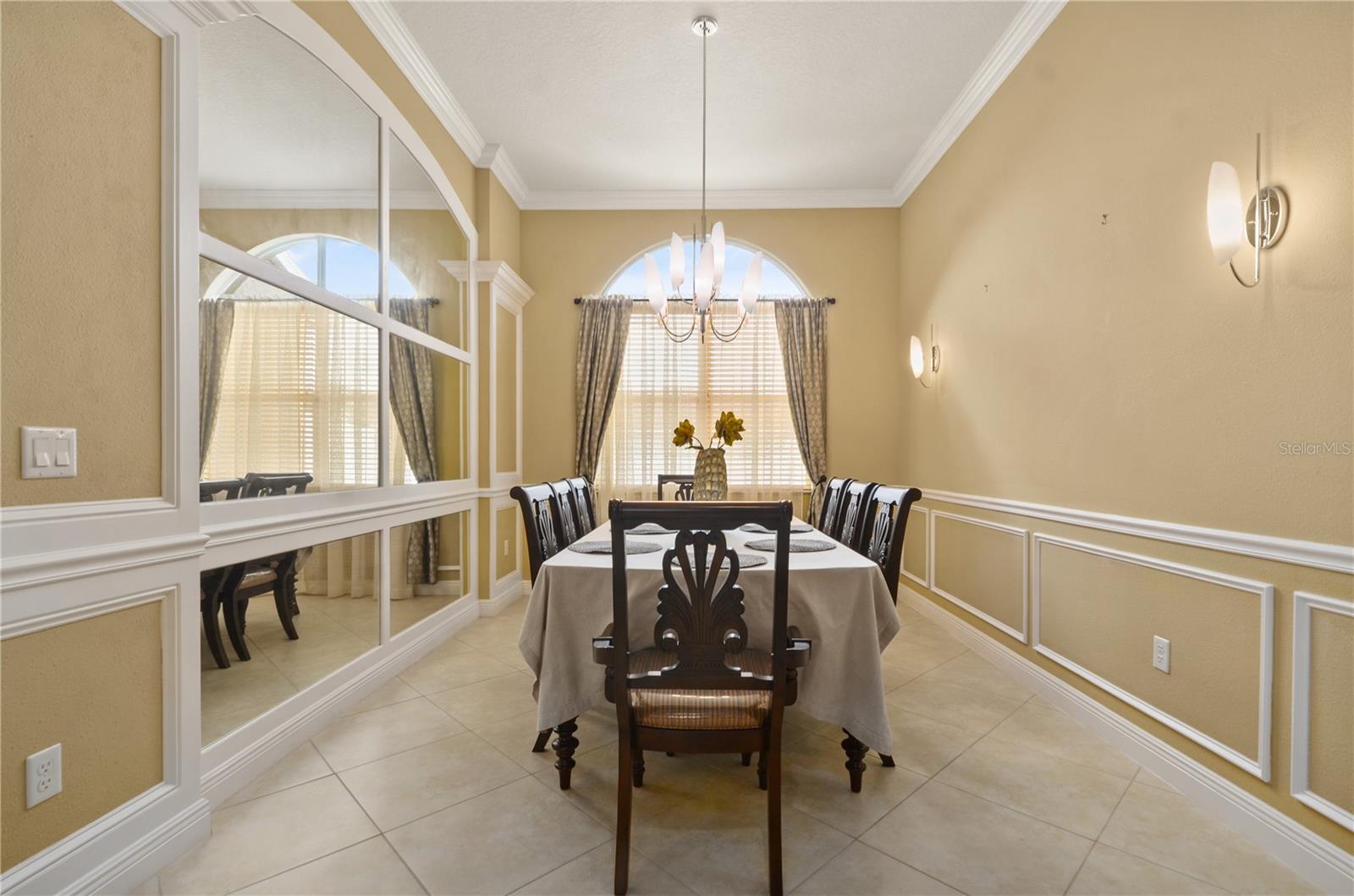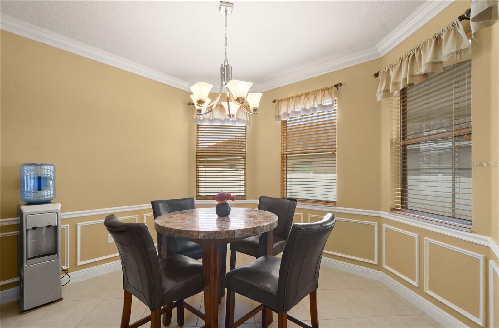 FLORIDA LIVING HAS NEVER FELT THIS GREAT. Enjoy your best life within the GATED Community at NORTH POINT. This immaculate 4-bedroom home welcomes you to a stunning residence nestled on a sprawling corner lot, where SOPHISCATION SEEMLESSLY INTERTWINES WITH WARMTH in a picturesque setting. From the moment you arrive, you'll be captivated by the impeccable curb appeal, featuring a beautifully manicured lawn, lush landscaping, a grand paved driveway, and a welcoming facade that exudes CHARM. This exquisite home offers a luxurious TRIPLE-SPLIT FLOOR PLAN with custom finishes, perfectly blending elegance, comfort, and functionality. One step inside you will love how this home greets you with its open-airy floor plan, Grand Entrance & Stunning Interiors. As you approach the grand entrance, step inside, and you'll be greeted by SOARING ceilings, an extended tray ceiling, intricate crown molding, and chair railings that add a touch of exquisiteness throughout the home. To the right, two spacious guest bedrooms feature custom crown molding and share a well-appointed bathroom, offering both comfort and convenience. To the left, a third bedroom provides additional privacy, making it perfect for guests or a home office. The formal dining room is a showstopper, boasting custom finishes, crown molding, CHIC MIRRORS, and beautifully designed chair railings, creating the perfect setting for intimate dinners or festive gatherings. The formal living room continues the theme of LUXURY with a stunning tray ceiling, built-in lighting, and architectural details that elevate the space. The Chef’s Kitchen & Cozy Family Room is the heart of the home. The MAGNANIMOUS kitchen is designed for both functionality and style. Outfitted with 42-inch cabinets for ample storage, STONE COUNTERTOPS, Stainless steel appliances for modern convenience, a breakfast bar for casual meals, a cozy breakfast nook framed by bay windows, flooding the space with natural light and tranquil views of the backyard oasis. Adjacent to the kitchen, the spacious family room is designed for gathering and relaxation, complete with recessed lighting, surround sound speakers, crown molding, and large FRENCH DOORS, that open to the breathtaking outdoor retreat. The Lavish Primary Suite is a haven of tranquility offering, a CHARMING TRAY CEILING WITH CROWN MOLDING, and two walk-in closets for ample storage. The luxurious en-suite bathroom pampers you with dual vanities, a soaking tub creating the ultimate escape after a long day, a glass-enclosed walk-in shower, and GRAND FRENCH DOORS to your lanai. Step outside to your outdoor paradise to a fully fenced, private backyard, where the extended lanai invites you to unwind in style. This outdoor space is an entertainer’s dream, featuring: French doors, Surround sound system for an immersive experience, A built-in outdoor kitchen, perfect for hosting gatherings, A tranquil atmosphere, ideal for relaxation or entertaining guests. This home seamlessly combines luxury, comfort, and timeless elegance, making it an absolute must-see for those who appreciate fine living. Don't miss the opportunity to make this dream home yours!