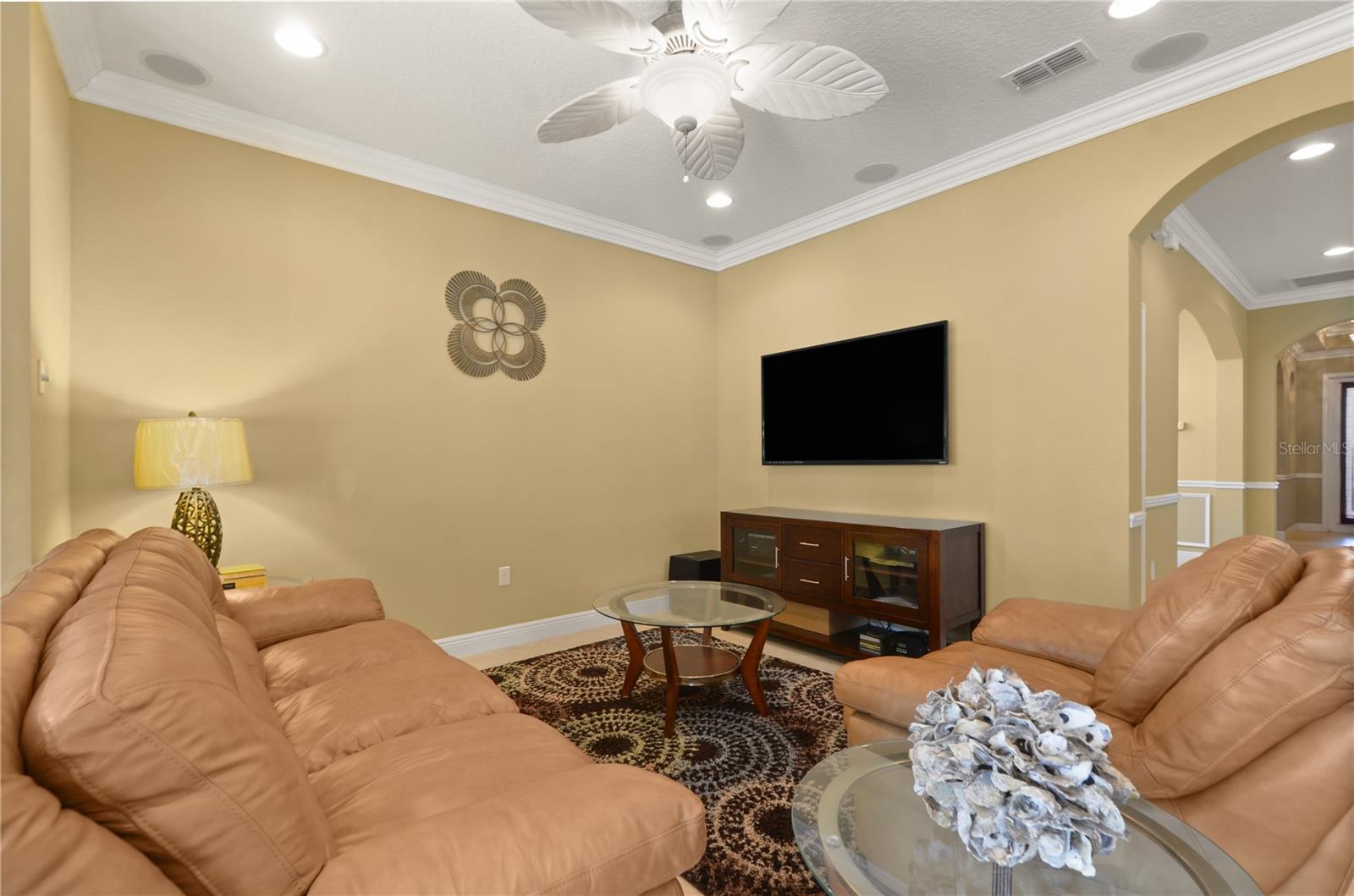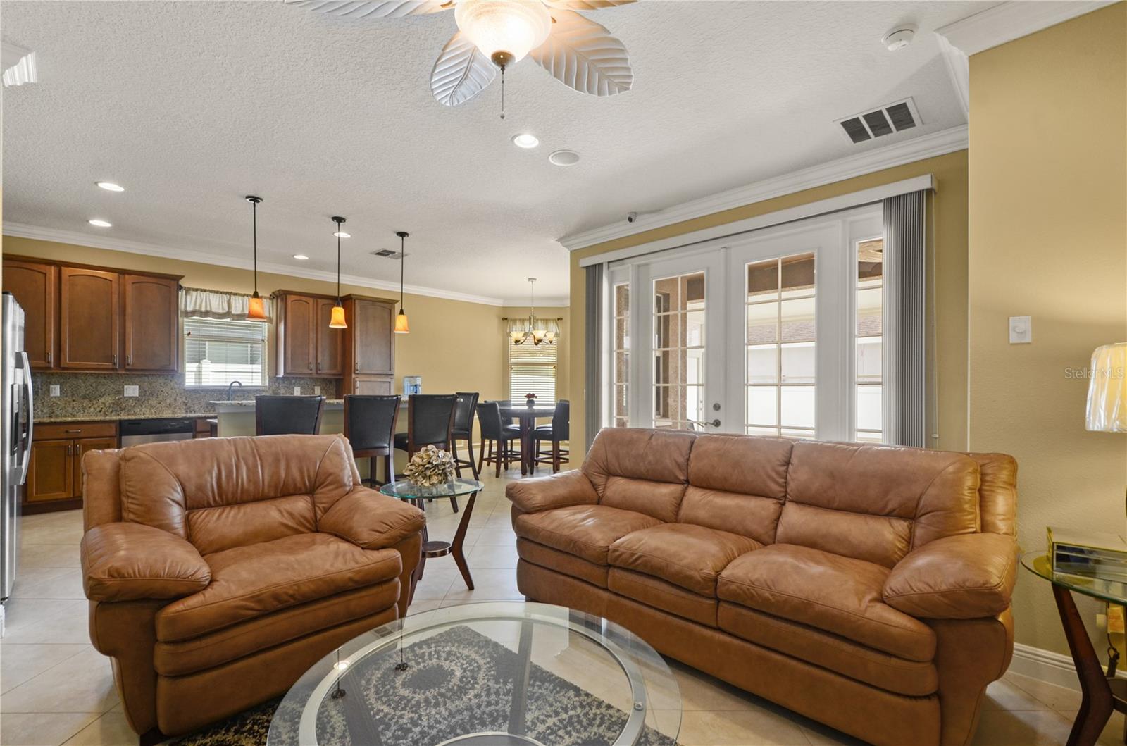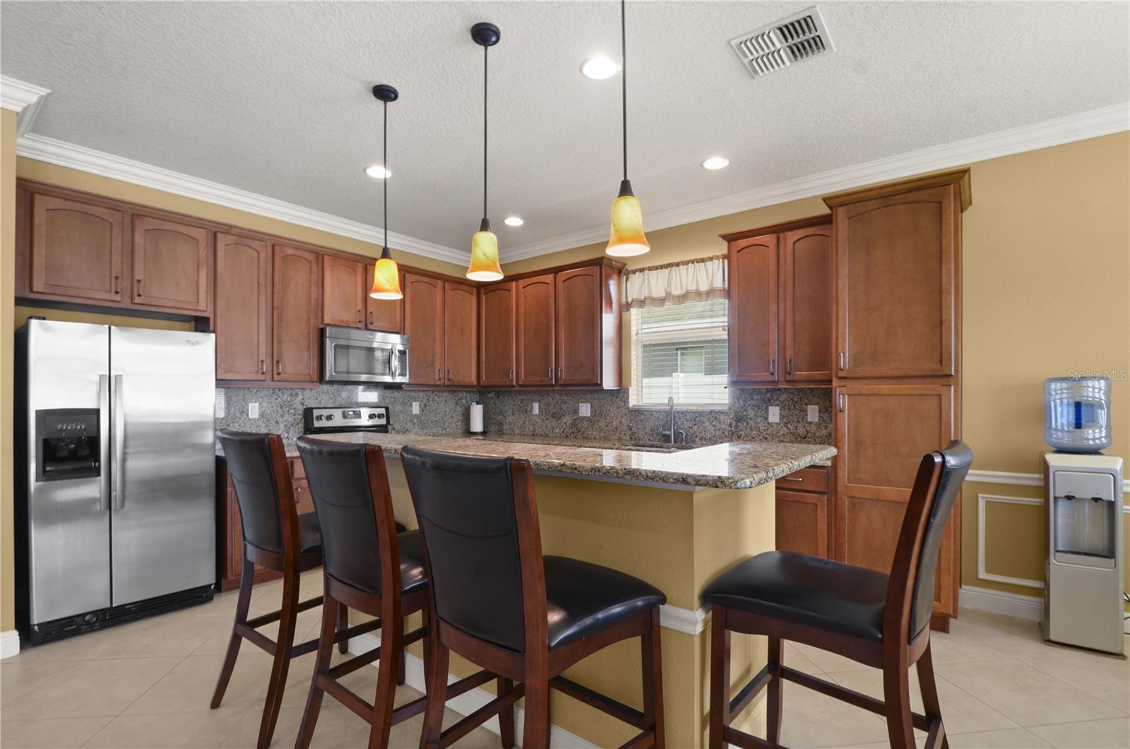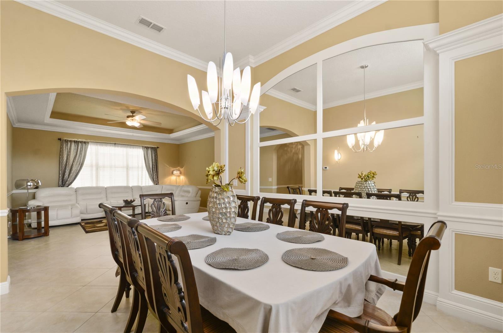 FLORIDA LIVING HAS NEVER FELT THIS GREAT. Enjoy your best life within the GATED Community at NORTH POINT. This immaculate 4-bedroom home welcomes you to a stunning residence nestled on a sprawling corner lot, where SOPHISCATION SEEMLESSLY INTERTWINES WITH WARMTH in a picturesque setting. From the moment you arrive, you'll be captivated by the impeccable curb appeal, featuring a beautifully manicured lawn, lush landscaping, a grand paved driveway, and a welcoming facade that exudes CHARM. This exquisite home offers a luxurious TRIPLE-SPLIT FLOOR PLAN with custom finishes, perfectly blending elegance, comfort, and functionality. One step inside you will love how this home greets you with its open-airy floor plan, Grand Entrance & Stunning Interiors. As you approach the grand entrance, step inside, and you'll be greeted by SOARING ceilings, an extended tray ceiling, intricate crown molding, and chair railings that add a touch of exquisiteness throughout the home. To the right, two spacious guest bedrooms feature custom crown molding and share a well-appointed bathroom, offering both comfort and convenience. To the left, a third bedroom provides additional privacy, making it perfect for guests or a home office. The formal dining room is a showstopper, boasting custom finishes, crown molding, CHIC MIRRORS, and beautifully designed chair railings, creating the perfect setting for intimate dinners or festive gatherings. The formal living room continues the theme of LUXURY with a stunning tray ceiling, built-in lighting, and architectural details that elevate the space. The Chef’s Kitchen & Cozy Family Room is the heart of the home. The MAGNANIMOUS kitchen is designed for both functionality and style. Outfitted with 42-inch cabinets for ample storage, STONE COUNTERTOPS, Stainless steel appliances for modern convenience, a breakfast bar for casual meals, a cozy breakfast nook framed by bay windows, flooding the space with natural light and tranquil views of the backyard oasis. Adjacent to the kitchen, the spacious family room is designed for gathering and relaxation, complete with recessed lighting, surround sound speakers, crown molding, and large FRENCH DOORS, that open to the breathtaking outdoor retreat. The Lavish Primary Suite is a haven of tranquility offering, a CHARMING TRAY CEILING WITH CROWN MOLDING, and two walk-in closets for ample storage. The luxurious en-suite bathroom pampers you with dual vanities, a soaking tub creating the ultimate escape after a long day, a glass-enclosed walk-in shower, and GRAND FRENCH DOORS to your lanai. Step outside to your outdoor paradise to a fully fenced, private backyard, where the extended lanai invites you to unwind in style. This outdoor space is an entertainer’s dream, featuring: French doors, Surround sound system for an immersive experience, A built-in outdoor kitchen, perfect for hosting gatherings, A tranquil atmosphere, ideal for relaxation or entertaining guests. This home seamlessly combines luxury, comfort, and timeless elegance, making it an absolute must-see for those who appreciate fine living. Don't miss the opportunity to make this dream home yours!