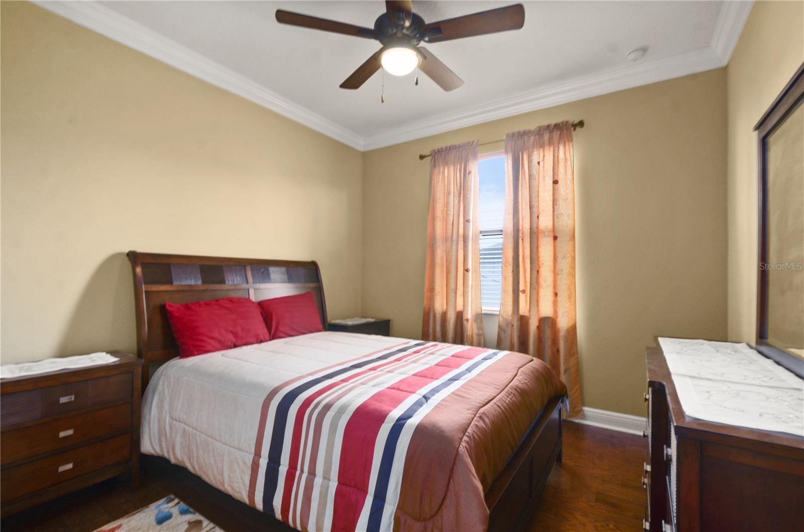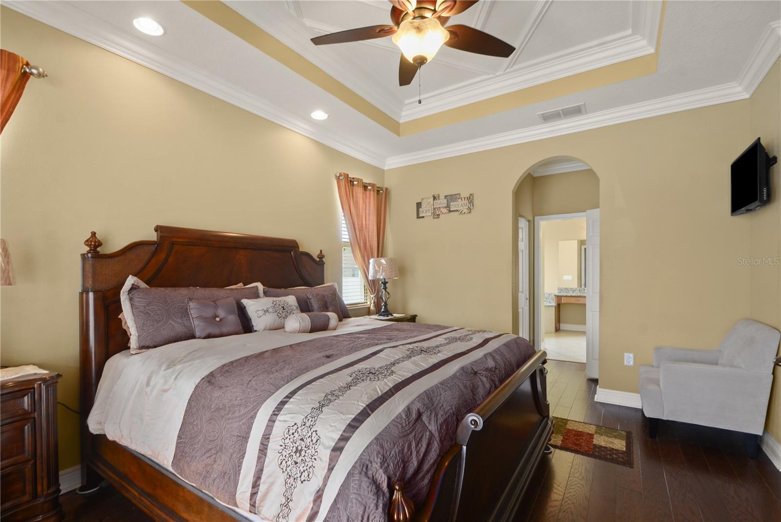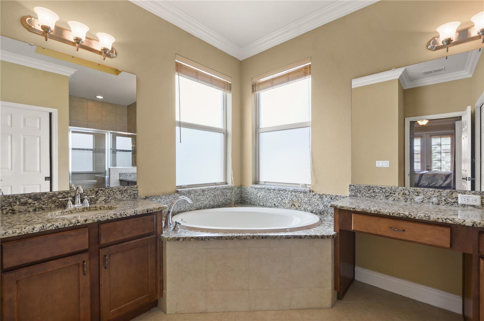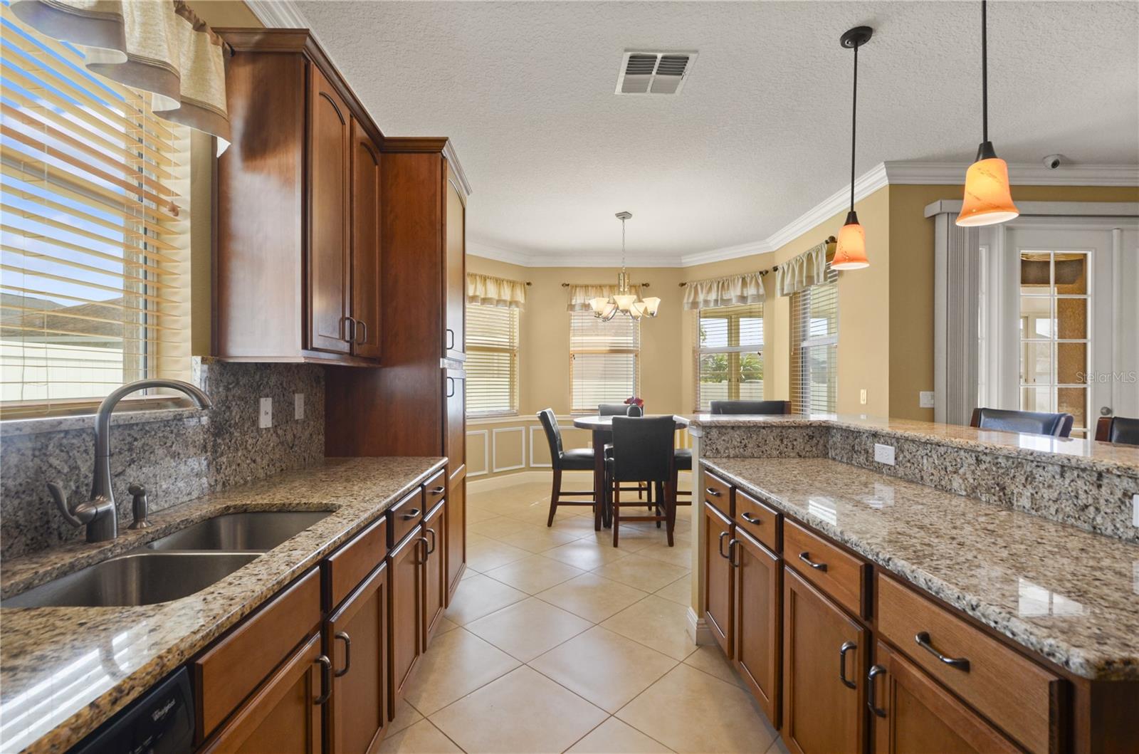 FLORIDA LIVING HAS NEVER FELT THIS GREAT. Enjoy your best life within the GATED Community at NORTH POINT. This immaculate 4-bedroom home welcomes you to a stunning residence nestled on a sprawling corner lot, where SOPHISCATION SEEMLESSLY INTERTWINES WITH WARMTH in a picturesque setting. From the moment you arrive, you'll be captivated by the impeccable curb appeal, featuring a beautifully manicured lawn, lush landscaping, a grand paved driveway, and a welcoming facade that exudes CHARM. This exquisite home offers a luxurious TRIPLE-SPLIT FLOOR PLAN with custom finishes, perfectly blending elegance, comfort, and functionality. One step inside you will love how this home greets you with its open-airy floor plan, Grand Entrance & Stunning Interiors. As you approach the grand entrance, step inside, and you'll be greeted by SOARING ceilings, an extended tray ceiling, intricate crown molding, and chair railings that add a touch of exquisiteness throughout the home. To the right, two spacious guest bedrooms feature custom crown molding and share a well-appointed bathroom, offering both comfort and convenience. To the left, a third bedroom provides additional privacy, making it perfect for guests or a home office. The formal dining room is a showstopper, boasting custom finishes, crown molding, CHIC MIRRORS, and beautifully designed chair railings, creating the perfect setting for intimate dinners or festive gatherings. The formal living room continues the theme of LUXURY with a stunning tray ceiling, built-in lighting, and architectural details that elevate the space. The Chef’s Kitchen & Cozy Family Room is the heart of the home. The MAGNANIMOUS kitchen is designed for both functionality and style. Outfitted with 42-inch cabinets for ample storage, STONE COUNTERTOPS, Stainless steel appliances for modern convenience, a breakfast bar for casual meals, a cozy breakfast nook framed by bay windows, flooding the space with natural light and tranquil views of the backyard oasis. Adjacent to the kitchen, the spacious family room is designed for gathering and relaxation, complete with recessed lighting, surround sound speakers, crown molding, and large FRENCH DOORS, that open to the breathtaking outdoor retreat. The Lavish Primary Suite is a haven of tranquility offering, a CHARMING TRAY CEILING WITH CROWN MOLDING, and two walk-in closets for ample storage. The luxurious en-suite bathroom pampers you with dual vanities, a soaking tub creating the ultimate escape after a long day, a glass-enclosed walk-in shower, and GRAND FRENCH DOORS to your lanai. Step outside to your outdoor paradise to a fully fenced, private backyard, where the extended lanai invites you to unwind in style. This outdoor space is an entertainer’s dream, featuring: French doors, Surround sound system for an immersive experience, A built-in outdoor kitchen, perfect for hosting gatherings, A tranquil atmosphere, ideal for relaxation or entertaining guests. This home seamlessly combines luxury, comfort, and timeless elegance, making it an absolute must-see for those who appreciate fine living. Don't miss the opportunity to make this dream home yours!