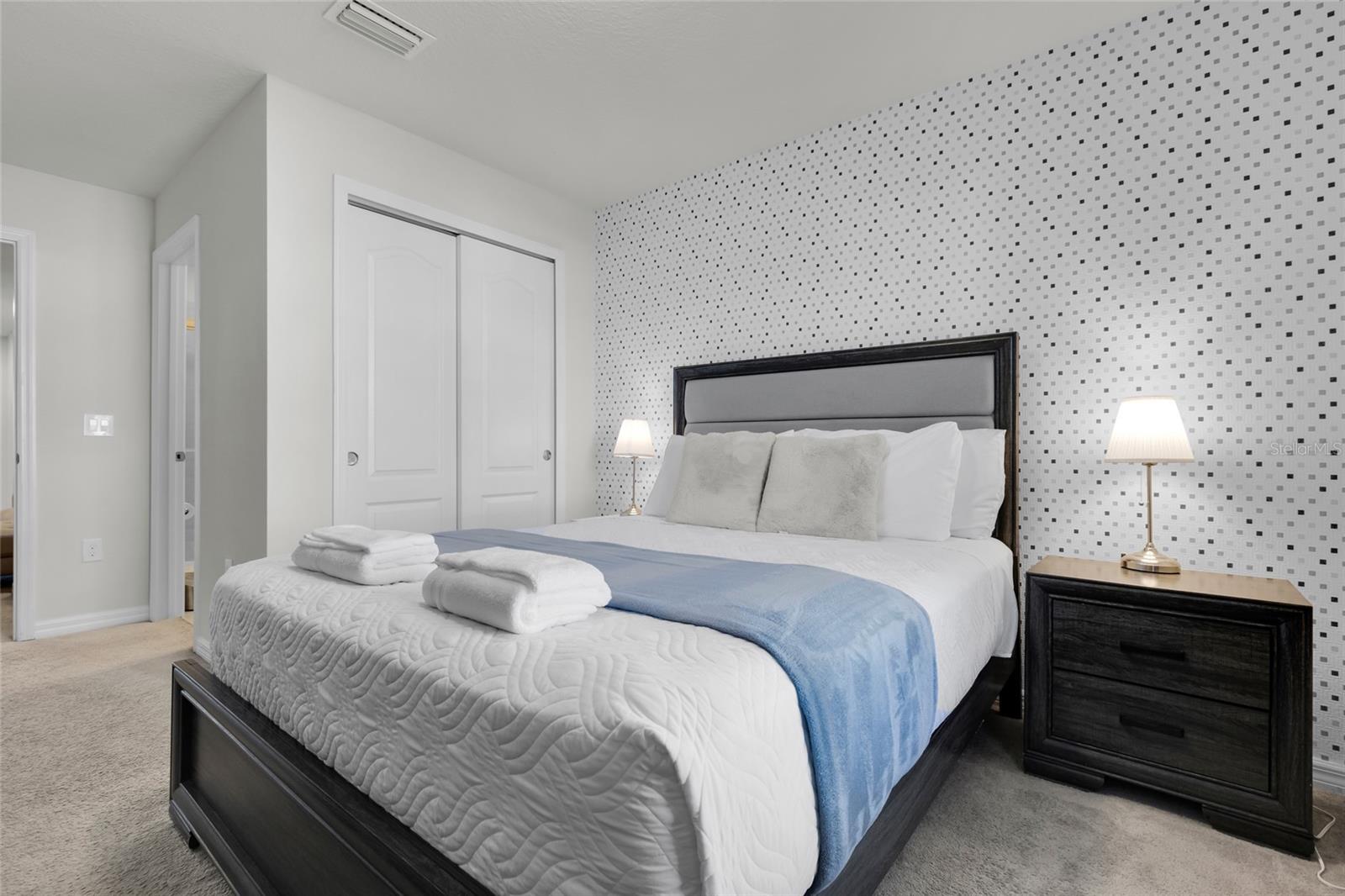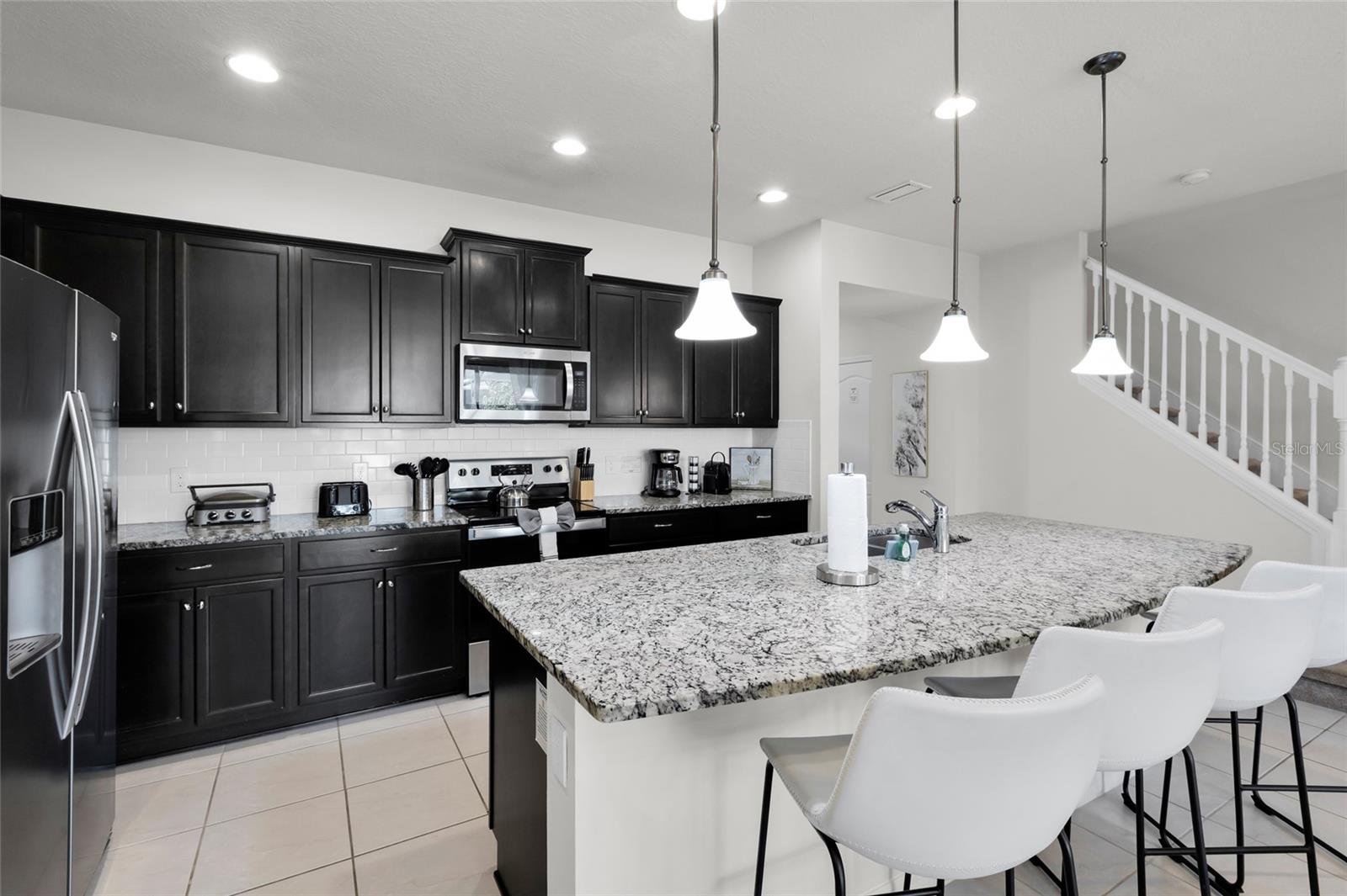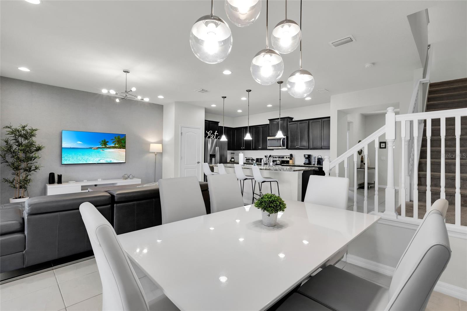 Turnkey 5-Bedroom Townhome – Short-Term Rental Approved! Welcome to this stunning 5-bedroom, 4.5-bathroom townhome, fully furnished and beautifully designed with Mickey Mouse and Harry Potter-themed décor—a dream for vacationers and investors alike! Located in a prime short-term rental community, this move-in-ready retreat accommodates up to 12 guests and offers a perfect blend of comfort and style. The open-concept living area features a modern kitchen with granite countertops, stainless steel appliances, and a spacious island, ideal for entertaining. Enjoy a private screened-in pool and patio, perfect for relaxing after a day at the nearby theme parks. Upstairs, a cozy loft area provides additional space for entertainment or relaxation. Situated just minutes from Disney, Universal, shopping, dining, and top attractions, this home is an ideal investment or vacation retreat.