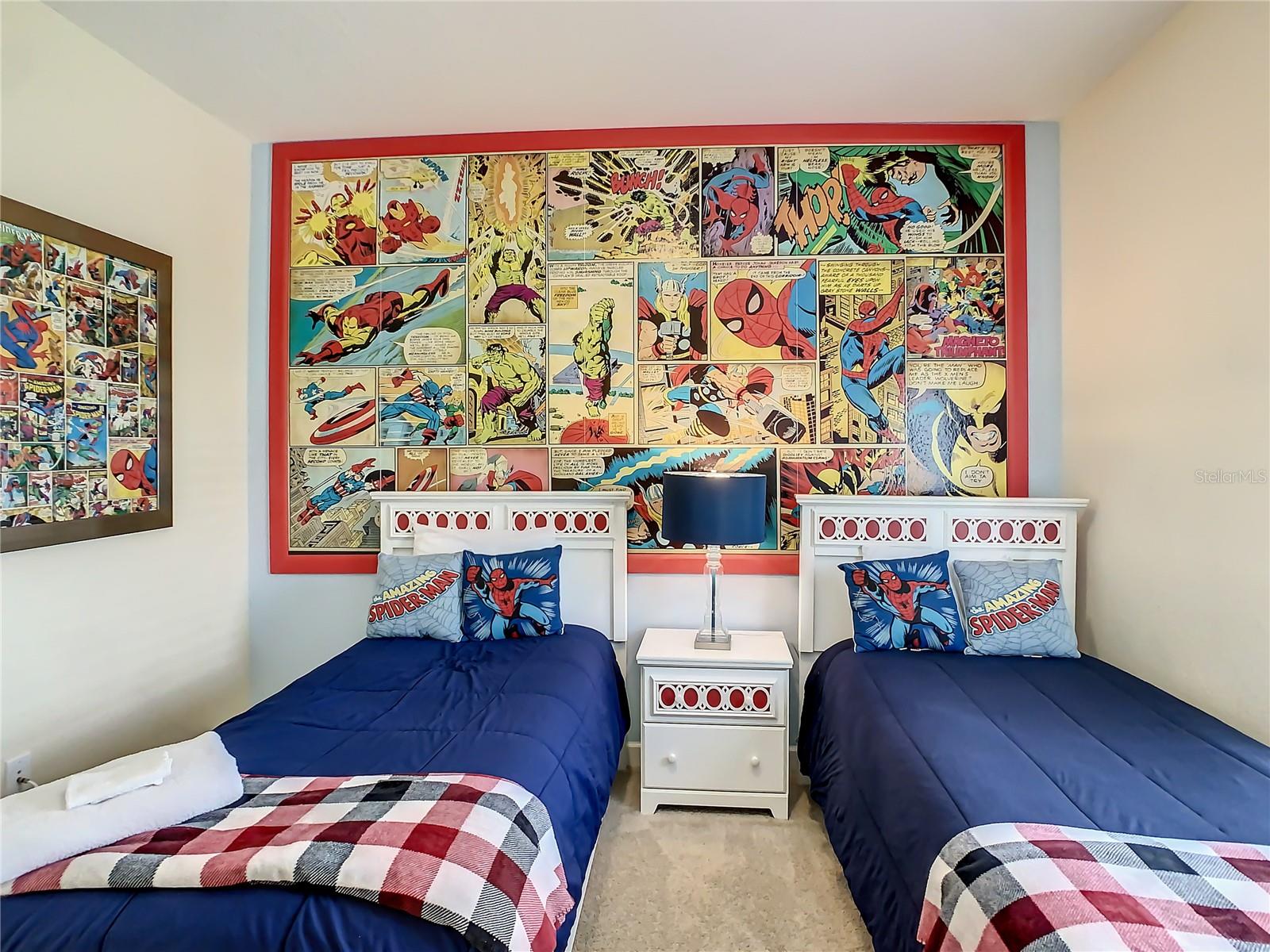 Fully Furnished Disney-Themed Vacation Home – 5 Bedrooms in a Corner Lot Resort Community. Step into this beautifully themed 5-bedroom, 4-bathroom townhome in the highly sought-after Storey Lake Resort, just minutes from Orlando’s top attractions, malls, and restaurants. Designed for comfort and entertainment, this home features themed bedrooms, including Harry Potter, Toy Story, Mickey Mouse, Spiderman, and a Princess Room. The spacious open floor plan includes a fully equipped kitchen with 42” cabinets, two large master suites upstairs, and a private heated pool. Enjoy access to resort-style amenities such as a heated pool, lazy river, two water slides, a splash park, rental kayaks, and a 9-hole mini golf course. Additional facilities include sand volleyball and tennis courts, an extended-hours fitness center, and a tiki bar with entertainment. Perfect as a full-time residence or vacation rental investment, this home offers relaxation and adventure for family, friends, or guests. HOA fees cover 24-hour gated security, trash collection, landscaping, exterior pest control, water and sewer, cable TV, internet, exterior paint reserves, and roof maintenance. Experience the perfect blend of luxury, convenience, and fun—your dream vacation home awaits!