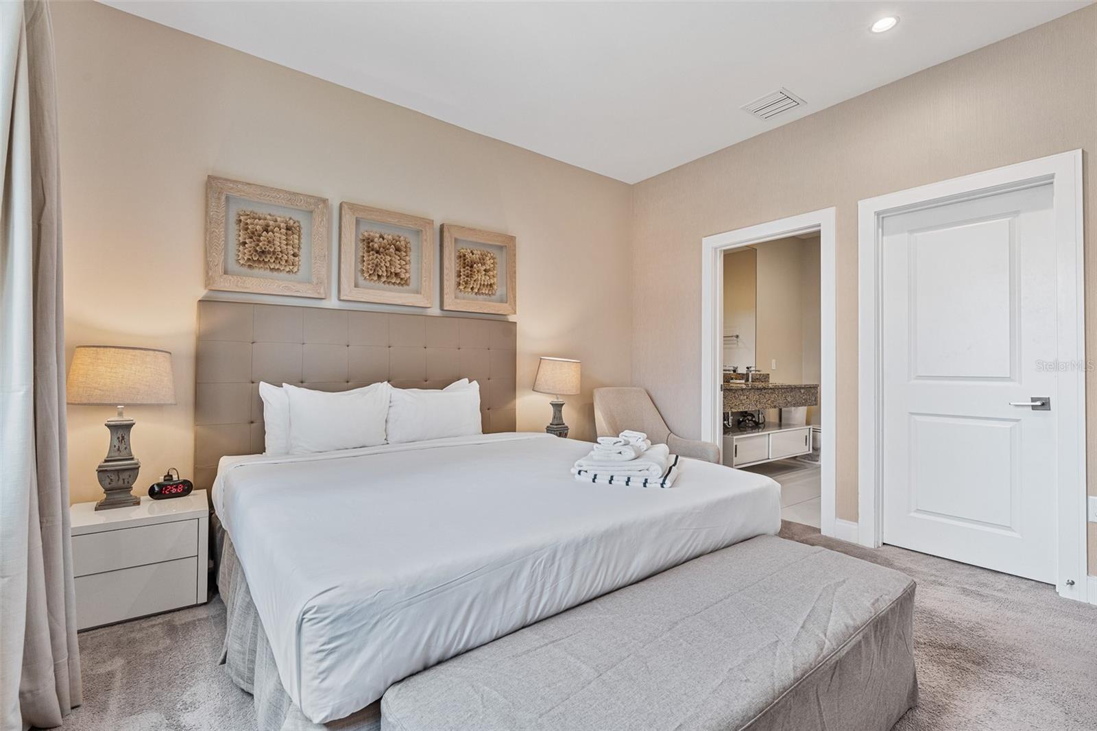 Stunning 4-Bedroom, 4.5-Bathroom Corner Unit! Experience the perfect blend of luxury and comfort at Magic Village, an exclusive community of upscale townhomes designed for unforgettable vacations. Enjoy the privacy of a vacation home with the convenience of top-tier resort amenities. Located just minutes from Walt Disney World, this amazing gated community offers world-class dining, mini-market, and entertainment. Amenities include 24-hour staff and concierge services, an on-site restaurant, a fitness center, a business workstation, free parking, a heated outdoor pool and hot tub, private event planning, housekeeping, laundry and dry-cleaning services. This home is elegantly furnished and features stainless steel appliances, luxury bedding, HD/LCD TVs, a hair dryer, an iron and ironing board, and much more! Plus, an owner’s closet allows you to store personal belongings while still renting out the unit. Don’t miss this incredible opportunity—schedule your showing today!