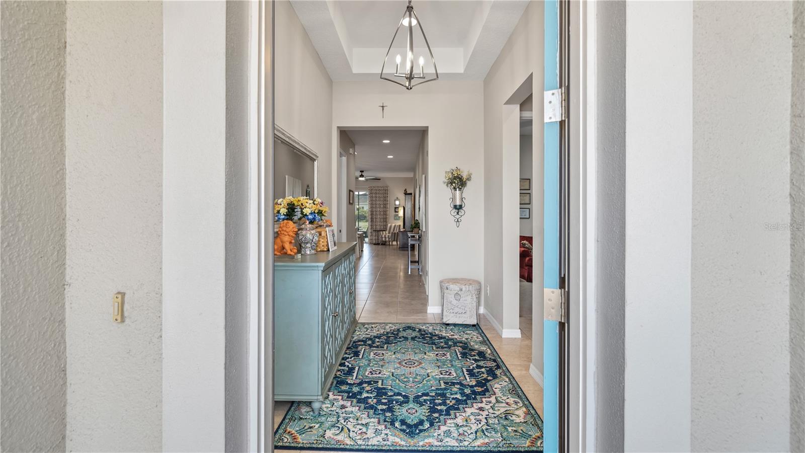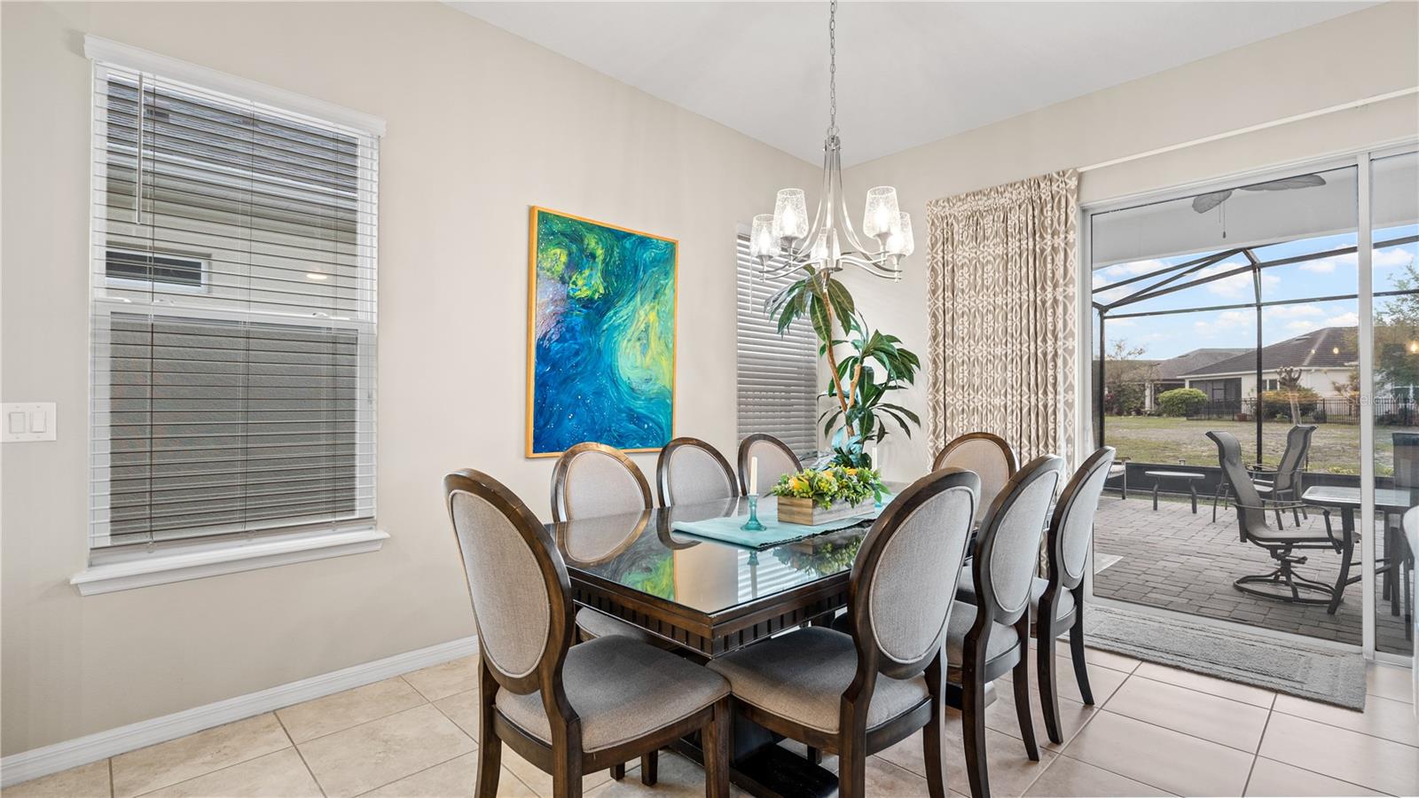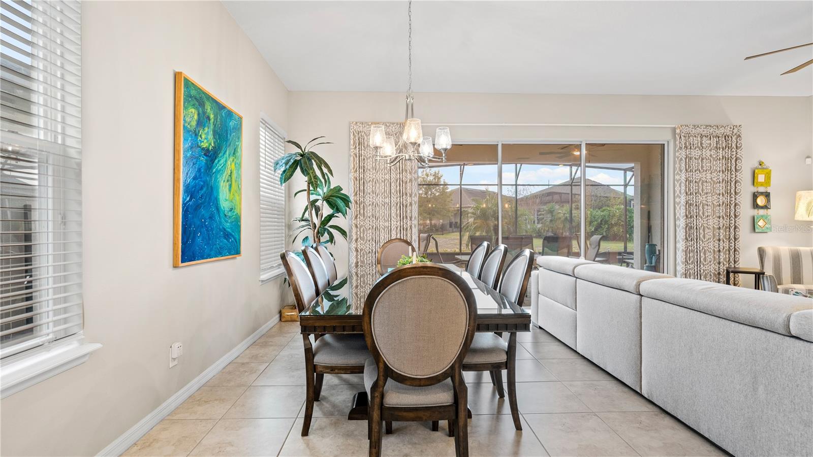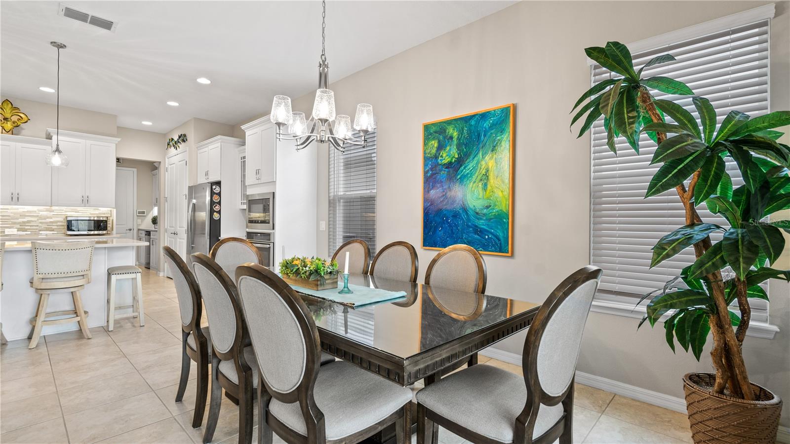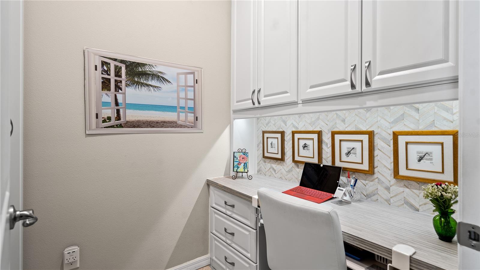 You will love this beautiful St. Lucia home that features the open concept upgraded gourmet kitchen with a 13 foot island, dining room, living room, office, primary bedroom with a fully upgraded bathroom with custom closets and two additional bedrooms plus a full bath. The living and dining room get the all afternoon sun and THE SCREENED LANAI IS EXTENDED WITH A SUMMER KITCHEN. This home is beautifully landscaped with plenty of privacy. The owner put in approximately $45,000 in additional upgrades which includes widening the paver driveway and installing a paved walkway from the front of the home to the backyard. They also installed several overhead storage racks in the garage plus a charging station for electric vehicles and custom cabinetry by the garage. All the closets are custom designed and they added under cabinet lighting in the kitchen and installed medicine cabinets in both bathrooms and installed 1/2 beveled glass entry door. The triple sliding door and all windows feature UV Protection. The Four Seasons is a guard gated community with a wonderful clubhouse which has a very large ballroom, game room, card room, coffee bar and lounge. There is an outside covered lanai for parties and two large pools, lap lane and hot tub. There is also tennis courts, pickle ball and shuffle board. You will love living at the Four Seasons 55+ Community which is entwined within Mystic Dunes Golf Course which allows plenty of homes right on the course.