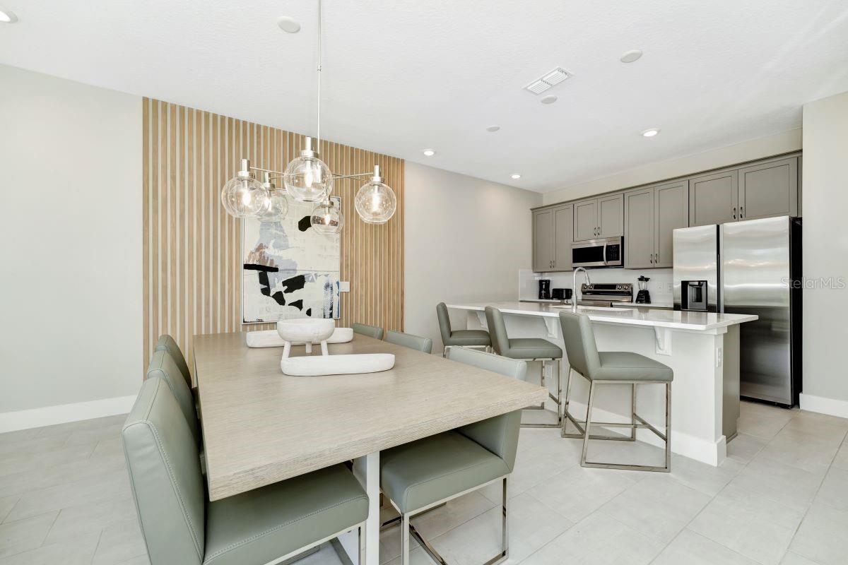 Exceptional Location with exclusive Reunion Guard-Gated Community. The Spectacular Townhome backs up to woods and nature in your backyard. Beautiful open floorplan with natural light throughout the home. Open floorplan kitchen, living, and dining areas have porcelain tile and vinyl planking flooring on 2nd floor stairs and hallway. Upstairs, all three bedrooms provide comfort with a conveniently located laundry room. All furniture and decorations are representation of our model. This home is unfurnished. The residents enjoy access to an unparalleled lineup of world-class amenities, including three Championship golf courses, Jack Nicklaus, Arnold Palmer and and Watson, a fitness center, a 5 acre water park, lazy river with 7 swimming pools, a tennis center, mini golf, pickleball courts, and many choices of on-site restaurants. Just 10 minutes from Disney Parks and 20 minutes from Universal Studios, this home offers an unbeatable central location with easy access to major highways like I-4, 417, and 429. Flexible terms: primary residence, or long-term rental, or a short-term vacation rental. Full access to 6 swimming pools, and all the restaurants/bars included in HOA. Gold membership program gives full access to 3 onsite golf courses, 5 acre water park, 4 additional pools, 6 tennis courts and pickle ball courts. Video taken is the model and not same property address. Furniture is not included in this purchase.