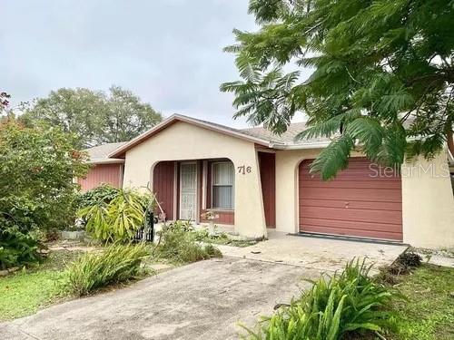 Welcome to Poinciana Village! This quaint 2 bedroom, 2 bathroom home is tucked back into a quiet, secluded neighborhood. As you enter the front door, you will be greeted by an abundance of natural light that beams in from several windows in the main living area. Also conveniently located in the front of the house off the main living area is a flex room that can be used as an office or a third bedroom, complete with a closet. The kitchen and dining area are connected to the living room in the back of the house. The kitchen features plenty of storage and a new dishwasher (2024). The two bedrooms are located down the hall past the full guest bath. The bright and spacious primary bedroom is located at the back of the home and features its own private full bathroom. From the eat-in kitchen, the sunshine enters through the sliding glass door where you enter into the fully enclosed lanai. Perfect for entertaining or relaxing with your garden view. This property is also equipped with Hurricane Shutters on all doors and windows. The home is centrally located near restaurants, schools, medical facilities and a Walmart. Theme parks such as Walt Disney World, Legoland, Universal and Epic Universe are just a short drive away. Cable and internet is included in the HOA.