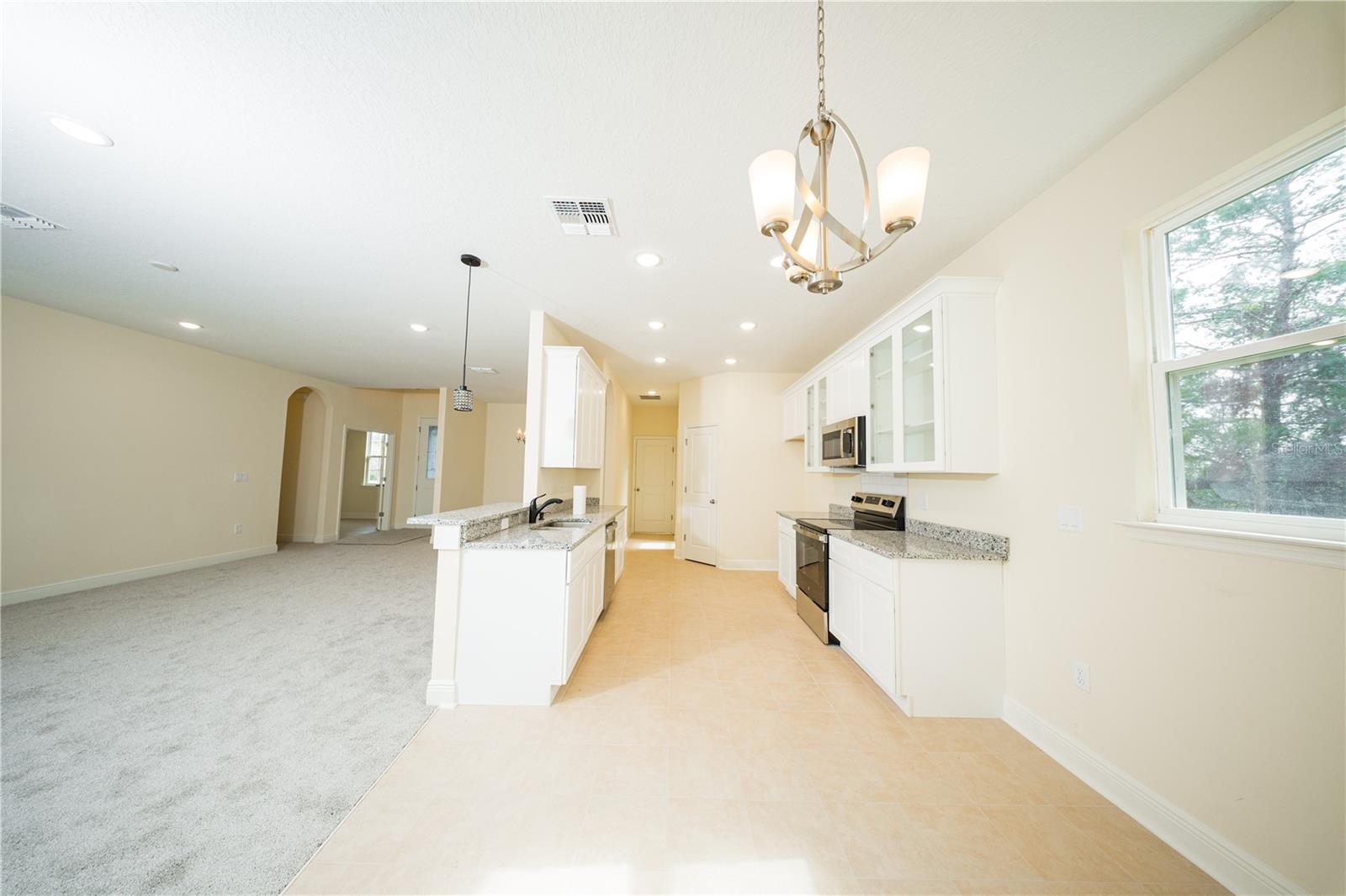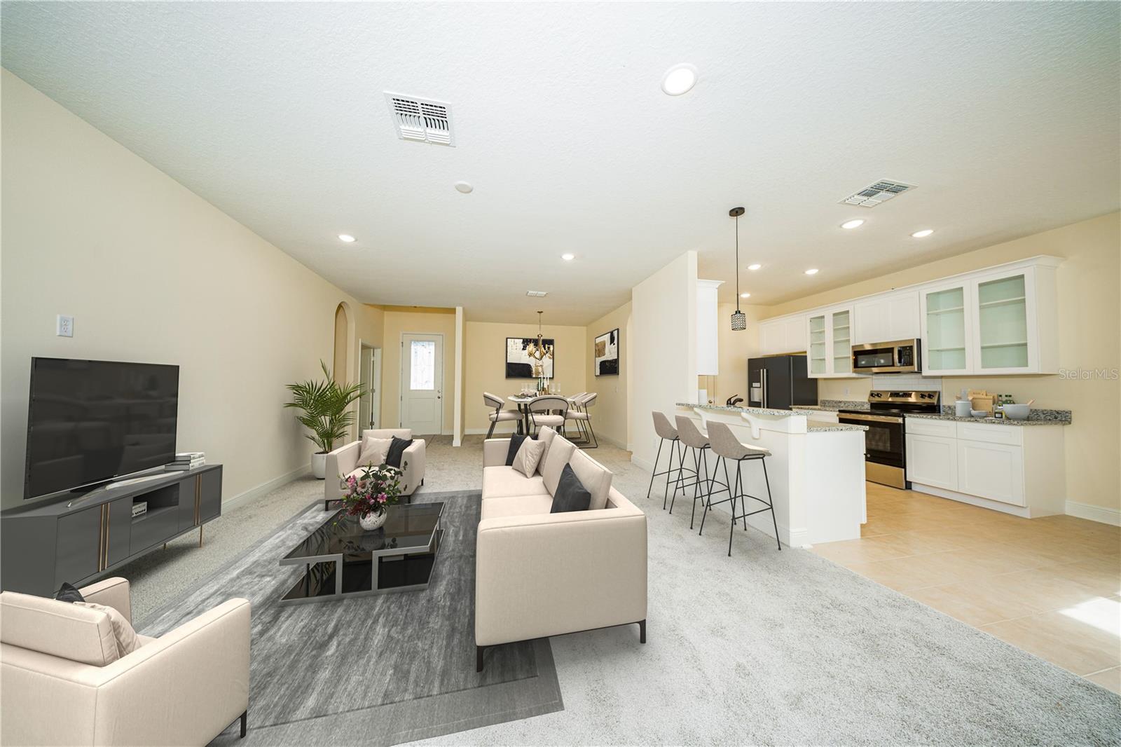 One or more photo(s) has been virtually staged. Experience luxury, flexibility, and savings in this stunning brand-new 2024 home! Featuring 3 bedrooms, 2 baths, plus a den, this residence is designed for both comfort and style, offering unparalleled privacy and elegant modern finishes. With exclusive down payment assistance and seller concessions available, homeownership is more attainable than ever. Plus, rent-to-own options provide even more flexibility! Nestled under 20 minutes from Poinciana Lakes Plaza, this home offers the perfect blend of tranquility and convenience, with a low HOA and no CDD. Step inside to soaring high ceilings and an open-concept kitchen, complete with granite countertops, a double sink, crown-molded cabinetry, recessed lighting, and stainless steel appliances including a dishwasher, range, and microwave with easy access to the laundry room and garage.