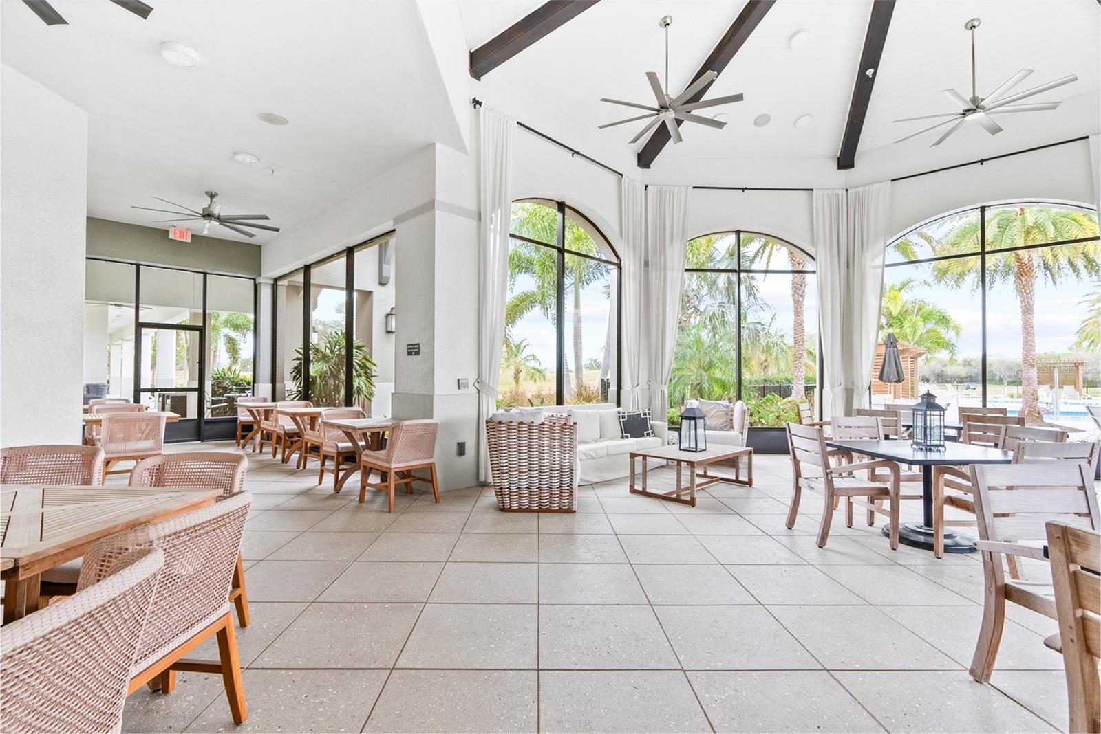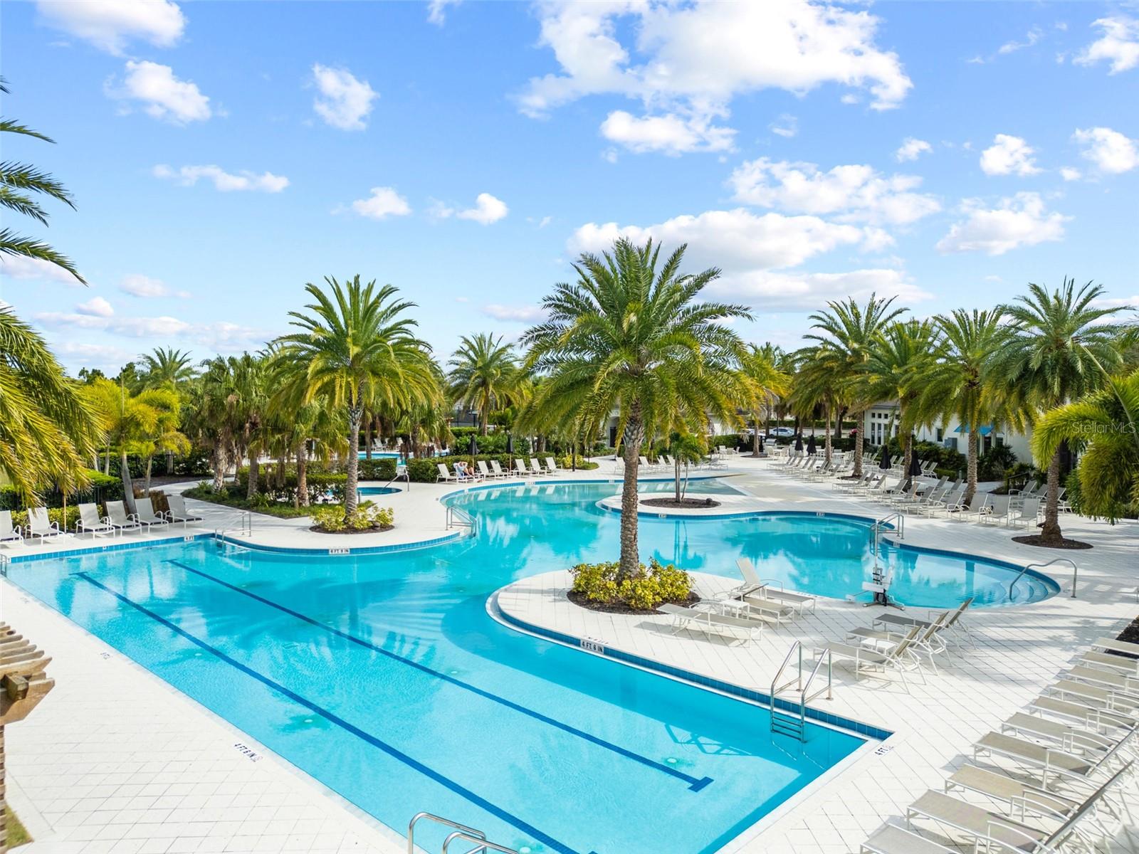 Welcome to this very desirable gated community of The Four Seasons in Orlando. The 55+ resort community has so much to offer with a fantastic swimming pool , a clubhouse that is host to arts and crafts, a well equipped fitness center, tennis courts, pickle ball courts and much more. The views out back from your private porch and no rear neighbors overlooks the Mystic Dunes Golf course. This beautiful home has 2 bedroom 2 baths and a FLEX ROOM/OFFICE as well as inside laundry. The oversized garage has tons of storage. You will notice the open floor plan the minute you walk in the front door. The kitchen has wood cabinets, stainless appliances and stone countertops. Four Seasons is located in close proximity to shopping, dining, Disney World and other major theme parks. With so many planned activities here you will stay active with line dancing, movies, yoga, bocce ball and billiards. This is the lifestyle you are looking for.