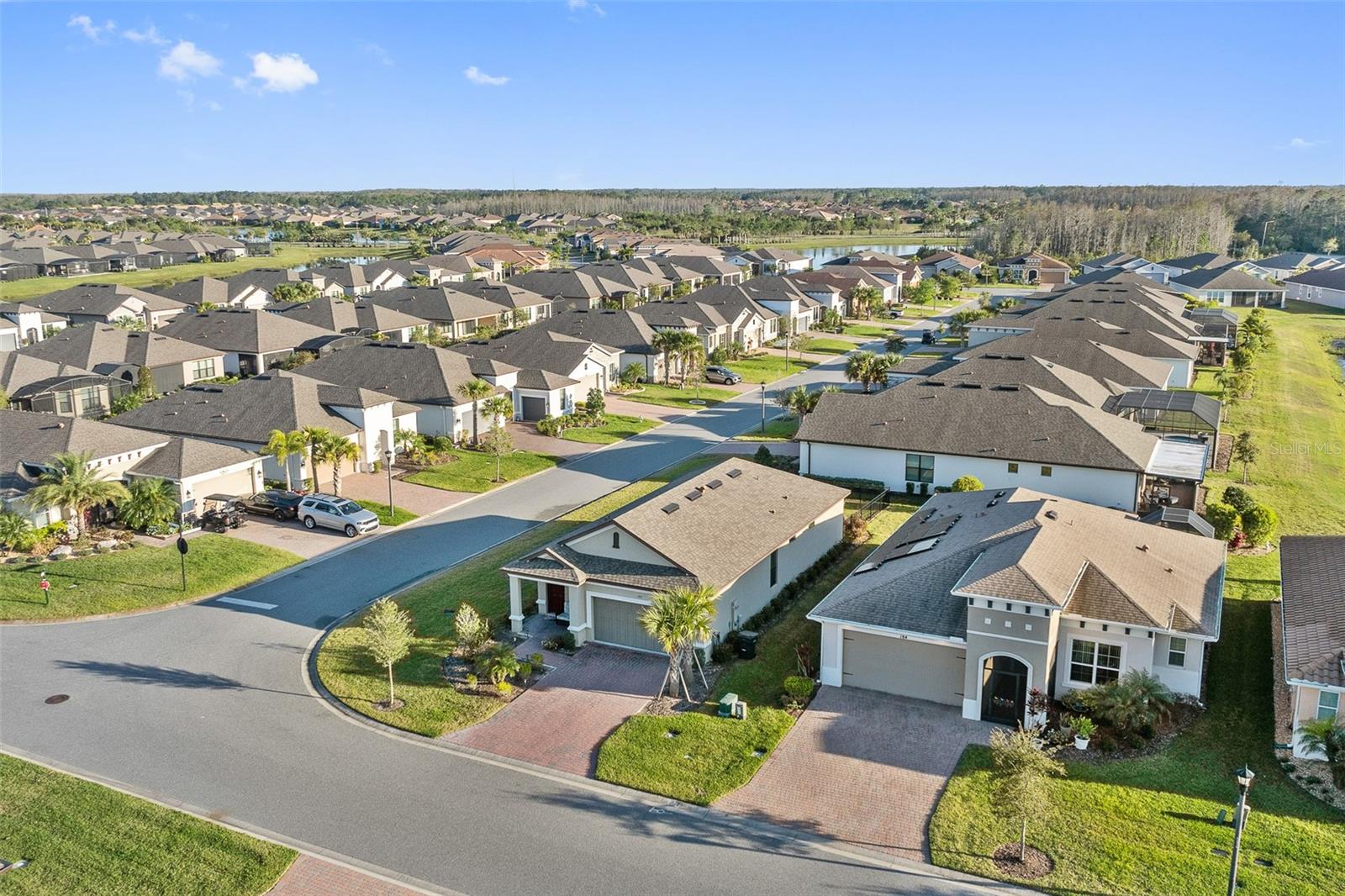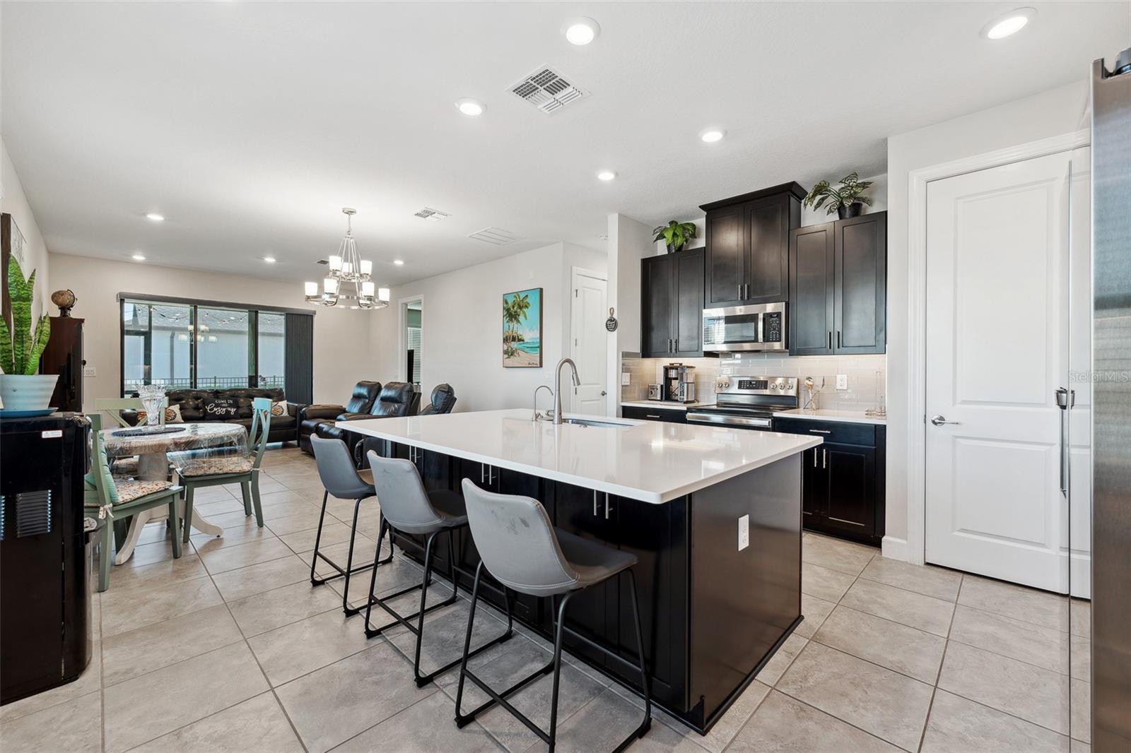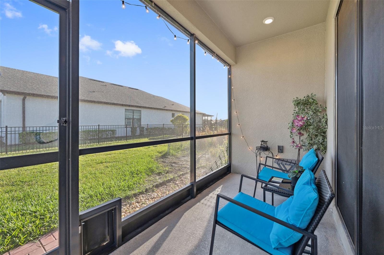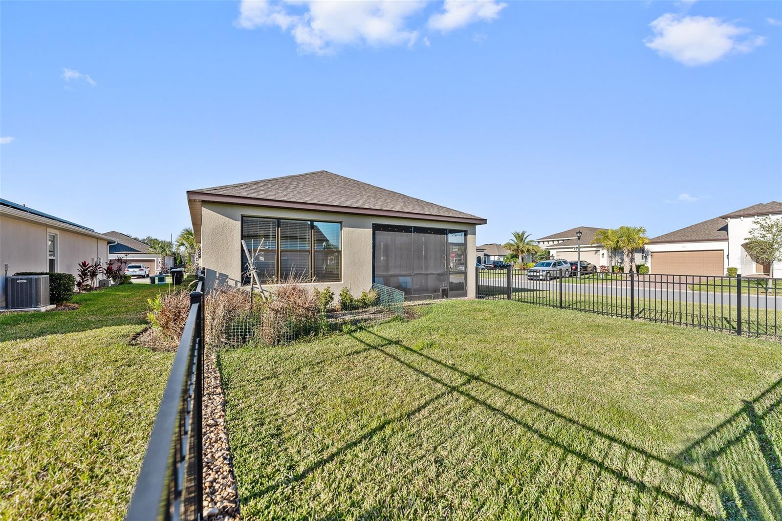 Welcome to this stunning home in a vibrant 55-plus resort-style community! On a prime corner lot, this beautifully built 2022 home boasts modern and clean finishes throughout. Natural light pours in through large windows, creating a bright and airy atmosphere. The spacious kitchen features an oversized island and stainless-steel appliances, ideal for preparing meals and entertaining. With a thoughtfully designed split layout, this home offers two spacious bedrooms and two full baths. Step outside to the screened-in back patio, where you can relax and enjoy the serene outdoor space. The backyard is enclosed by a beautiful black rod iron fence, offering style and security. Plus, outdoor maintenance is conveniently handled by the HOA, allowing you more time to enjoy life. This home is in the sought-after Solivita community, offering an abundance of amenities to enhance your lifestyle. Enjoy access to two golf courses, driving range, 14 heated pools, three heated spas, 17 pickleball courts, nine tennis courts and two fitness centers. Stay active with an indoor walking trail, shuffleboard, bocce ball and more. For relaxation and fun, take advantage of the ceramic galleries with two kilns, card/poker rooms, game rooms, computer rooms, library and two saunas. With over 250-plus clubs to join, there's something for everyone. Live life to the fullest in this welcoming community.