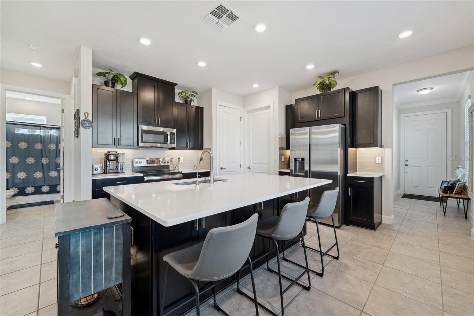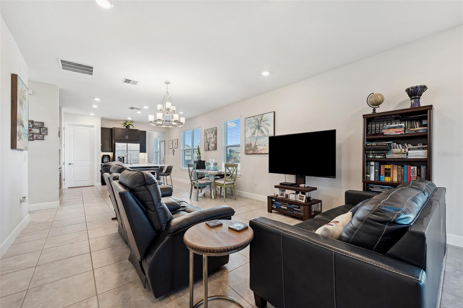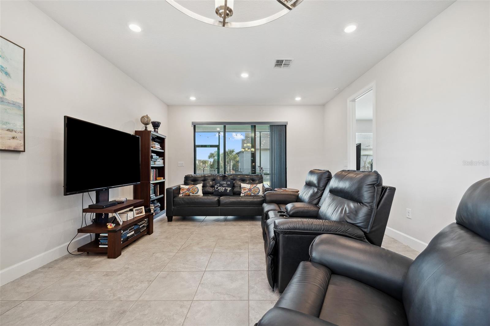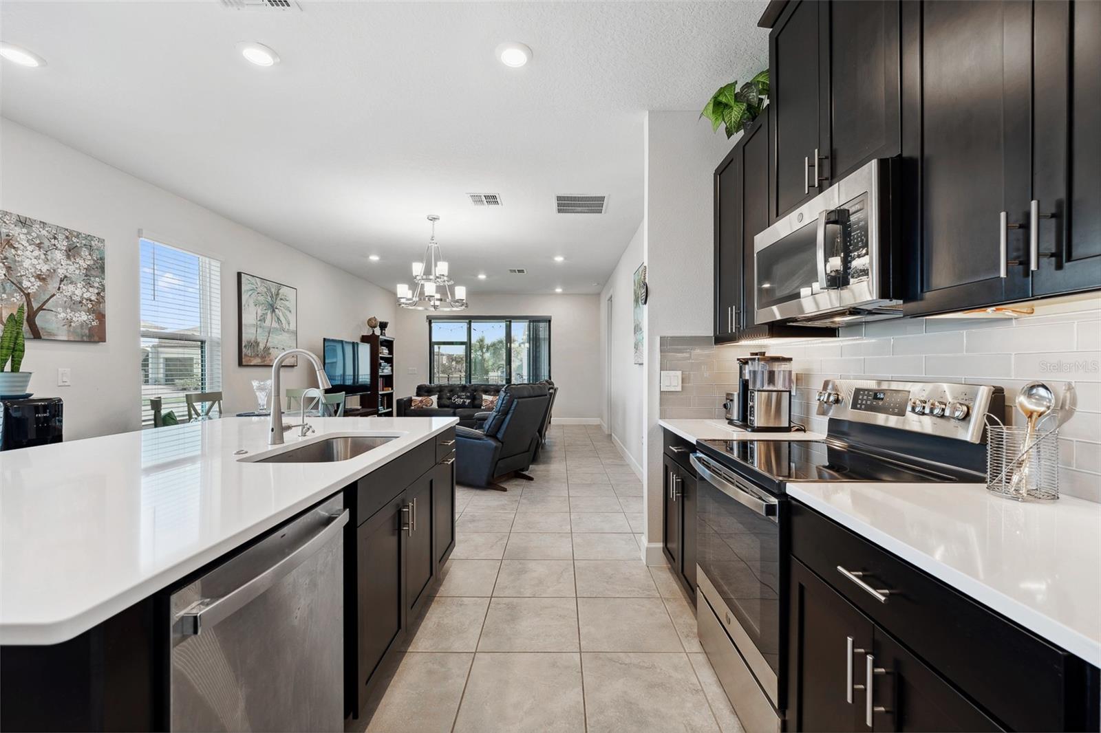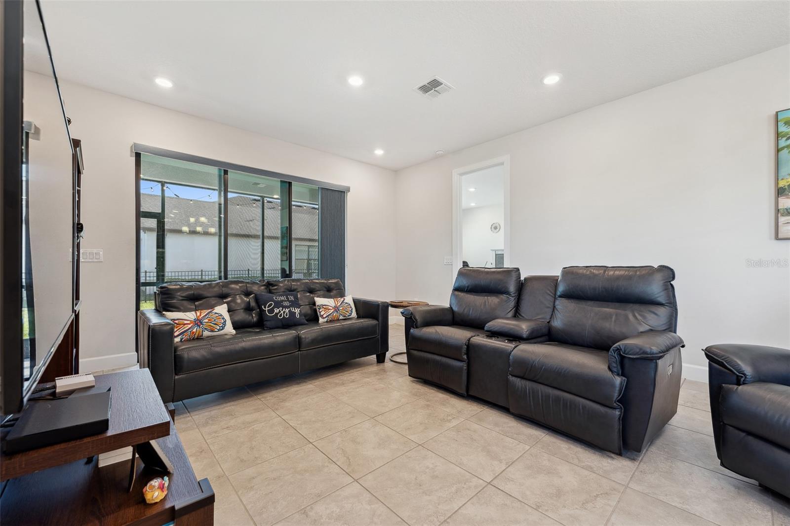Welcome to this stunning home in a vibrant 55-plus resort-style community! On a prime corner lot, this beautifully built 2022 home boasts modern and clean finishes throughout. Natural light pours in through large windows, creating a bright and airy atmosphere. The spacious kitchen features an oversized island and stainless-steel appliances, ideal for preparing meals and entertaining. With a thoughtfully designed split layout, this home offers two spacious bedrooms and two full baths. Step outside to the screened-in back patio, where you can relax and enjoy the serene outdoor space. The backyard is enclosed by a beautiful black rod iron fence, offering style and security. Plus, outdoor maintenance is conveniently handled by the HOA, allowing you more time to enjoy life. This home is in the sought-after Solivita community, offering an abundance of amenities to enhance your lifestyle. Enjoy access to two golf courses, driving range, 14 heated pools, three heated spas, 17 pickleball courts, nine tennis courts and two fitness centers. Stay active with an indoor walking trail, shuffleboard, bocce ball and more. For relaxation and fun, take advantage of the ceramic galleries with two kilns, card/poker rooms, game rooms, computer rooms, library and two saunas. With over 250-plus clubs to join, there's something for everyone. Live life to the fullest in this welcoming community.