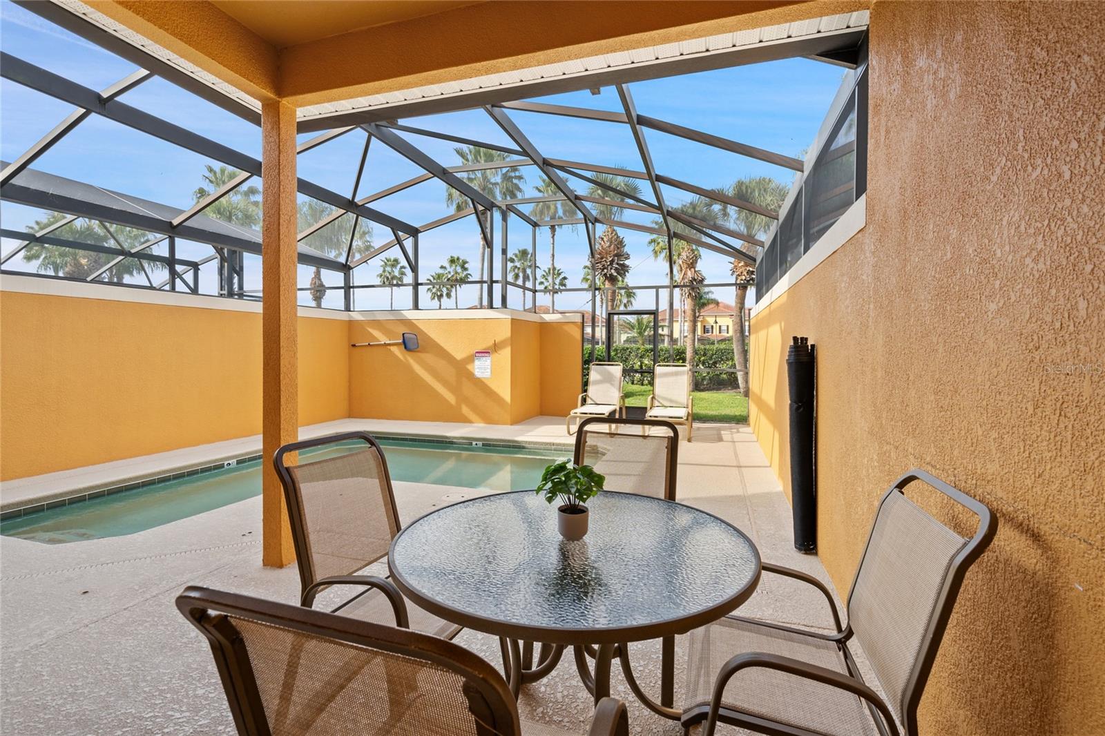 Best Townhome on the market in Paradise Palms Resort, one of the most sought-after privately owned resort communities near Disney World! This beautifully updated 4-bedroom, 3-bathroom townhome is the best-looking unit currently listed in the community, offering unmatched style, comfort, and investment potential w/ similar units grossing upto $6k/mo. Paradise Palms is a gated community with approximately 553 homes, including around 386 townhomes and 167 single-family detached homes, all designed for luxury vacation rentals, or resort style living. Whether you're looking for an investment property, a vacation home, or a place to live year-round, this community is perfect for any lifestyle. Step inside this impeccably maintained and upgraded unit, featuring a private splash pool and a screen enclosed patio for relaxation nestled on a quiet section of the community with privacy in the back. Owners have spared no expense brand new hot water heater, luxury vinyl flooring, neutral paint throughout, New pool filter housing & pump lid, recently re-piped pool pump & freshly pressure washed, freshly updated linens, new bedding, New updated furnishings and themed walls that enhance the vacation experience. World-Class Resort Amenities Include: 24/7 manned gated security for ultimate privacy and peace of mind, Resort-style lagoon pool with waterfall, grotto spa & tiki bar, expansive clubhouse with a movie theater, fitness center, game room & sauna, Tennis basketball & volleyball courts for active fun. On-site convenience store & coffee shop. Located in the heart of Kissimmee, this home is just minutes from Disney World, Universal Studios, and Orlando’s premier attractions, shopping, and dining. Whether you’re looking for a turnkey short-term rental investment or a vacation home, this home is the perfect fit. Fully furnished and equipped, it’s ready to roll right into a rental program. For added convenience, the owner is including the already formed corporation, making it an all-in-one turnkey operation for anyone wanting to hit the ground running with a profitable vacation rental business. Additionally, the owners are open to crypto financing, providing a unique opportunity for those looking to invest in real estate through digital assets. The motivated owners are ready for your offer—schedule your private showing today!