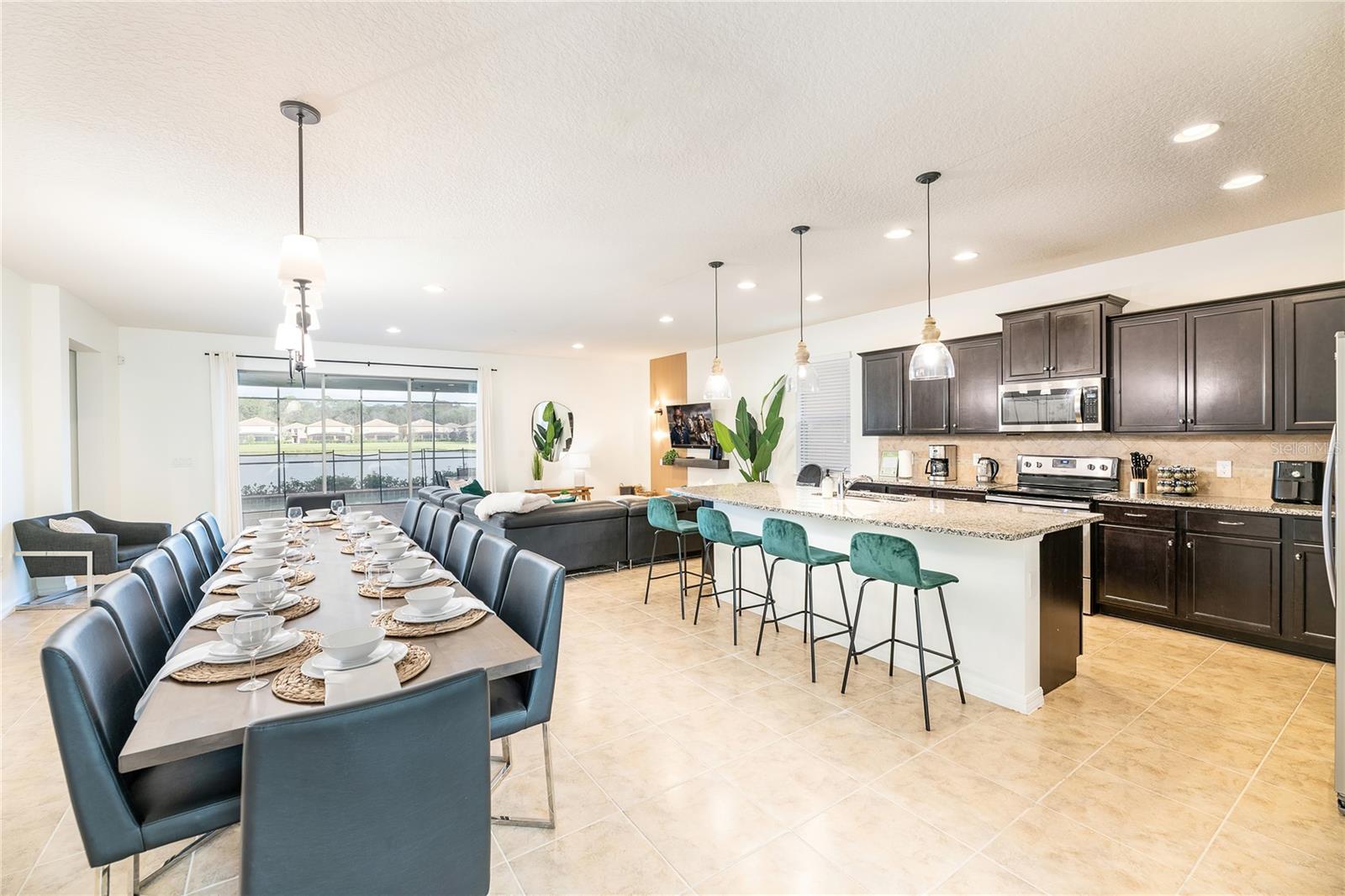 Stunning Lakefront Home in Windsor at Westside – A True Turnkey Vacation Rental Opportunity! Welcome to 1639 Lima Ave, located in the highly sought-after Windsor at Westside community! This exceptional 8-bedroom, 6-bathroom home is perfectly situated on one of the best lots in the neighborhood, offering breathtaking views of the serene lake. Whether you’re seeking a luxurious vacation home or an investment property, this home provides the ultimate opportunity with short-term rentals allowed! This beautifully professionally furnished home is move-in ready, ideal for the short-term rental market. The spacious interior boasts elegant granite countertops in the kitchen and bathrooms, stainless steel appliances, and tile flooring throughout the main living areas and bathrooms. The upgraded lighting fixtures in both the kitchen and dining areas add a touch of sophistication. Step outside to your private screened-in pool area featuring a paver deck and covered lanai, all while enjoying picturesque lake views – the perfect spot to unwind and relax. Community Amenities: A 10,000 square foot resort-style clubhouse Heated pool and spa, with wireless internet available poolside A lazy river for ultimate relaxation State-of-the-art fitness center and poolside cabanas On-site store, playground, and sports courts (volleyball, tennis, basketball) Game room, restaurant, bar, and a cozy lounge area with both indoor and outdoor fireplaces And much more! All-inclusive services include fully maintained landscaping, high-speed internet, cable, and daily valet trash service, offering convenience and peace of mind. This home is ideally located just minutes from Walt Disney World, world-class golf courses, shopping, dining, grocery stores, Orlando International Airport, and all major Orlando attractions. Don't miss out on this incredible opportunity to own a stunning vacation home in one of the most desirable communities in Kissimmee! Schedule your private tour today!