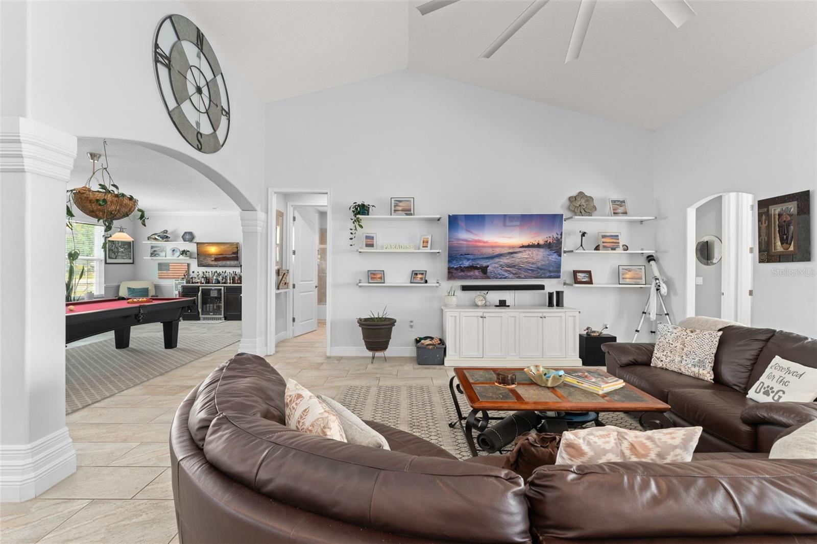 Experience LAKE FRONT living and the ultimate Florida lifestyle in this stunning 3-bedroom, 3-bathroom home, perfectly situated on a peninsula street with water views in both the front and back and the peace of mind of a WHOLE-HOME GENERATOR. Nestled along Lake Tohopekaliga, this home offers breathtaking sunsets, abundant wildlife, and direct lake access. Step inside to find an inviting layout featuring an office off the foyer and a spacious living room with oversized windows and a built-in bar with a drink fridge that seamlessly flows into the family room, where sliding glass doors open to stunning lake views. The dining area is tucked at the back near the beautifully updated kitchen, boasting granite countertops, stainless steel appliances, sleek grey cabinetry and a built-in wine fridge with custom wine racks. The split-floor plan provides privacy, with two guest bedrooms and bathrooms off the living room - each with its own entrance off the living room - while the primary suite is situated off the kitchen. The spacious primary retreat features tray ceilings, lake-view windows, two large walk-in closets, and a spa-like ensuite with dual vanities and a luxurious walk-in shower with a rain head feature. Outdoor living is unparalleled with a paved porch, a fully screened-in saltwater pool and gas-heated spa, and no rear neighbors for added privacy. The front of the property offers a dock on the canal leading out to the lake, along with a boat house equipped with two boat lifts. Enjoy the best of nature right from your backyard—eagles, otters, owls, and world-class fishing. Additional features include a west-facing backyard for spectacular sunsets, an extra sun deck, a fenced area for kids or pets, a circular driveway with covered parking under a custom carport, whole-home water softener, gas tankless hot water heater, and gas stove. This home is truly a rare find with unbeatable views and endless outdoor activities—schedule your private tour today!