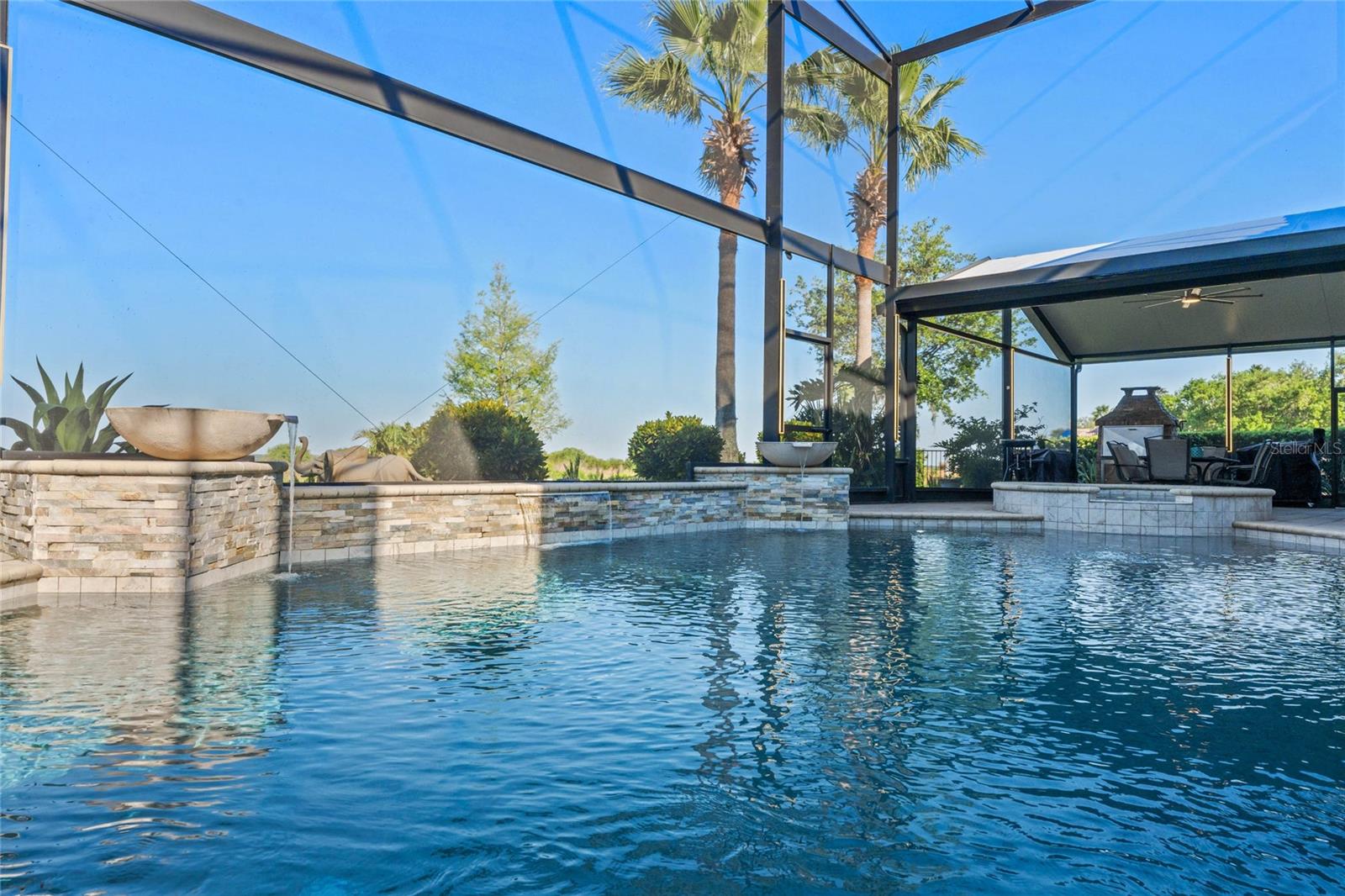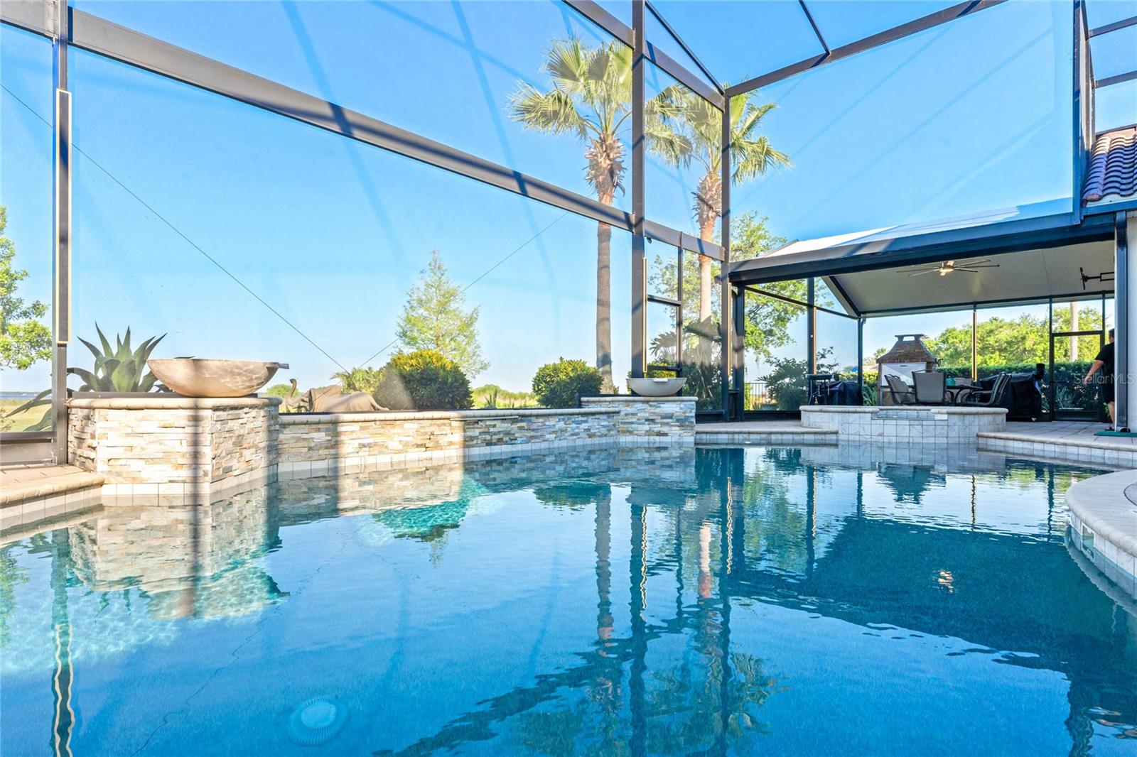 Welcome to 1491 Gateway Lane, a breathtaking 5-bedroom, 5.5-bath builder’s model home in the highly sought-after Bellalago community. Spanning an impressive 5,280 square feet under air, this lakefront masterpiece sits directly on the shores of Lake Tohopekaliga (Lake Toho), offering unobstructed water views and no right-side neighbors for enhanced privacy. Designed for both luxury and functionality, this home features an expansive open-concept layout with crown molding throughout, a huge gourmet kitchen equipped with stainless steel appliances, a cooktop, double ovens, and ample counter space—truly a chef’s dream. Outdoor living is exceptional with a stunning pool, an extended screened-in lanai, and the option to build your own private boat dock, granting direct access to Lake Toho’s renowned fishing waters. The second floor boasts a private balcony, while a massive loft area offers endless possibilities as a game room, movie theater, or entertainment space. The grand master suite is a retreat of its own, featuring dual sinks, an oversized shower, and an enormous custom walk-in closet. Convenience is paramount, with laundry rooms on both levels, a butler’s pantry with a bar area, a drop zone, and advanced smart-home features, including security cameras, surround sound, and a central vacuum system. With two separate garages providing a total of four spaces, storage and parking are never an issue. Resort-style living awaits in Bellalago, a Mediterranean-inspired, gated community offering three sparkling pools, two fitness centers, walking trails, a fishing pier, and on-site dining at Flip Flops restaurant. Sports enthusiasts will appreciate the pickleball, tennis, basketball, and beach volleyball courts, while a kids' water park, dog park, and picnic areas cater to families. Boating enthusiasts will enjoy the private boat lift and launch, ensuring seamless access to Lake Toho’s vast waters. Located just 21 miles from Walt Disney World, Bellalago provides the perfect blend of tranquility and convenience. Don’t miss this rare opportunity to own a premier lakefront residence—schedule your private tour today!