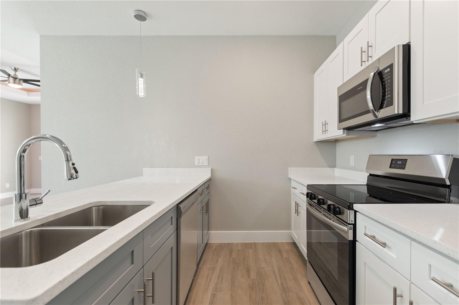Welcome to the epitome of modern living in our stunning Duplex Model. We invite you to experience unparalleled sophistication from the moment you step through the impressive 8 ft front door. Revel in the seamless flow of this open-concept, split bedroom floor plan. Designed for both style and functionality, this duplex features a seamless open-concept layout with gorgeous wood-look tile flooring, high ceilings, and designer-selected finishes. Indulge your culinary senses in the kitchen, complete with quartz countertops,cover the solid wood cabinets with soft-close doors and drawers, and a spacious pantry—perfect for everyday cooking or entertaining guests. A full stainless steel appliance package and ample counter space make this kitchen a haven for culinary enthusiasts. Each unit offers two spacious bedrooms with en-suite bathrooms, providing the ultimate privacy. The primary suites feature LED-lit tray ceilings, walk-in closets, and spa-like bathrooms, creating a true retreat. Built with quality and convenience in mind, this home comes move-in ready in May. Showings are available by appointment only, ensuring a personalized experience. Contact our call center today to schedule your private tour. Please note that the photos provided are for illustrative purposes, offering a glimpse into the exemplary finishes and floor plan of this remarkable home. Your dream home awaits – make it yours! * Home will come unfurnished, exterior color scheme may vary from photos (is not current house)