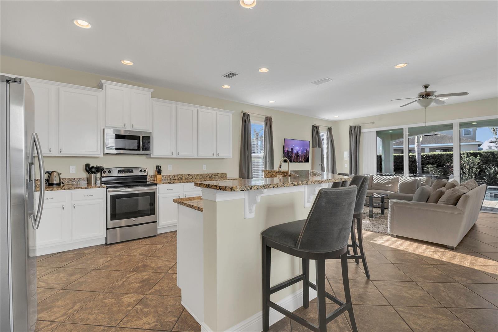 Welcome to this stunning 5-bedroom, 5.5-bathroom retreat in the heart of Florida, boasting 3,328 sq ft of luxurious living space. This fully furnished single-family home, built in 2016, offers an open floorplan, high ceilings, and a private pool, perfect for relaxation or entertaining. Nestled in the desirable and manned gated Encore Resort at Reunion, enjoy resort-style amenities including a water park, sports facilities, and a clubhouse, all just minutes from Disney World, Universal Studios, water parks and top attractions. This particular home is conveniently located on the same side of the road as the resort, so you don't even have to leave the gates to enjoy the resort amenities. Ideal as a primary residence, vacation home, or investment property, this turnkey gem is ready for you to make it your own!