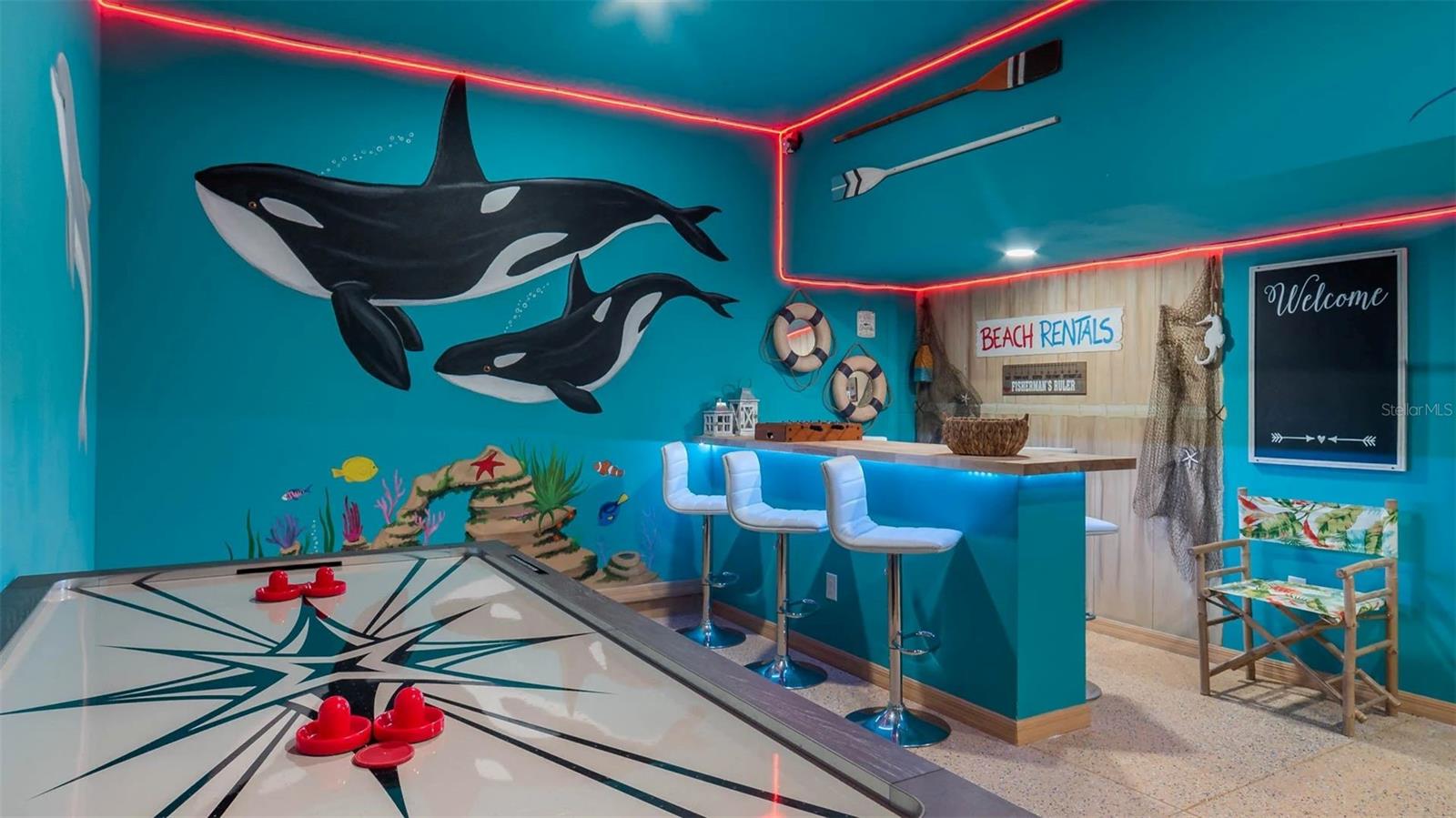**The Perfect Vacation Home Minutes from the Theme Parks? You Found It!** Income-Producing Vacation Home in Solara Resort – 5BD/4.5BA – Fully Furnished & Themed Welcome to 9004 Sunshine Ridge Loop*– a turnkey, income-generating vacation retreat located in the highly desirable Solara Resort, just 7 miles from Walt Disney World. This 5-bedroom, 4.5-bathroom gem is packed with fun, comfort, and all the features that make it a standout Airbnb performer or a magical family getaway. This home features a private heated pool and spa where you can relax after a day of adventure. Themed bedrooms bring the magic to life with a Pirate Ship Adventure and Tiki Beach Hut, creating an unforgettable stay. A fully themed garage conversion / game room with AC offers nonstop entertainment for guests of all ages, and smart TVs are installed in every room for modern convenience. Upstairs you will find the beach-themed gmaes area with bar setup and oversize TV which offers some separation for your group to enjoy the home. The spacious layout includes a first-floor bedroom suite with a king bed, while all remaining bedrooms are located upstairs including a wonderful primary suite. It comes fully furnished, professionally decorated, and move-in ready—making it ideal for personal use or immediate rental income. As a part of Solara Resort, you’ll enjoy access to world-class amenities including the thrilling FlowRider surf simulator, a resort-style pool with water slide and splash pad, a state-of-the-art fitness center, and recreational options like basketball, sand volleyball, and soccer fields. On-site dining and shopping options, including a bar & grill, coffee shop, and market, make this community feel like a full-service resort. This home is a top-performing short-term rental with strong occupancy and income history—an incredible opportunity whether you're an investor or looking for the ultimate family vacation home. Showings are limited due to high guest bookings, so don’t miss your chance to own this exceptional property. Schedule your private tour today. Realtors welcome—bring your buyers. https://www.youtube.com/watch?v=llQN2z02hrA AVAILABLE TO VIEW; MAY 17-19