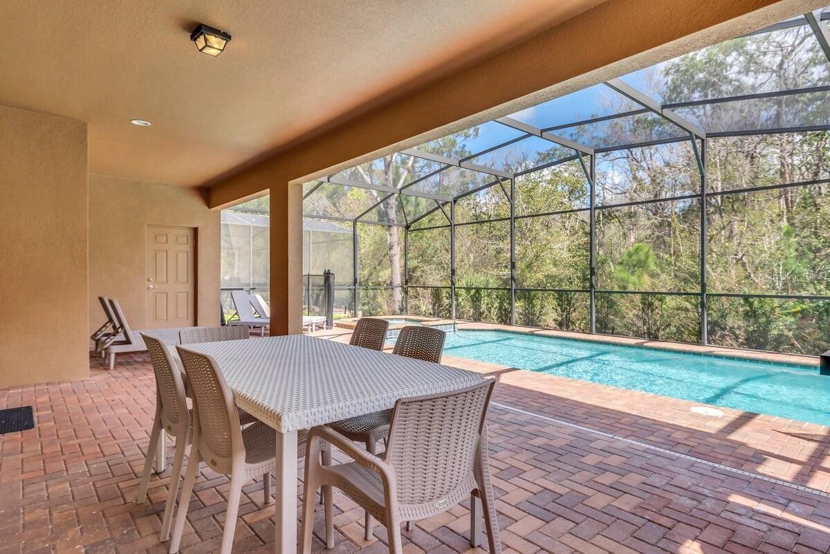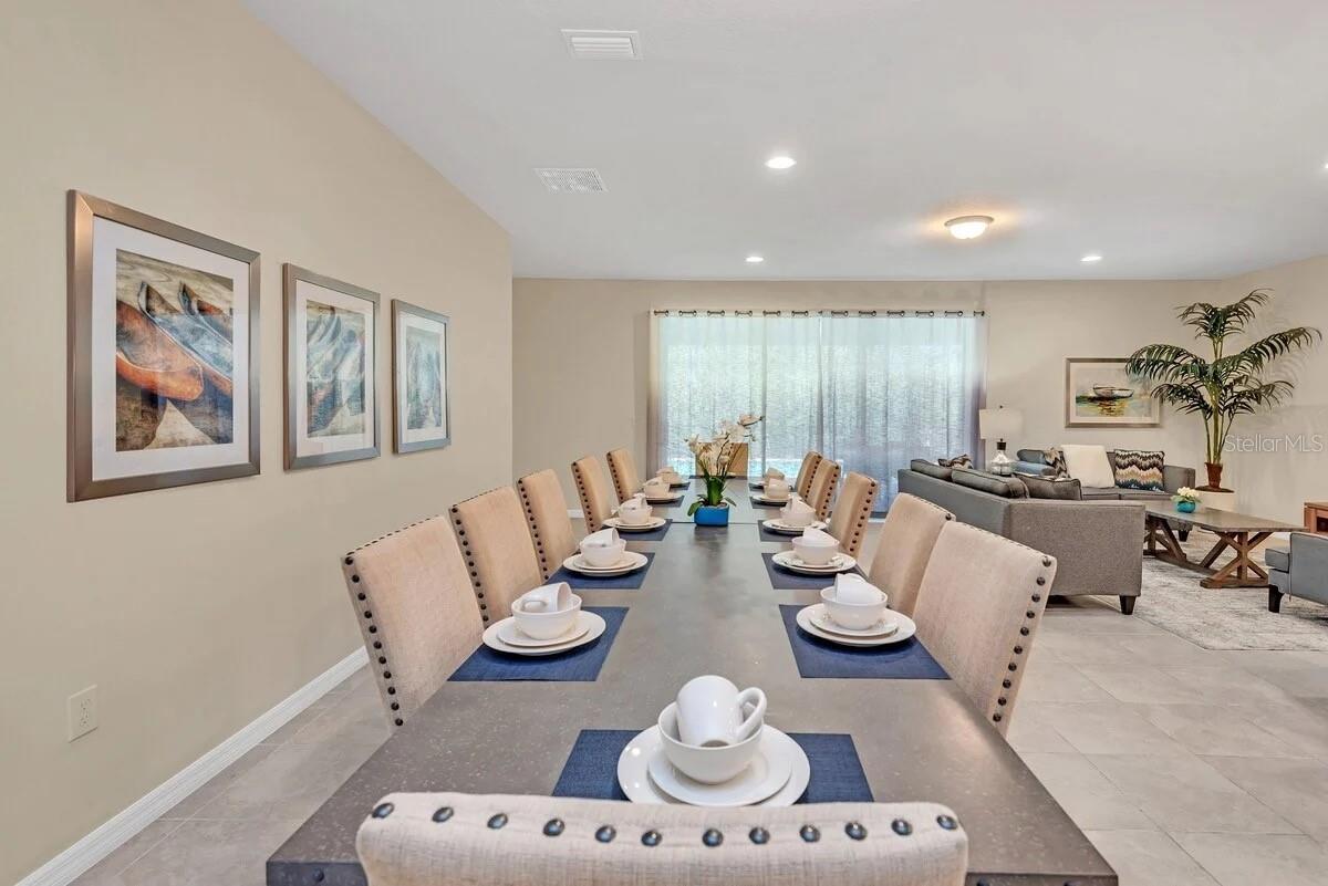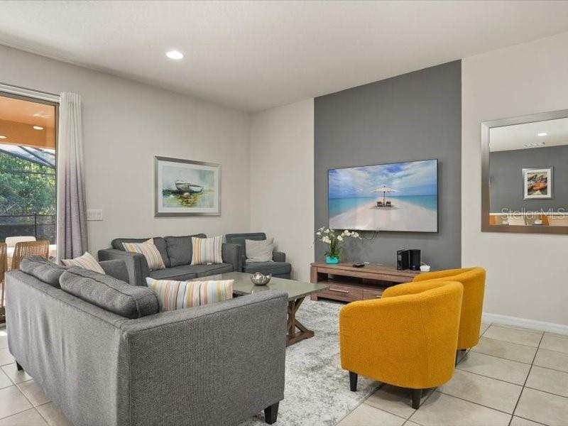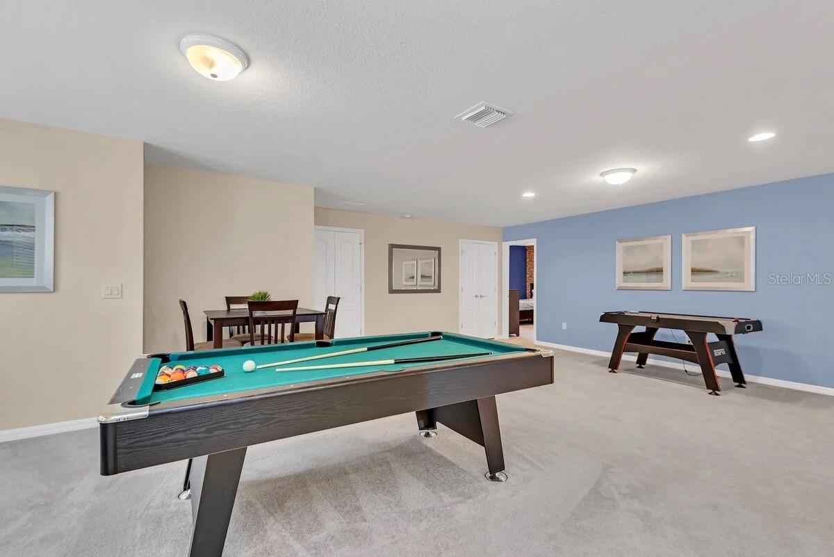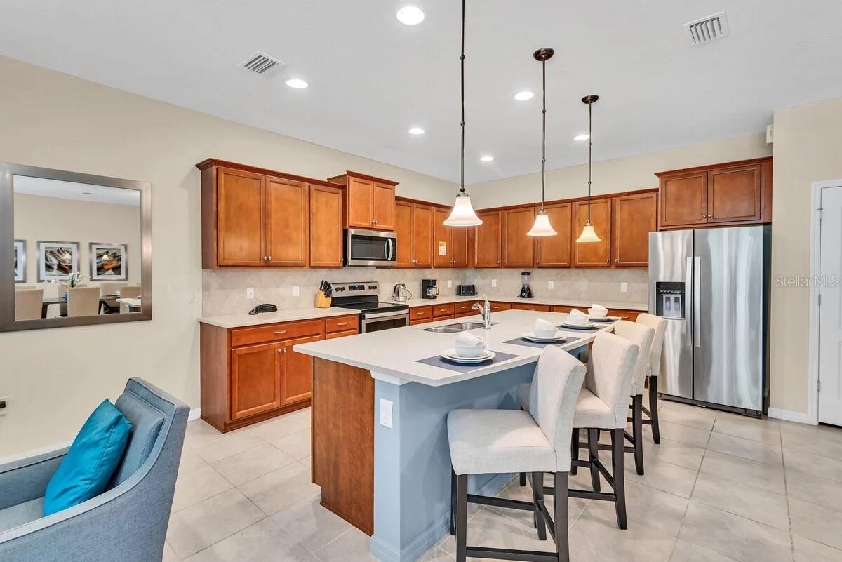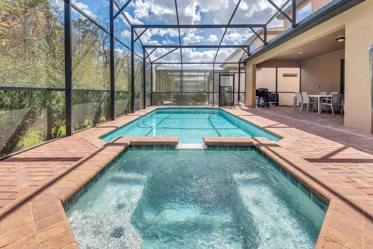 PRICE IMPROVEMENT! Also available for lease - $4,450/month. Experience unparalleled privacy in this TURN KEY 9-bedroom vacation home, nestled on a secluded conservation lot in the highly sought-after Windsor at Westside Resort. Perfect for large families, this spacious property offers a variety of entertaining areas, including a heated pool and spa, a game room, and an expansive bonus entertainment room upstairs, allowing guests to relax and enjoy their stay. The sizable kitchen overlooks the family room and a separate dining area, featuring a table that seats 10, along with a large L-shaped island for additional seating. UPDATES include high end LVP on the stairs, fresh paint downstairs and new living furniture! Windsor at Westside is a premier gated community located just minutes from Disney World and boasts top-tier amenities, such as a luxurious clubhouse, heated pool and spa, lazy river, water playground, fitness center, on-site store, sand volleyball court, tennis and basketball courts, a game room, and a restaurant and bar. Now is the perfect time to secure your vacation home before the busy summer months—find this ideal retreat in the best resort community, Windsor at Westside! Check out the virtual walkthrough video