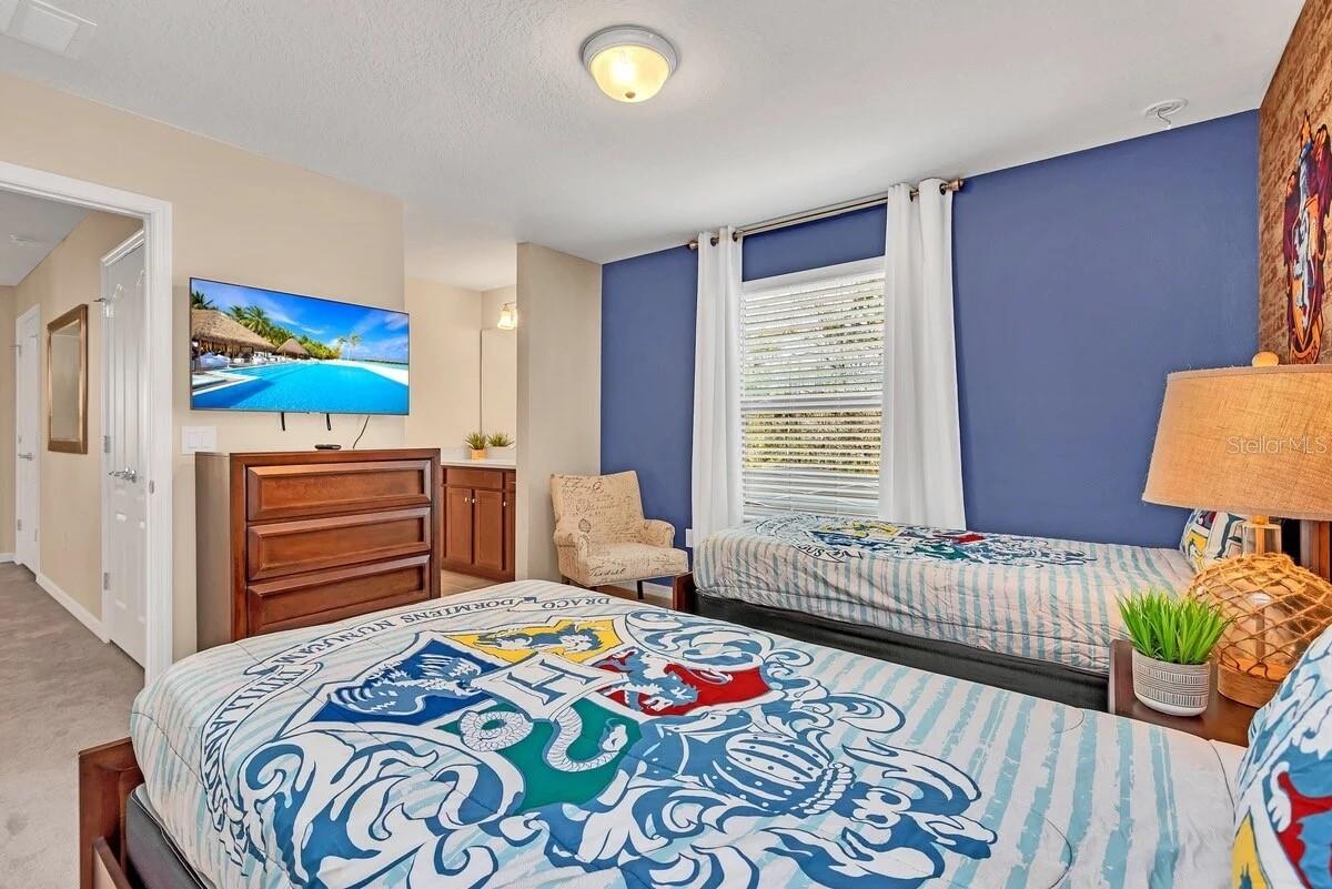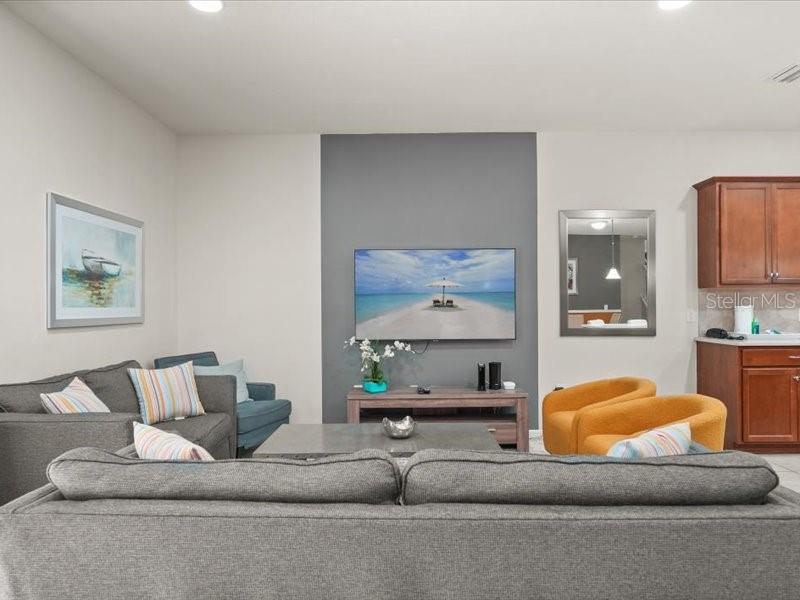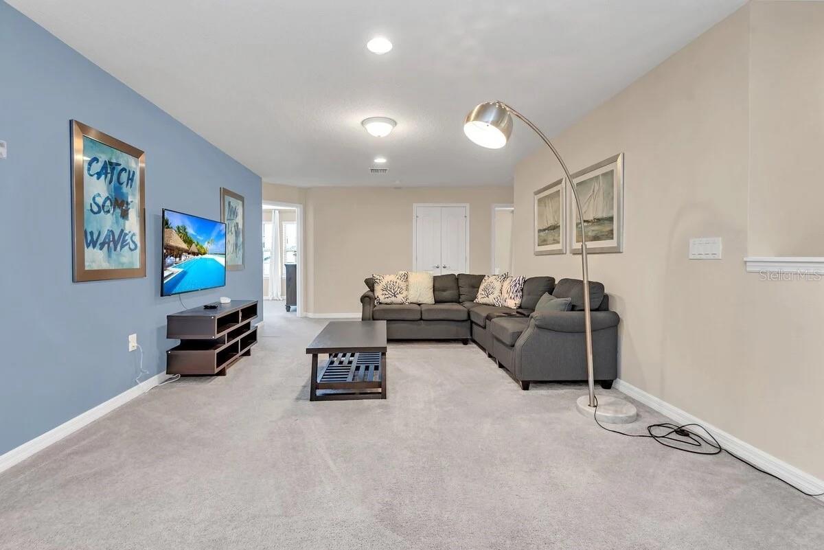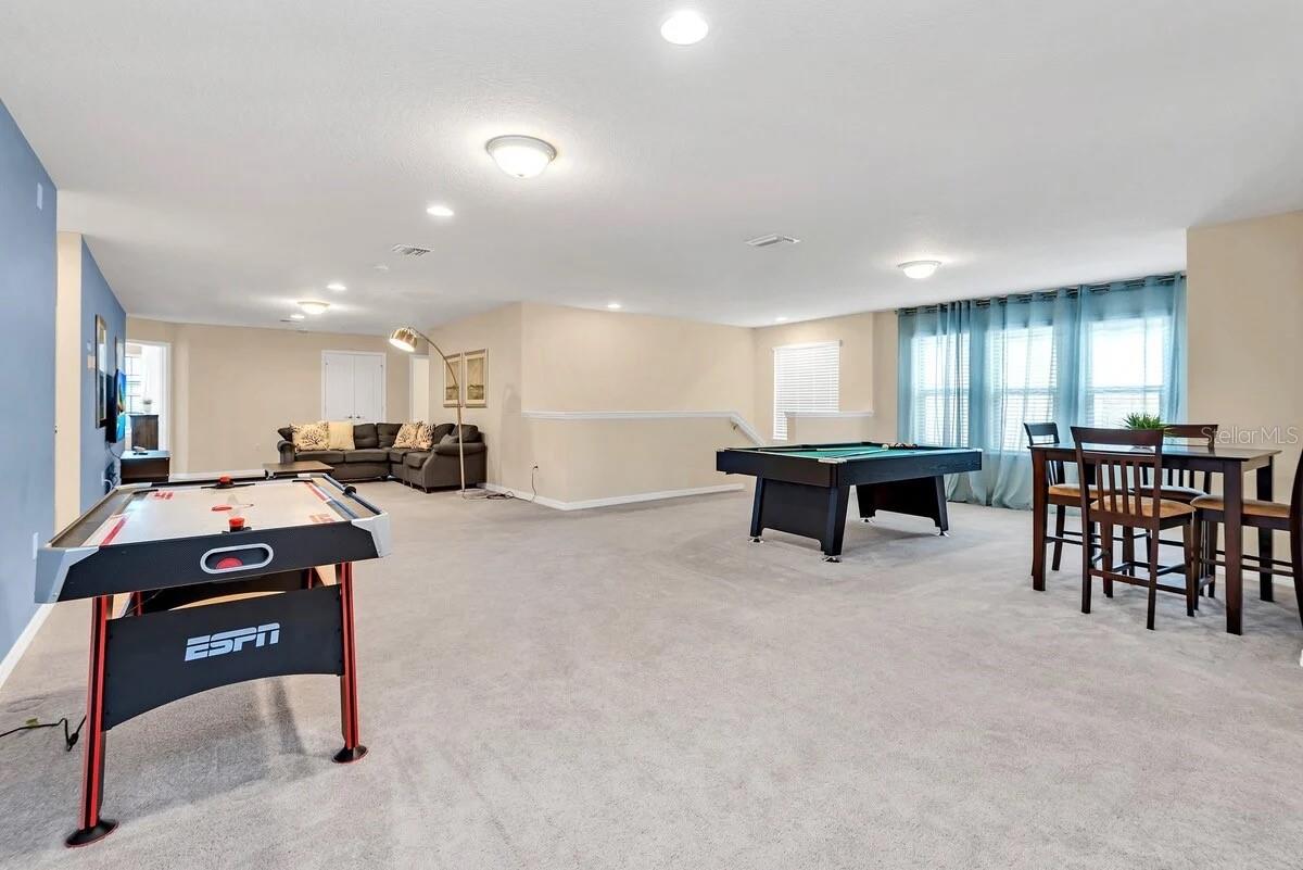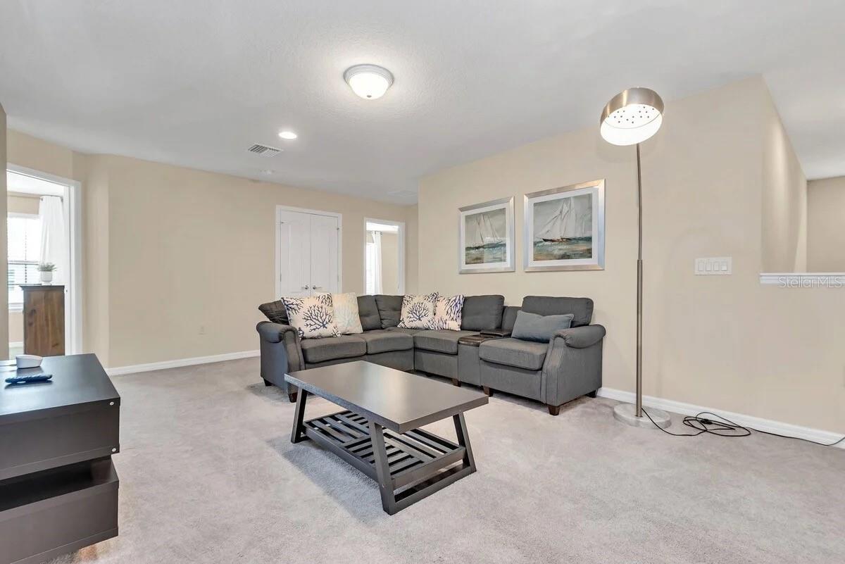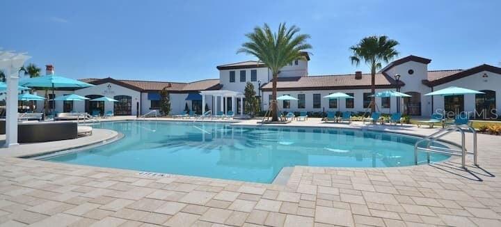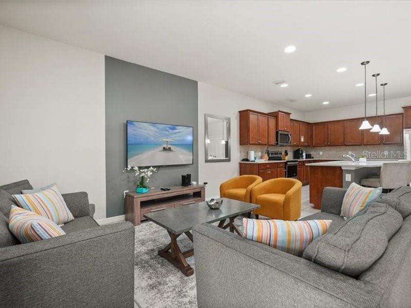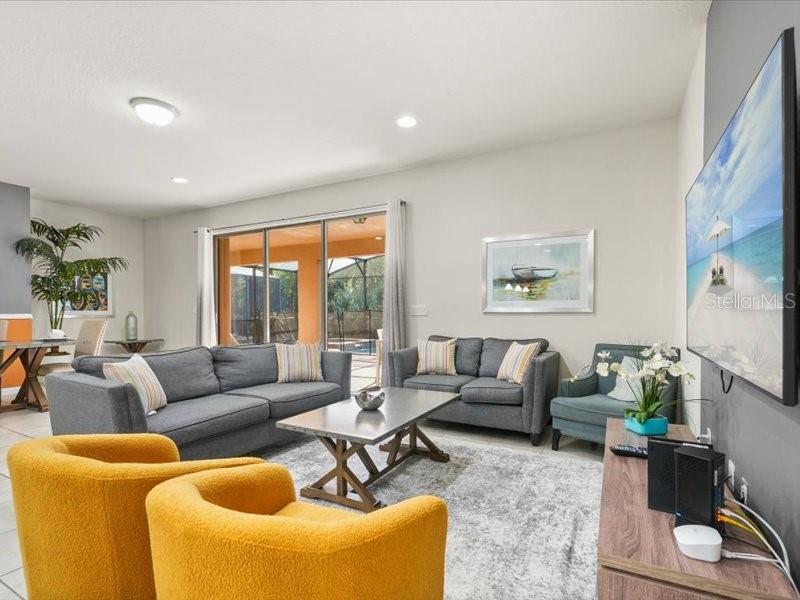 PRICE IMPROVEMENT! Also available for lease - $4,450/month. Experience unparalleled privacy in this TURN KEY 9-bedroom vacation home, nestled on a secluded conservation lot in the highly sought-after Windsor at Westside Resort. Perfect for large families, this spacious property offers a variety of entertaining areas, including a heated pool and spa, a game room, and an expansive bonus entertainment room upstairs, allowing guests to relax and enjoy their stay. The sizable kitchen overlooks the family room and a separate dining area, featuring a table that seats 10, along with a large L-shaped island for additional seating. UPDATES include high end LVP on the stairs, fresh paint downstairs and new living furniture! Windsor at Westside is a premier gated community located just minutes from Disney World and boasts top-tier amenities, such as a luxurious clubhouse, heated pool and spa, lazy river, water playground, fitness center, on-site store, sand volleyball court, tennis and basketball courts, a game room, and a restaurant and bar. Now is the perfect time to secure your vacation home before the busy summer months—find this ideal retreat in the best resort community, Windsor at Westside! Check out the virtual walkthrough video