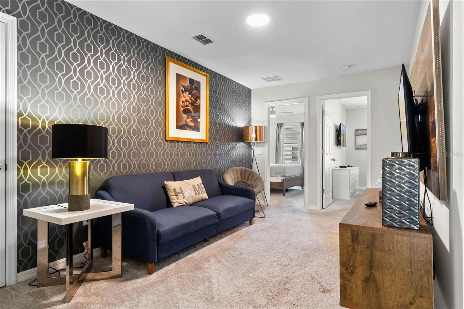 Welcome to 1558 Carey Palm Circle located in the beautiful gated resort community of Solara. This furnished townhome offers a comfortable and welcoming atmosphere making it the Perfect 2nd home or investment property! Step inside to find 2,090 square feet of well-designed living space, featuring four spacious bedrooms and four and a half bathrooms featuring one ensuite downstairs and one ensuite upstairs ensuring room for everyone to enjoy privacy and comfort. The downstairs space features an open concept floor plan with living room, kitchen, and dining area making entertaining a pleasure. Upstairs you will find a loft area with additional flex space as well as the laundry area. Outside, you'll find a private pool and bath perfect for cooling off on hot Florida days. Enjoy the shared outdoor space, complete with a playground and basketball court for fun and recreation. Fitness enthusiasts will appreciate the on-site gym, making it easy to stay active. Indulge in some fun at the gaming stations, sports simulator, or relax at the yoga lawn. Cool down in style and enjoy one of Solara Resort's water amenities such as the expansive, zero-entry pool, water slides, Flowrider and more! Located just minutes from world-famous Orlando area theme parks and attractions, plus, easy access to popular shopping and dining areas. Don’t miss your chance to make this fantastic house your new home sweet home! Schedule a showing today and experience it for yourself.