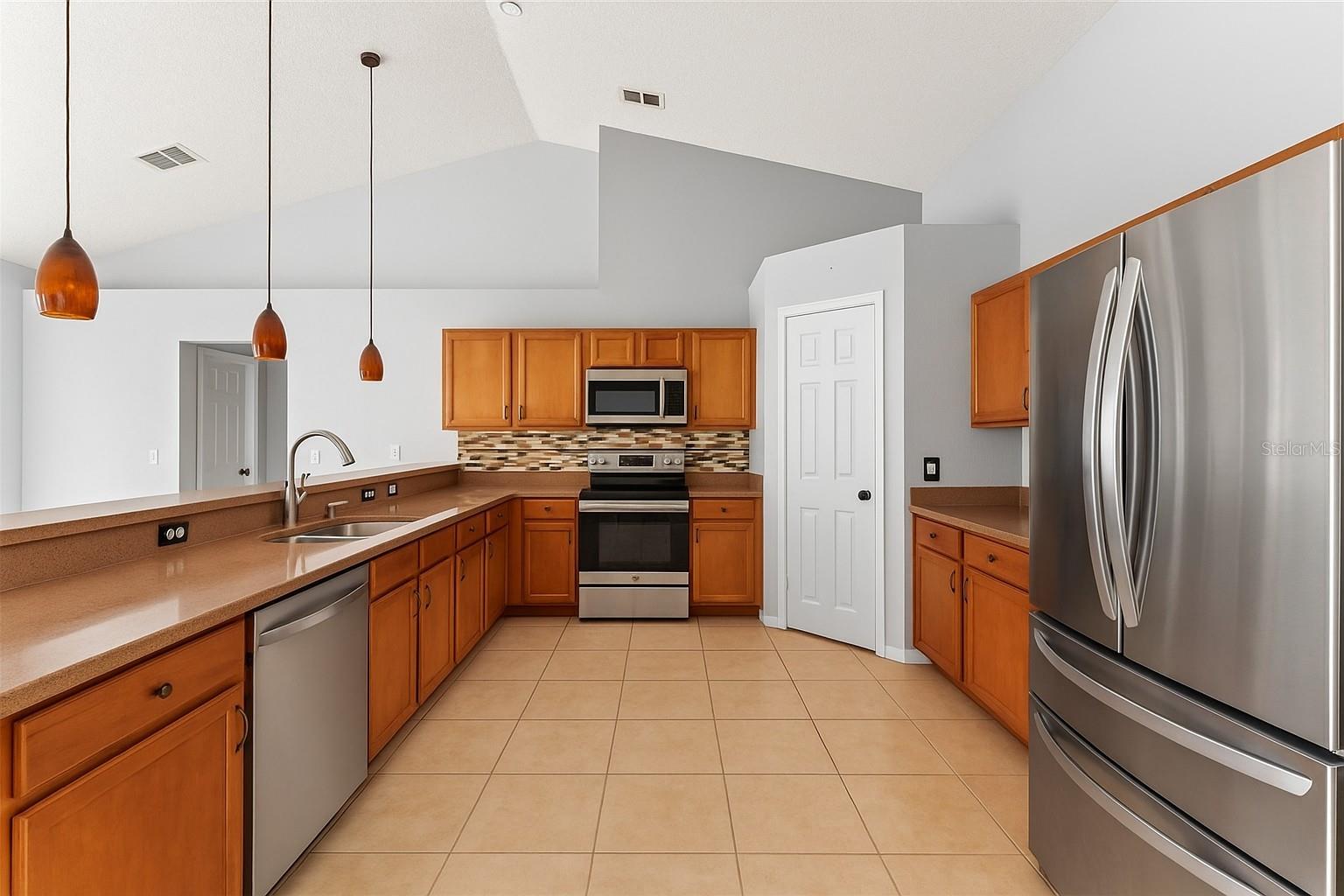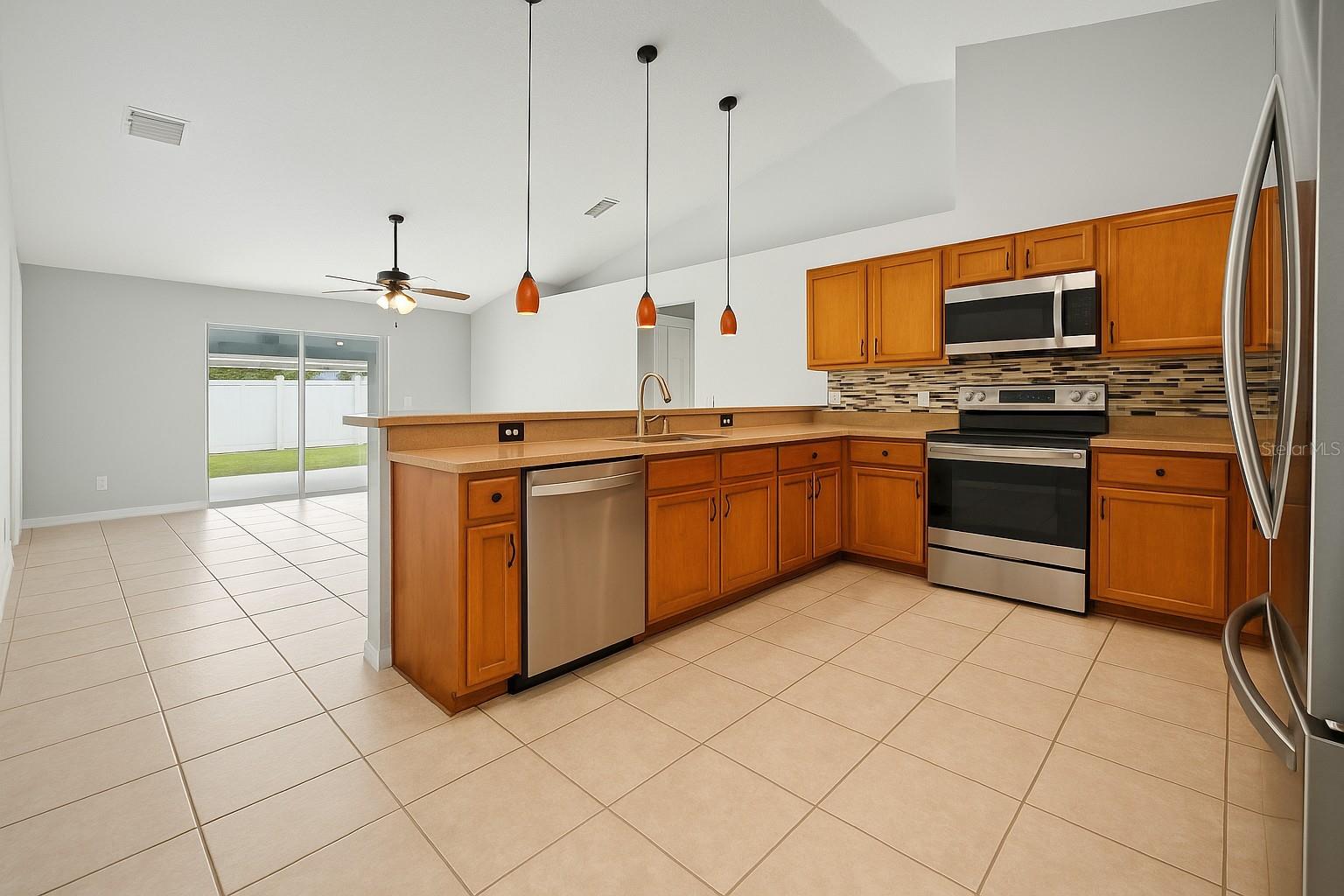 One or more photo(s) has been virtually staged. NEW PRICE! MOTIVATED SELLER/ Seller may consider buyer concessions if made in an offer. Whether you are in the market for a MOVE-IN READY first home or looking to invest (LOW HOA!), you will appreciate this LUXURY RETREAT! HOME. what a great layout! This home is in perfect condition; THE ROOF IS ONLY 8 YEARS OLD. ENJOY SIGNAFICIANT SAVINGS ON YOUR ELECTRICITY BILLS YEAR-AROUND thanks to the ENERGY-EFFICIENT SOLOR PANELS- Keeping your home cool in the summer and warm during the winter. This beautifully maintained 4-bedroom, 2-bathroom home offers a perfect balance of comfort, efficiency, and privacy. and Spacious Backyard. ONE OF THE STANDOUTS FEATURES IS THE FULLY PAID-OFF SOLLAR and THE DOUBLE-PANE WINDOWS NOT ONLY IMPROVE INSULATION BUT ALSO PROVIDE ENHANCED SECURITY. The backyard is fully fenced, offering a private space for family gatherings or relaxation, and the large shed in the backyard provides additional storage or a potential workshop. The landscaping is well-maintained and adds to the home’s clean and inviting curb appeal. This home is freshly painted, features a spacious layout, The HIGH CEILINGS and stylish fixtures gives this home a light and bright feel. Also, The modern kitchen seamlessly flows into the living and dining areas, making it ideal for entertaining. This home offers a unique combination of energy efficiency, privacy, and style in a prime Kissimmee location. Call today to schedule a tour and fall in love with your new HOME SWEET HOME!