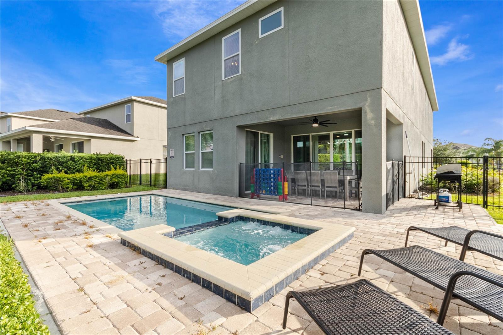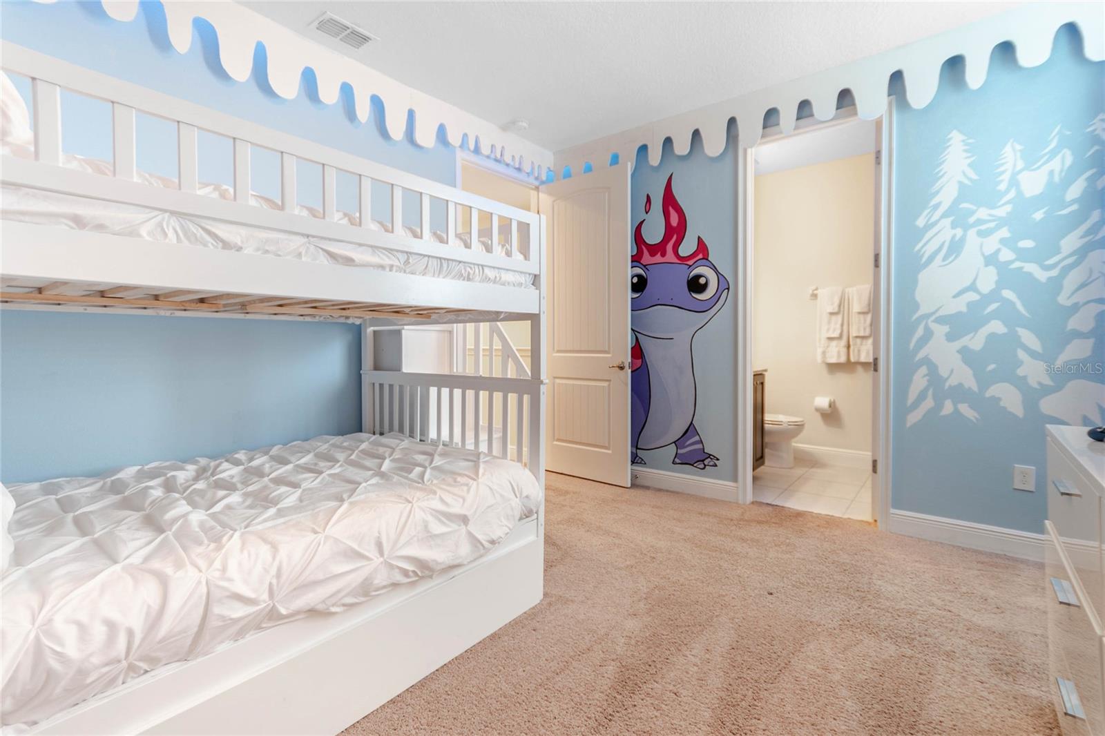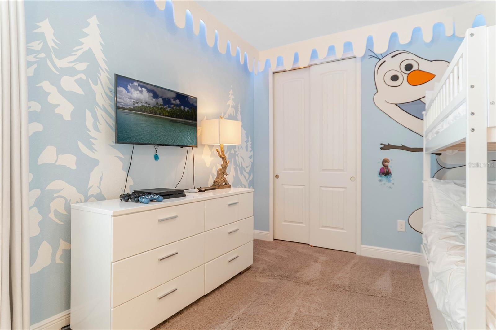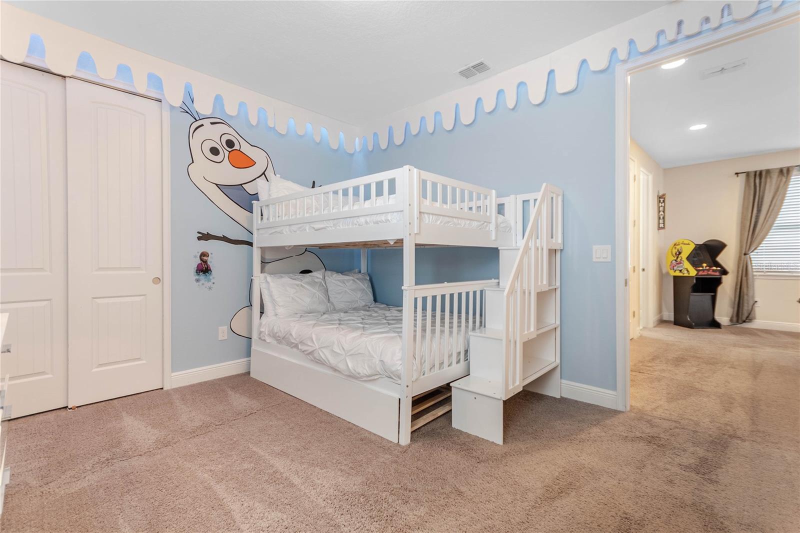 Located in the highly sought-after, guard-gated Encore Resort, just minutes from Walt Disney World and other world-class attractions, this luxurious two-story home offers the perfect combination of comfort, style, and functionality. Meticulously designed and maintained by the current owners, this home is a true vacation paradise, providing a serene escape and an unforgettable getaway experience. The home features dual master bedrooms, ideal for large families or multiple guests, ensuring ultimate privacy and comfort. With high-end décor and quality furniture throughout, all included in the list price, this fully furnished home is move-in or rental-ready. It boasts six bedrooms and six and a half bathrooms, with a ground-floor bedroom offering an ensuite bath and five additional bedrooms upstairs, each with adiacent bathrooms. All ages will delight in the imaginative themed rooms. The Snow Castle Room is a winter wonderland, complete with snow-covered trees and icicle canopies, while the Star Wars-themed media room, equipped with comfortable movie chairs, offers a unique space for family movie nights. The home comfortably sleeps up to 14, making it perfect for large groups or multi-family stays. Step outside to your sparkling private pool and spa, where you can relax under the Florida sun or unwind in the evening. The covered outdoor dining area and beautifully landscaped lawn create an ideal setting for outdoor entertaining. Additionally, the garage has been converted into a character-themed games room, ensuring endless fun for guests of all ages. Encore Resort is packed with outstanding amenities. The clubhouse, just a short walk away, includes a swimming pool, spa, fitness center, restaurant, and an on-site concierge service. For those who enjoy sports and recreation, the resort offers tennis courts, basketball courts, volleyball courts, and water slides. A convenient shuttle bus service to the theme parks and shopping areas, along with 24-hour concierge service, make this home the perfect destination for both personal vacations and short-term rentals. This property presents an exceptional opportunity for anyone looking for a vacation home or an investment property. With a proven rental history and its prime location near Orlando's top attractions, you can start earning rental income immediately. Whether you're looking for a family retreat or an income-generating property, this home offers everything you need for a luxurious and memorable experience. Don't miss out-schedule your showing today!
