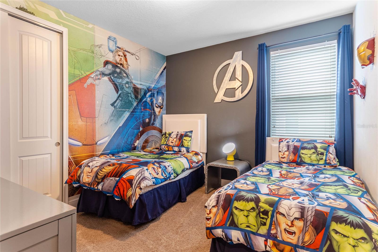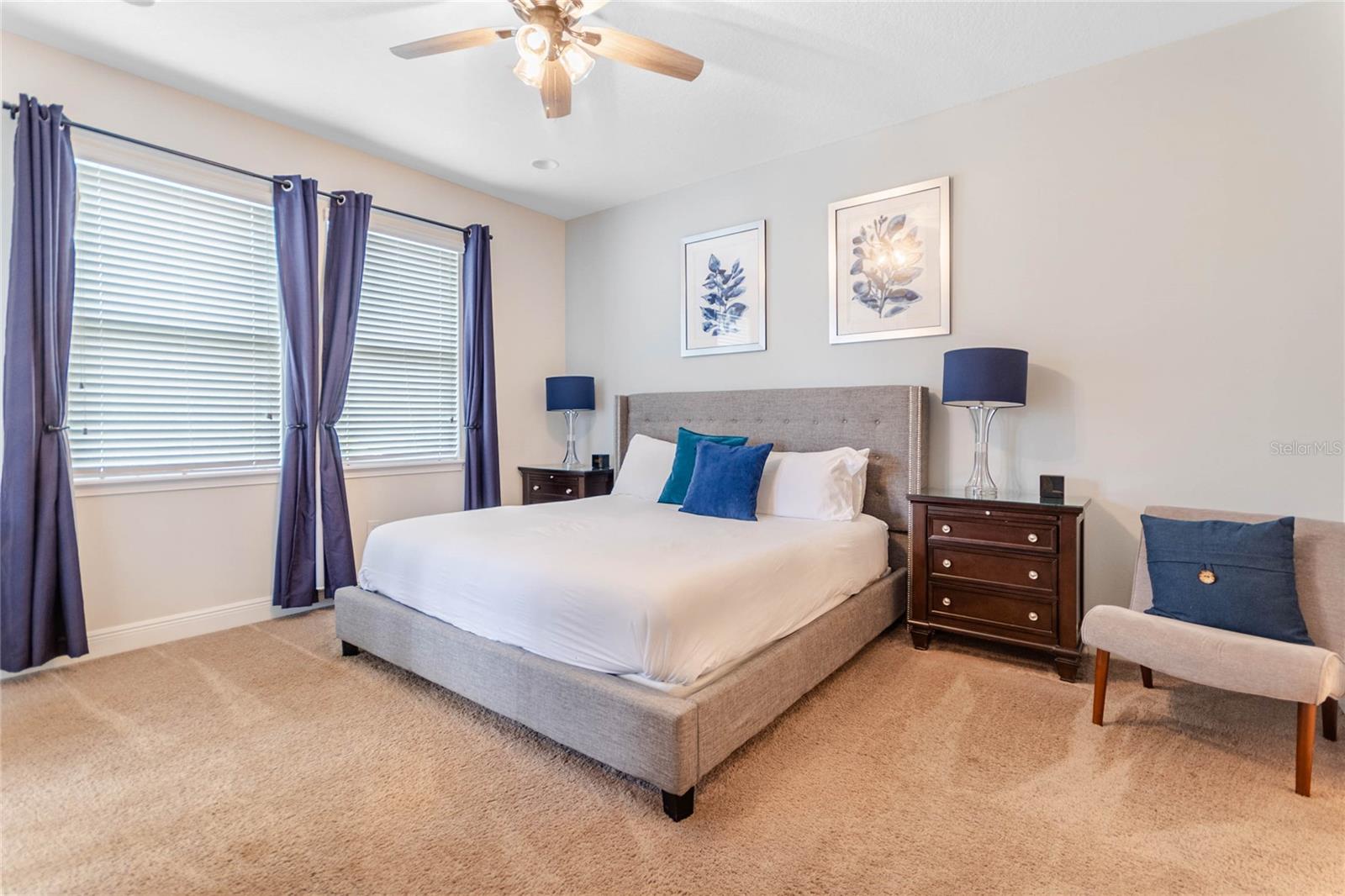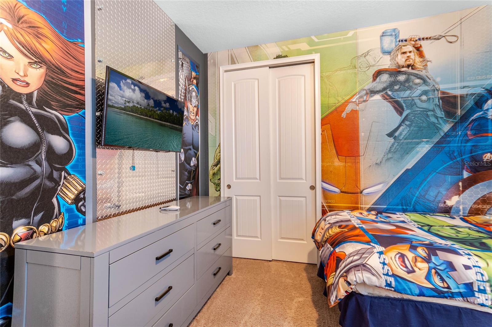 Located in the highly sought-after, guard-gated Encore Resort, just minutes from Walt Disney World and other world-class attractions, this luxurious two-story home offers the perfect combination of comfort, style, and functionality. Meticulously designed and maintained by the current owners, this home is a true vacation paradise, providing a serene escape and an unforgettable getaway experience. The home features dual master bedrooms, ideal for large families or multiple guests, ensuring ultimate privacy and comfort. With high-end décor and quality furniture throughout, all included in the list price, this fully furnished home is move-in or rental-ready. It boasts six bedrooms and six and a half bathrooms, with a ground-floor bedroom offering an ensuite bath and five additional bedrooms upstairs, each with adiacent bathrooms. All ages will delight in the imaginative themed rooms. The Snow Castle Room is a winter wonderland, complete with snow-covered trees and icicle canopies, while the Star Wars-themed media room, equipped with comfortable movie chairs, offers a unique space for family movie nights. The home comfortably sleeps up to 14, making it perfect for large groups or multi-family stays. Step outside to your sparkling private pool and spa, where you can relax under the Florida sun or unwind in the evening. The covered outdoor dining area and beautifully landscaped lawn create an ideal setting for outdoor entertaining. Additionally, the garage has been converted into a character-themed games room, ensuring endless fun for guests of all ages. Encore Resort is packed with outstanding amenities. The clubhouse, just a short walk away, includes a swimming pool, spa, fitness center, restaurant, and an on-site concierge service. For those who enjoy sports and recreation, the resort offers tennis courts, basketball courts, volleyball courts, and water slides. A convenient shuttle bus service to the theme parks and shopping areas, along with 24-hour concierge service, make this home the perfect destination for both personal vacations and short-term rentals. This property presents an exceptional opportunity for anyone looking for a vacation home or an investment property. With a proven rental history and its prime location near Orlando's top attractions, you can start earning rental income immediately. Whether you're looking for a family retreat or an income-generating property, this home offers everything you need for a luxurious and memorable experience. Don't miss out-schedule your showing today!