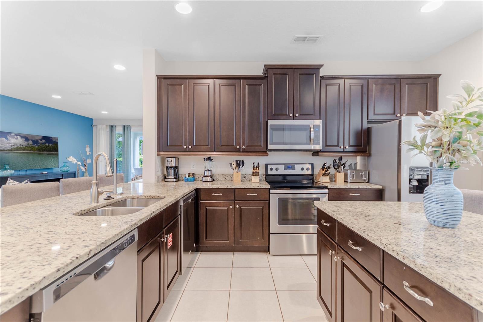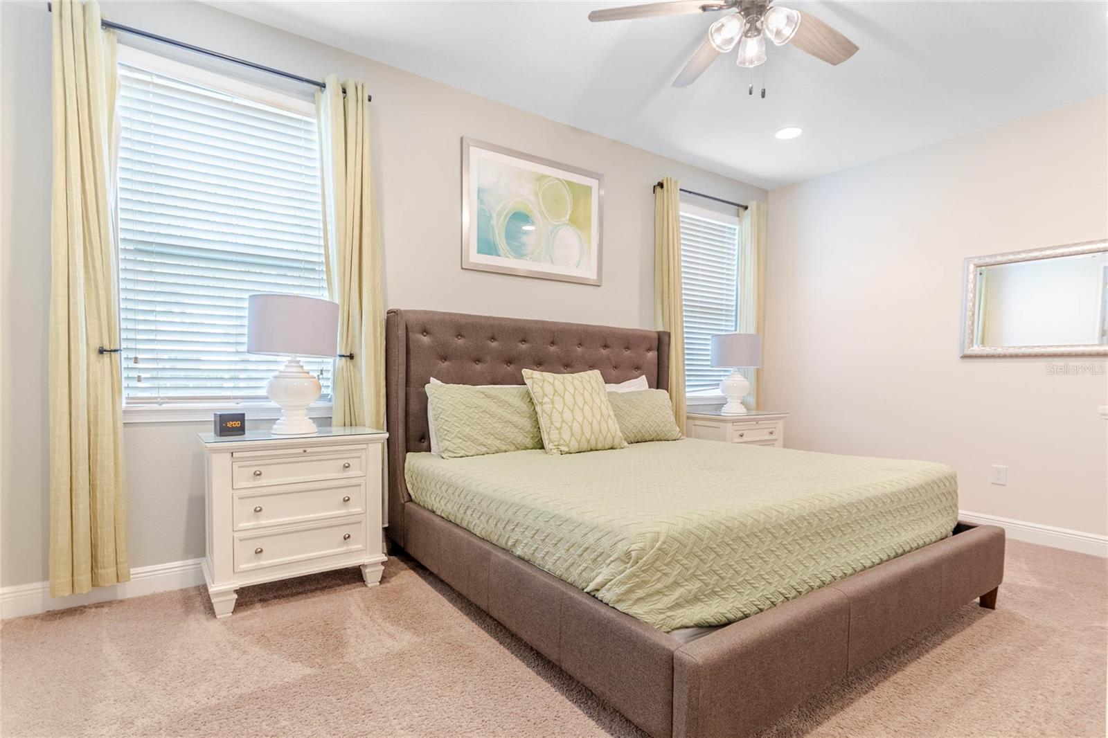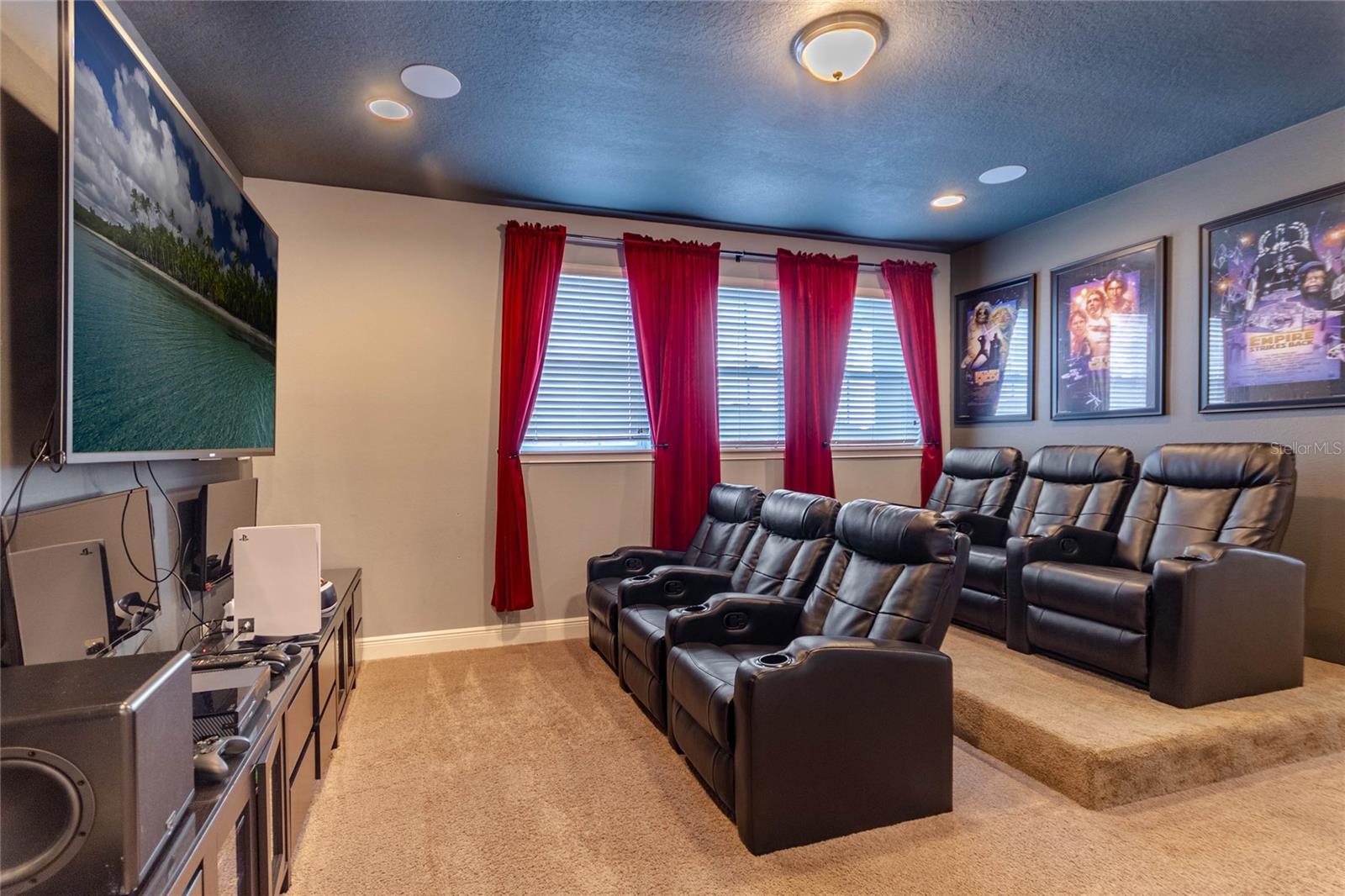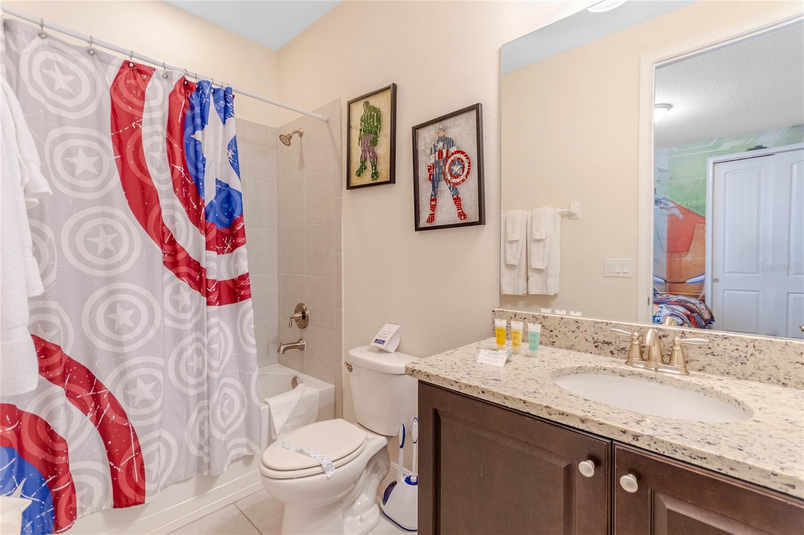 Located in the highly sought-after, guard-gated Encore Resort, just minutes from Walt Disney World and other world-class attractions, this luxurious two-story home offers the perfect combination of comfort, style, and functionality. Meticulously designed and maintained by the current owners, this home is a true vacation paradise, providing a serene escape and an unforgettable getaway experience. The home features dual master bedrooms, ideal for large families or multiple guests, ensuring ultimate privacy and comfort. With high-end décor and quality furniture throughout, all included in the list price, this fully furnished home is move-in or rental-ready. It boasts six bedrooms and six and a half bathrooms, with a ground-floor bedroom offering an ensuite bath and five additional bedrooms upstairs, each with adiacent bathrooms. All ages will delight in the imaginative themed rooms. The Snow Castle Room is a winter wonderland, complete with snow-covered trees and icicle canopies, while the Star Wars-themed media room, equipped with comfortable movie chairs, offers a unique space for family movie nights. The home comfortably sleeps up to 14, making it perfect for large groups or multi-family stays. Step outside to your sparkling private pool and spa, where you can relax under the Florida sun or unwind in the evening. The covered outdoor dining area and beautifully landscaped lawn create an ideal setting for outdoor entertaining. Additionally, the garage has been converted into a character-themed games room, ensuring endless fun for guests of all ages. Encore Resort is packed with outstanding amenities. The clubhouse, just a short walk away, includes a swimming pool, spa, fitness center, restaurant, and an on-site concierge service. For those who enjoy sports and recreation, the resort offers tennis courts, basketball courts, volleyball courts, and water slides. A convenient shuttle bus service to the theme parks and shopping areas, along with 24-hour concierge service, make this home the perfect destination for both personal vacations and short-term rentals. This property presents an exceptional opportunity for anyone looking for a vacation home or an investment property. With a proven rental history and its prime location near Orlando's top attractions, you can start earning rental income immediately. Whether you're looking for a family retreat or an income-generating property, this home offers everything you need for a luxurious and memorable experience. Don't miss out-schedule your showing today!