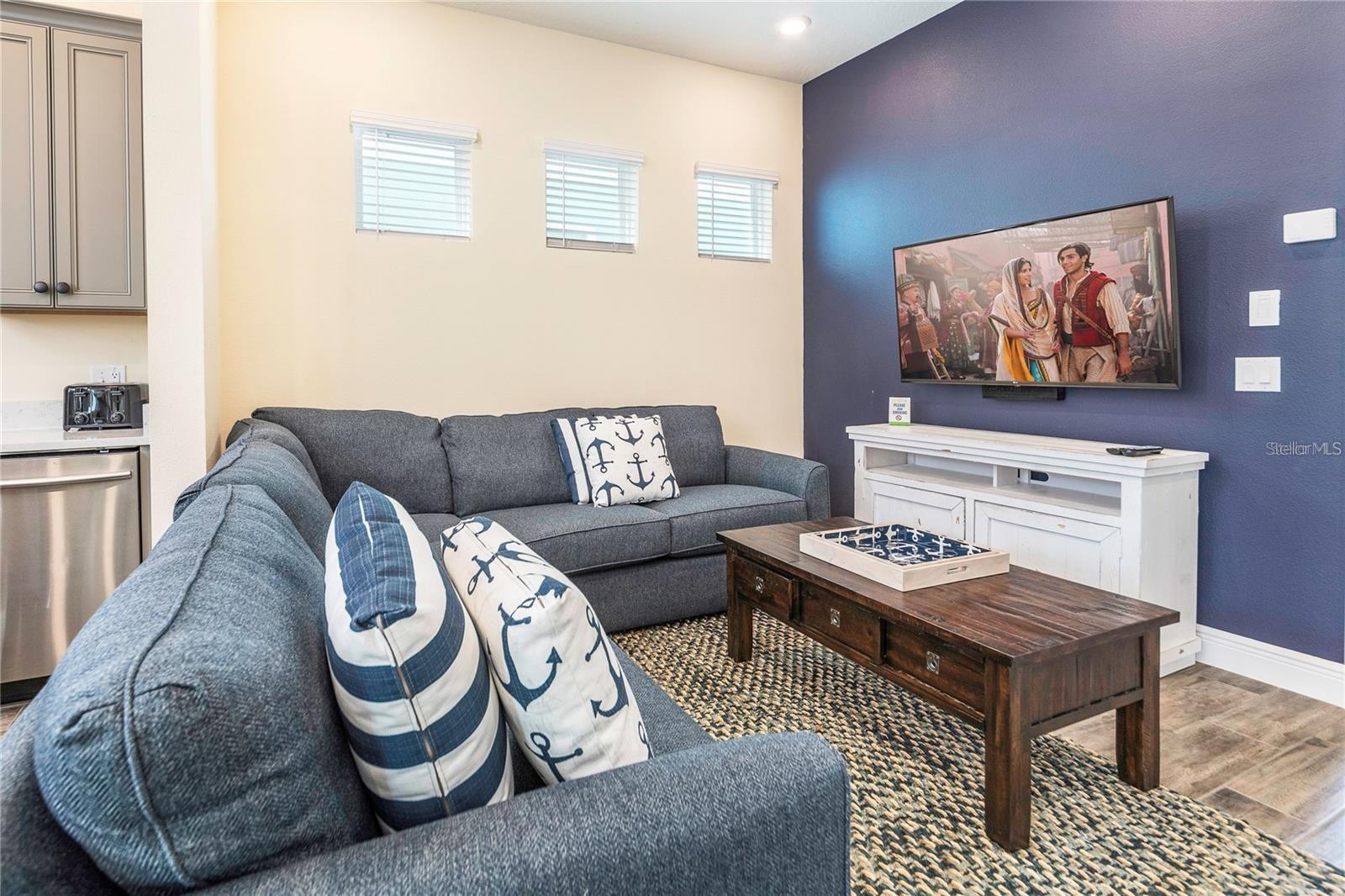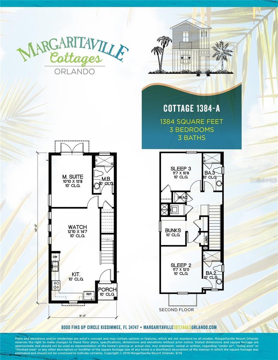Gorgeous Cottage at Margaritaville Resort Orlando in a PREMIUM CENTRAL Resort Location! This 1384-C Model has 3 Bedrooms, 3 Full Bathrooms and a Bonus Room. This 3/3 Cottage on Latitude Lane Features QUARTZ Countertops, Upgraded Appliances, "SON OF A SAILOR" Theme Wood-Look TILE Flooring, TANKLESS HOT WATER HEATER, side by side high-capacity WASHER and DRYER and a FUNCTIONAL BALCONY! The Primary Bedroom is Located on First Floor with En Suite Bathroom along with French Doors which lead to a beautifully landscaped Backyard Patio. The Living Room Features in-Ceiling Speakers that Connects to TV or Phone Via App! The Second Floor Features 2 Full Bedrooms, One with an En Suite Bathroom, a Bonus Room with a twin bed that can be used as a 4th bedroom, and a Second Full Bathroom. The Backyard has a Large Furnished Patio, Beautiful Foliage, Palm Trees and Shell Pathways, and your HOA takes care of EVERYTHING related to landscape upkeep! Please Note: ALL FURNISHINGS ARE INCLUDED IN THE LIST PRICE *MRO Approved Furniture/Housewares Package also Includes Blinds, Drapes, TVs, Artwork, Kitchen Necessities, Dishware, Linens, and So MUCH MORE! This is a UNIQUE, First of its Kind Resort with Multiple Pools, Gym, On-Site Water Park, Sunset Walk Restaurants, Bars, Live Music, Retail and More! Walk around the Resort and you will Absolutely Fall in Love! LOCATED MINUTES FROM ALL OF THE DISNEY PARKS! This Property is the definition of Turn- Key! Welcome to Paradise!!