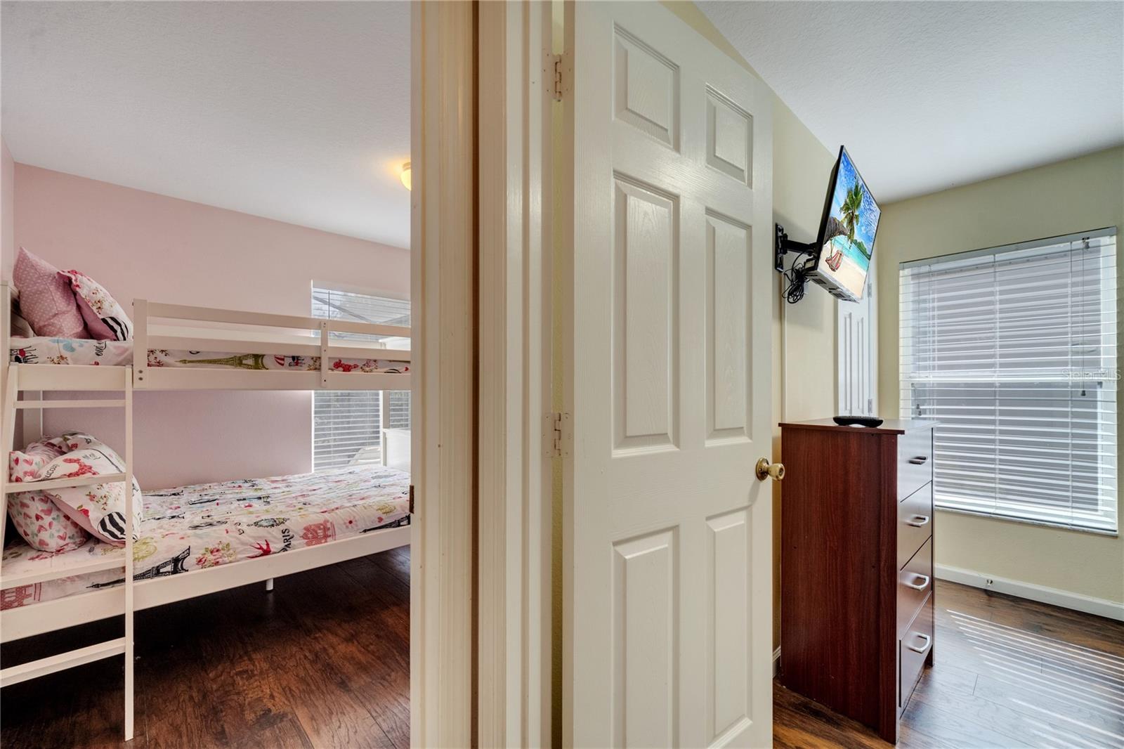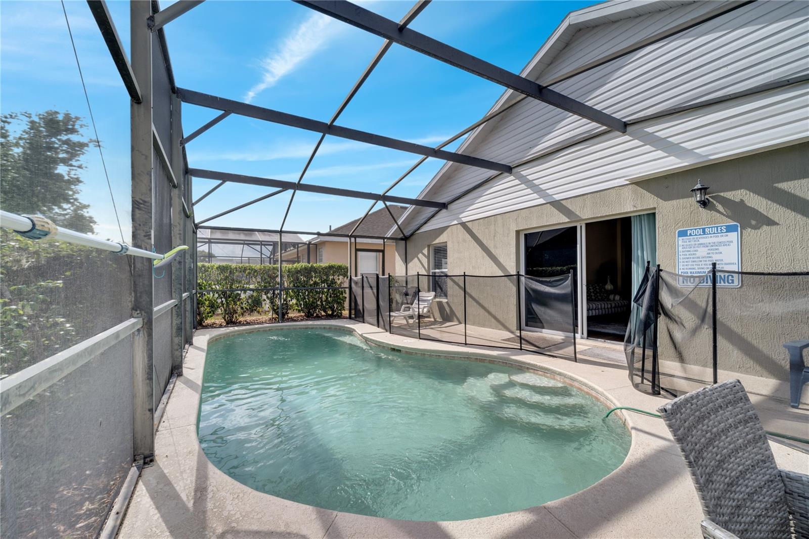 Welcome to your turnkey investment opportunity in the highly sought-after guard gated resort community of Windsor Palms! Just 3 miles from Disney, this fully furnished 4-bedroom, 3-bathroom pool home spans almost 1600 sq. ft. of living space offering the perfect combination of location and comfort—where every day feels like vacation! Step inside to find a light and bright kitchen equipped with stainless steel appliances, ample cabinetry, and a cozy eat-in area. The split floor plan offers added privacy, with the spacious primary suite featuring a walk-in closet and a private ensuite bath. Three additional bedrooms—including two with bunk beds—provide plenty of space for guests of all ages. The converted two-car garage has been transformed into a fun-filled game room, perfect for entertainment rain or shine—an added bonus that guests of all ages will enjoy! Outside, a private covered lanai overlooks the south facing sparkling pool, creating an inviting space for lounging or outdoor dining in the Florida sunshine. Key updates include a new roof (2017), A/C units (2017), and pool heater (2017). Windsor Palms offers resort-style amenities that embrace the Florida lifestyle! Enjoy a Tiki Bar, arcade, movie theater, state-of-the-art fitness center, heated pool and splash pad, playground, and sports courts for tennis, volleyball, and basketball. The clubhouse also features a sundry shop, and the HOA conveniently includes cable, trash, landscaping, and pest control. Whether you’re looking to expand your rental portfolio or enjoy a vacation home with excellent returns, this is your chance to own in one of Central Florida’s top resort communities.
