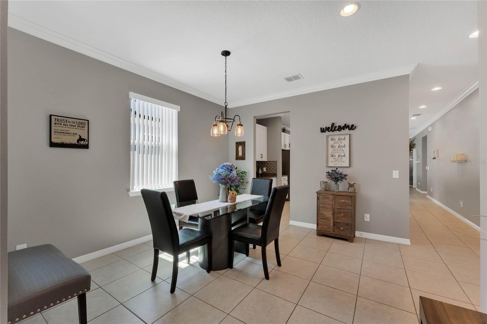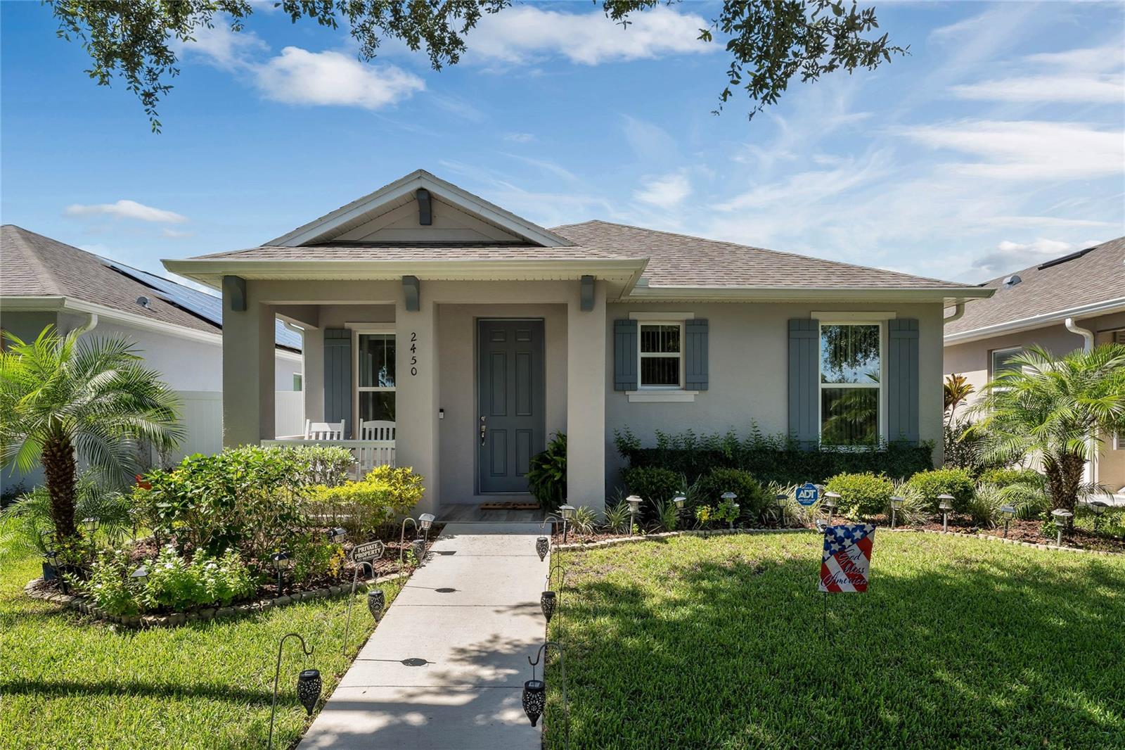 New Proposed CDD is 47% less offerring a savings of over $2,000 plus Seller is offering buyers a choice of customized incentives! Do not miss the opportunity to own one of the most meticulous homes in the community! Starting with the location from your tiled front porch with 2 rocking chairs admire the tranquility of the waterfront foundation. As you enter the home, you are greeted by extensive ceramic tile throughout, with no carpet. The open floor plan combined with the split bedroom provides a warm and comfortable flow. The absolutely gorgeous kitchen offers 42" White cabinets with granite counters along with a glass backsplash all complimented by stainless steel appliances. In addition, both a butlers pantry and a traditional pantry provide an abundance of shelves and storage. There is a formal dining room and family room with a designer accent wall, both with extensive crown molding. You will love the custom paint along with the upgraded lighting fixtures and ceiling fans in all the rooms and vertical blinds on all the windows.. Indoor laundry room with direct access to the 2 car attached garage in the rear also has a pull down aluminum ladder to the attic with flooring for additional storage. The exterior is just as well appointed with an oversized floor tiled, screen enclosed covered patio leading out to the brick paver yard/garden and brick lined walkway on each side of the home all enclosed with a vinyl privacy fence plus gutters around the entire home. New sod in the front and rear of the home along with new landscaping The community offers a clubhouse within walking distance with a fitness center, pool, splash pad for children, playground, park , soccer field, along with 2 dog parks. The community also has a lakefront walking path and is in the process of adding a pier for community use. Location benefits include access to shopping, restaurants along with The SunRail Station and Highway 192.