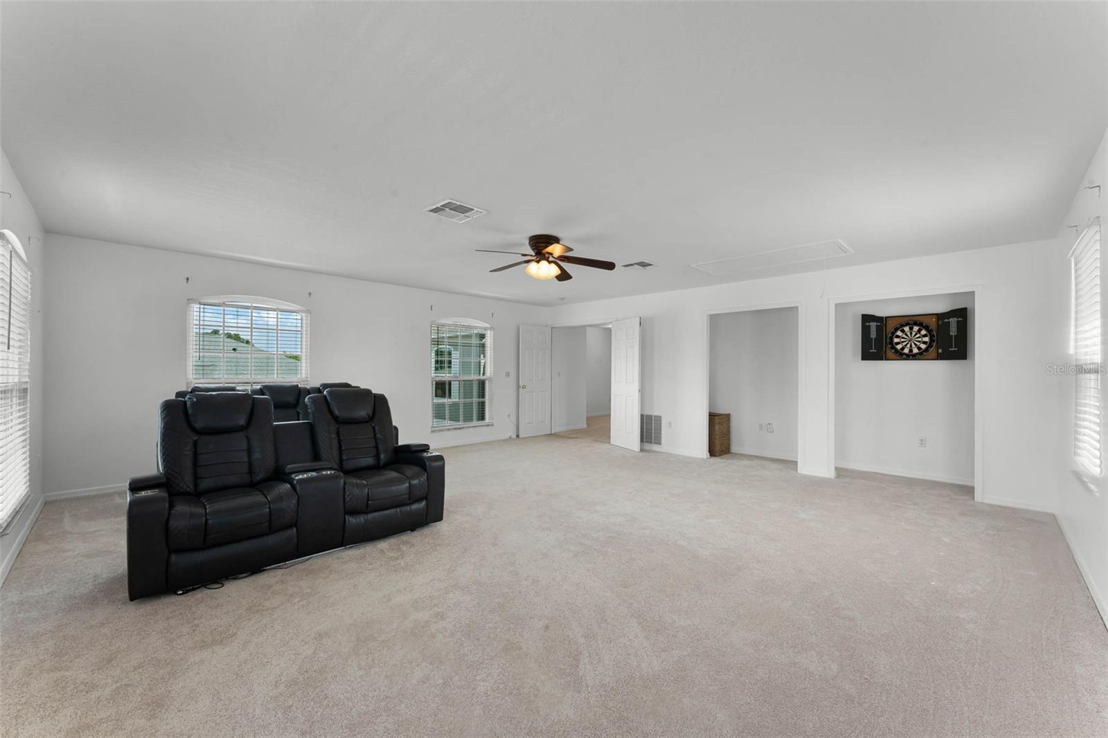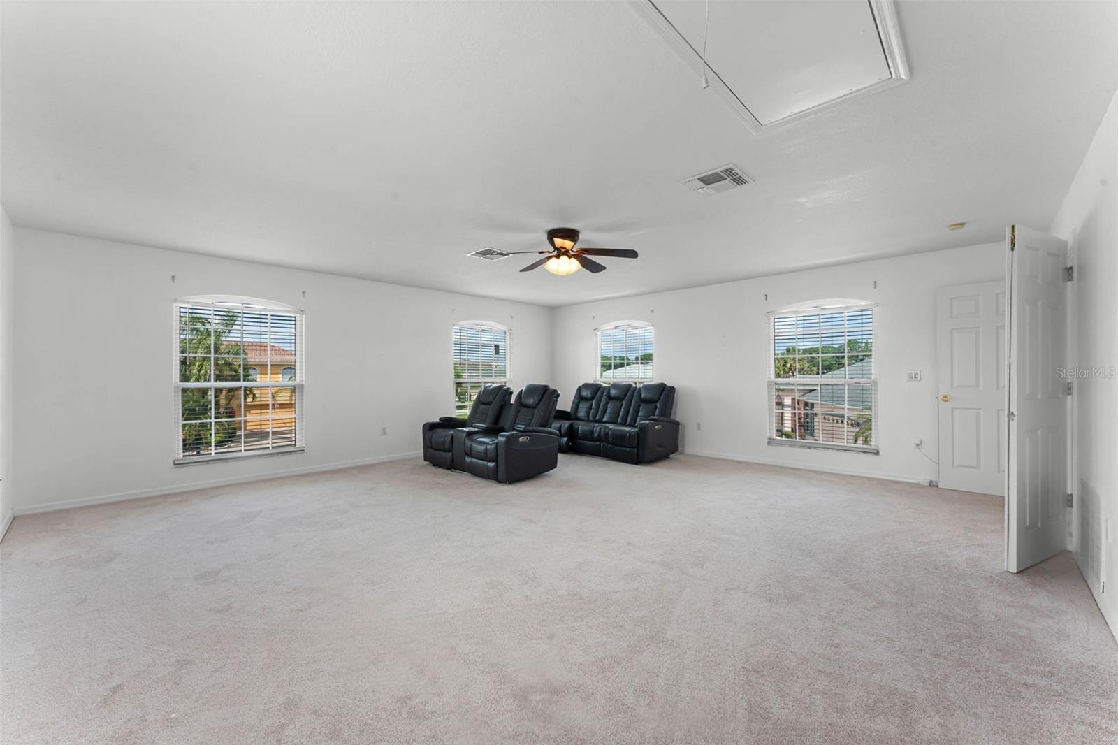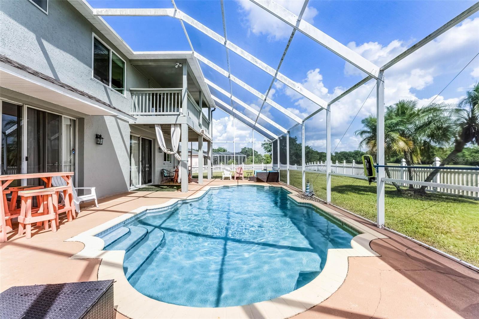 Live the dream with golf course views, waterfront scenery, and your own private pool. This 5BD/3BA, 3,897 SqFt home sits on a .28-acre fenced lot in the gated golf community of Remington, ideally located on the 13th hole. Enjoy a screened-in private pool, large bonus theater room, and an upstairs primary suite with a private deck overlooking the pool and golf course. Major updates include NEW ROOF (2023), NEW WATER HEATER (2023), NEWER A/C, and a recent water softener system. The open layout offers spacious living areas, a grand entry with chandelier, and multiple flex spaces perfect for entertaining or relaxing. Remington features resort-style amenities including golf, tennis, community pool, and walking trails. Conveniently located near the Florida Turnpike, Lake Nona Medical City, shopping, and Disney.