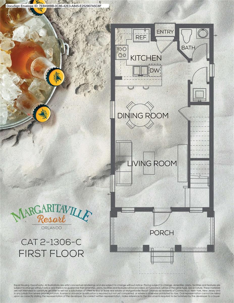 RARE AND UNIQUE 1306-C CORNER LOT Cottage with 2 Bedrooms, 2.5 Bathrooms and a HOT TUB in MARGARITAVILLE RESORT ORLANDO! PREMIUM PHASE 1 LOCATION Just Steps Away From All the Resort Amenities! This is a Wonderful Community to Live in Full Time, Own a Second Home or Invest in a Vacation Rental Property! You Cannot Get any Closer than This! High-End ETHAN ALLEN Furnishings and Housewares INCLUDED IN LIST PRICE (Original Cost $48k)! UPGRADED 4 ZONE IN CEILING SPEAKER SYSTEM in Living Room, Both Bedrooms and Back Patio! This Amazing Home Features Both En Suite Bedrooms with King Beds Upstairs, One with Balcony Access. Upgraded "IN PARADISE" Wood Tile Floors, QUARTZ Countertops with Breakfast Bar in Kitchen! Large Backyard with Beautiful Shell Pathways and Palm Trees! List Price INCLUDES Furniture/Houseware Package. Includes Blinds, Drapes, TVs, Artwork, Kitchen Necessities, Dishware, Linens, and so MUCH MORE! Unique First of its Kind Resort with Multiple Pools, Gym, On-Site Water Park, Sunset Walk Restaurants Bars, Live Music, Retail, Live Music and More! LOCATED MINUTES FROM DISNEY! It's A Lifestyle Choice For Those Who Want To Experience The Best Of Florida Living, Where Every Day Feels Like A Vacation!