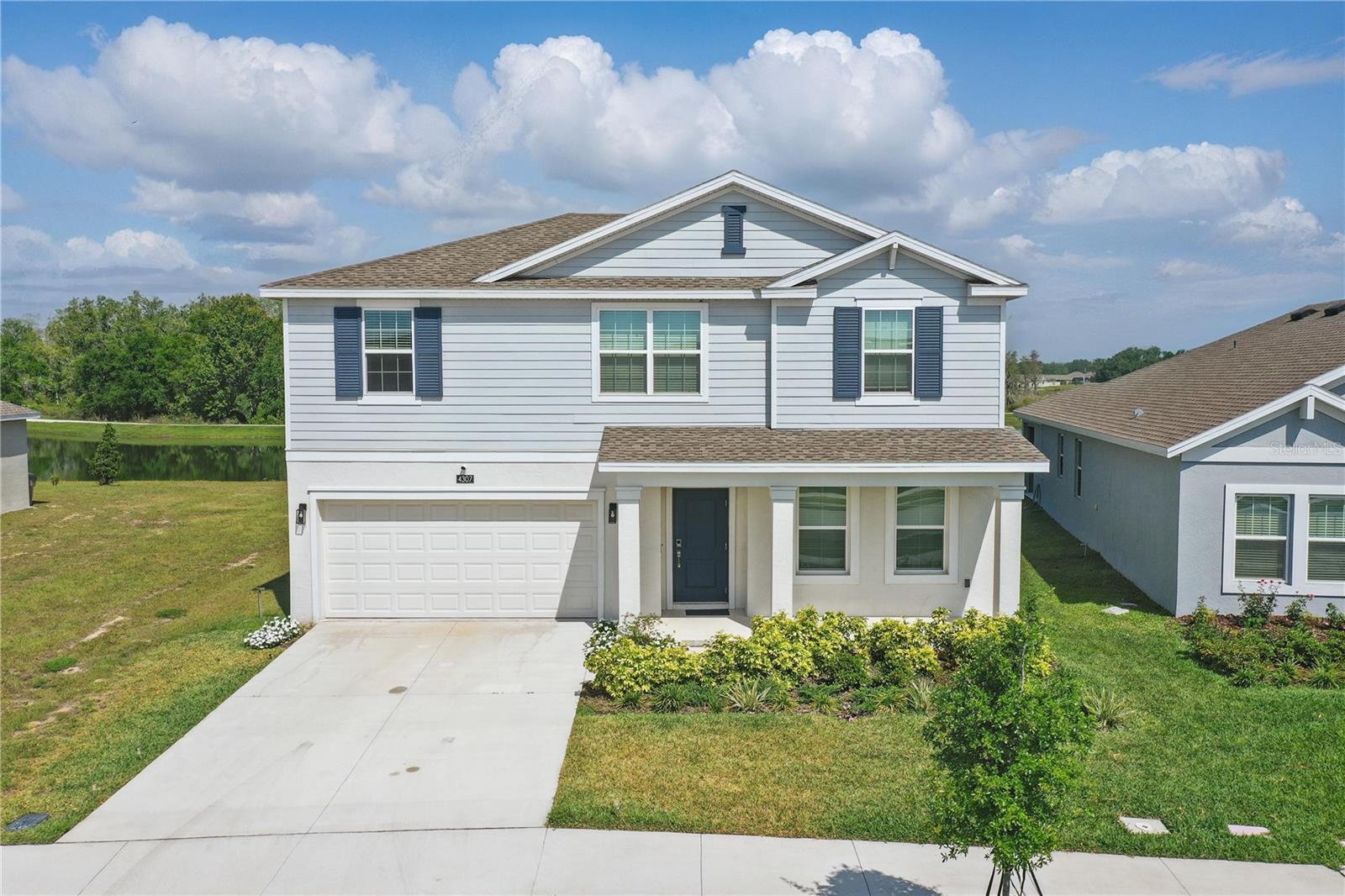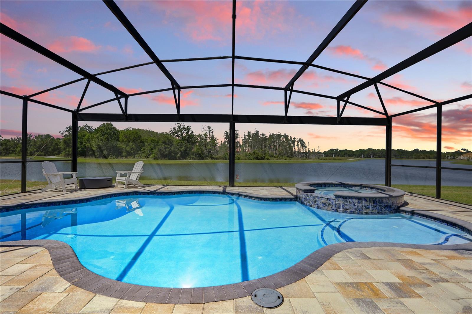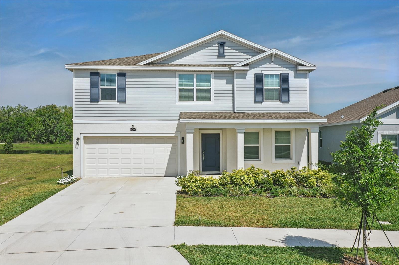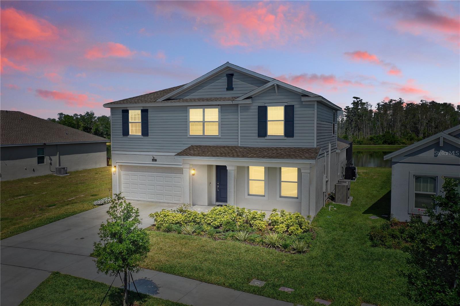 Welcome to this exquisite 5-bedroom, 2.5-bathroom contemporary home located in the highly desirable Storey Creek community of Kissimmee, Florida. Built in 2024 and very lightly used as a second home, this nearly 2,900 sq ft residence sits on one of the most premium lots in the neighborhood—offering unparalleled lake and conservation views that deliver breathtaking west-facing sunsets right from your backyard. The home’s crown jewel is the custom-built, fully enclosed pool and spa area measuring almost 1100 sq. ft., a $110,000 investment designed for both luxury and convenience. Enjoy features like a pool heater, spa jets, ambient lighting, and a WiFi adapter for effortless control from your smartphone. All of this is complemented by the unbeatable views from the backyard, which is rare for this community. Inside, the open-concept layout offers versatile living with a first-floor master suite, laundry room, a flex space ideal for an office or formal sitting area, an open concept space combining the kitchen dining room and living room, and an upstairs loft perfect for a media room or play area. You'll find 42" white cabinets in the kitchen, complemented with white cabinets in the bathrooms. You'll also enjoy the quartz countertops throughout the home, creating a clean, modern aesthetic. What truly sets this property apart is its unique lot positioning. With an easement between this home and the neighboring property to the left, you’ll enjoy enhanced privacy—an uncommon perk in this area. The tranquil lakefront setting with protected conservation land behind the home provides not only unmatched scenery but also peace and seclusion. Storey Creek offers a resort-style lifestyle with a brand-new clubhouse featuring a fitness center, entertainment space, community pool, and sundeck. Additional amenities include basketball, tennis, and soccer courts, walking trails, a dog park, and multiple playgrounds—all just steps from your front door. Conveniently located next to Pleasant Hill Elementary and Horizon Middle School, and within easy driving distance to major attractions: 30 minutes to Disney, 40 minutes to Orlando International Airport, 15 minutes to downtown Kissimmee, and just 20 minutes to Lakefront Park and historic downtown Kissimmee. This is more than a home—it’s a lifestyle upgrade. With its rare lot, spectacular views, and state-of-the-art outdoor living space, this property is truly one-of-a-kind in Storey Creek. Don’t miss your opportunity to own a slice of Florida paradise.
