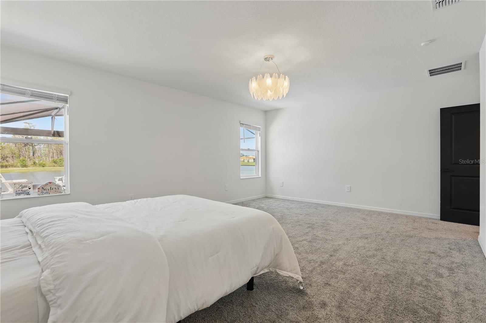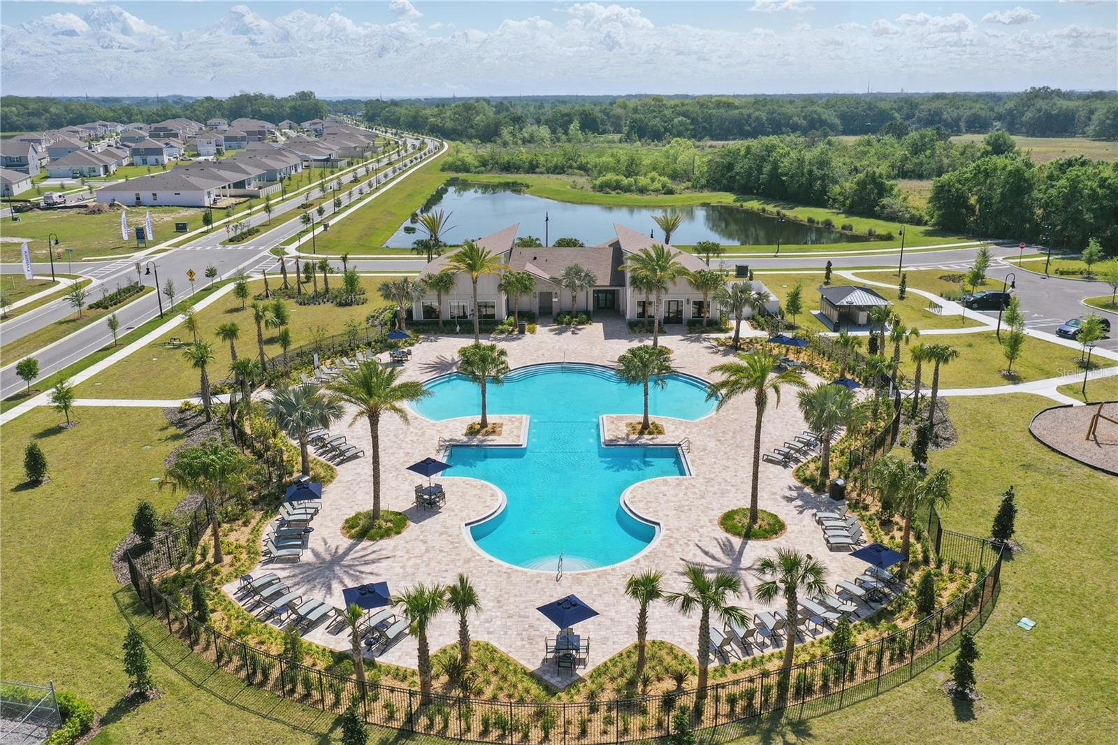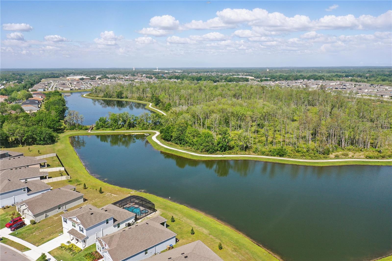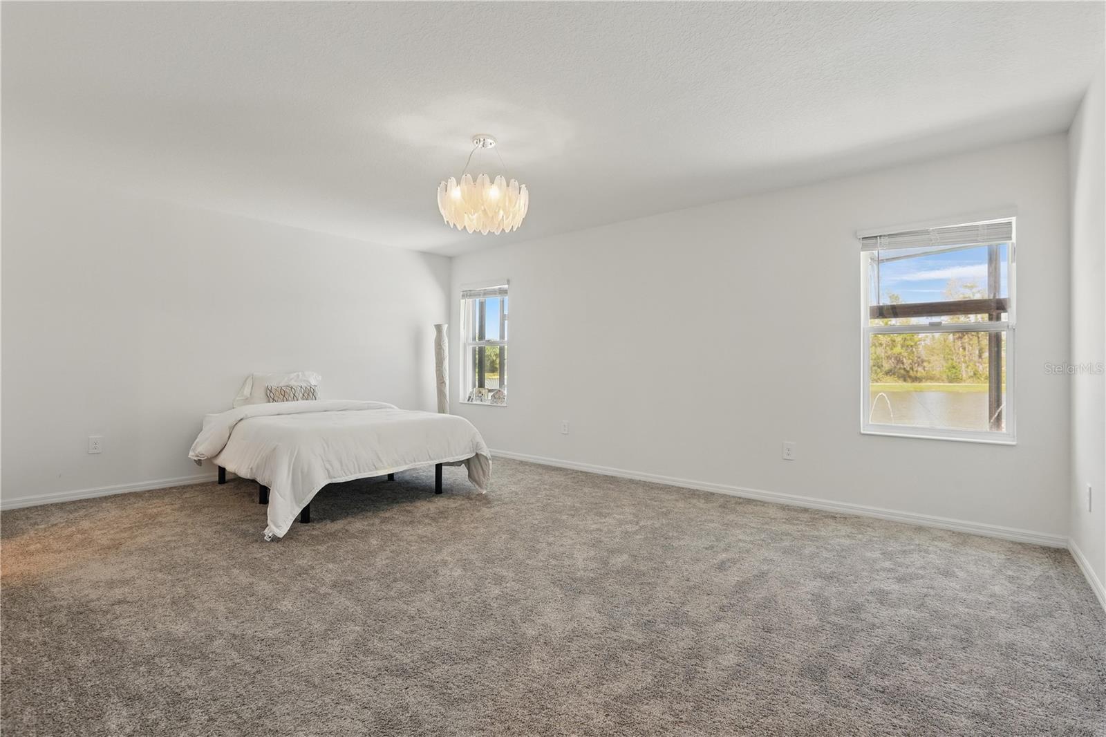 Welcome to this exquisite 5-bedroom, 2.5-bathroom contemporary home located in the highly desirable Storey Creek community of Kissimmee, Florida. Built in 2024 and very lightly used as a second home, this nearly 2,900 sq ft residence sits on one of the most premium lots in the neighborhood—offering unparalleled lake and conservation views that deliver breathtaking west-facing sunsets right from your backyard. The home’s crown jewel is the custom-built, fully enclosed pool and spa area measuring almost 1100 sq. ft., a $110,000 investment designed for both luxury and convenience. Enjoy features like a pool heater, spa jets, ambient lighting, and a WiFi adapter for effortless control from your smartphone. All of this is complemented by the unbeatable views from the backyard, which is rare for this community. Inside, the open-concept layout offers versatile living with a first-floor master suite, laundry room, a flex space ideal for an office or formal sitting area, an open concept space combining the kitchen dining room and living room, and an upstairs loft perfect for a media room or play area. You'll find 42" white cabinets in the kitchen, complemented with white cabinets in the bathrooms. You'll also enjoy the quartz countertops throughout the home, creating a clean, modern aesthetic. What truly sets this property apart is its unique lot positioning. With an easement between this home and the neighboring property to the left, you’ll enjoy enhanced privacy—an uncommon perk in this area. The tranquil lakefront setting with protected conservation land behind the home provides not only unmatched scenery but also peace and seclusion. Storey Creek offers a resort-style lifestyle with a brand-new clubhouse featuring a fitness center, entertainment space, community pool, and sundeck. Additional amenities include basketball, tennis, and soccer courts, walking trails, a dog park, and multiple playgrounds—all just steps from your front door. Conveniently located next to Pleasant Hill Elementary and Horizon Middle School, and within easy driving distance to major attractions: 30 minutes to Disney, 40 minutes to Orlando International Airport, 15 minutes to downtown Kissimmee, and just 20 minutes to Lakefront Park and historic downtown Kissimmee. This is more than a home—it’s a lifestyle upgrade. With its rare lot, spectacular views, and state-of-the-art outdoor living space, this property is truly one-of-a-kind in Storey Creek. Don’t miss your opportunity to own a slice of Florida paradise.