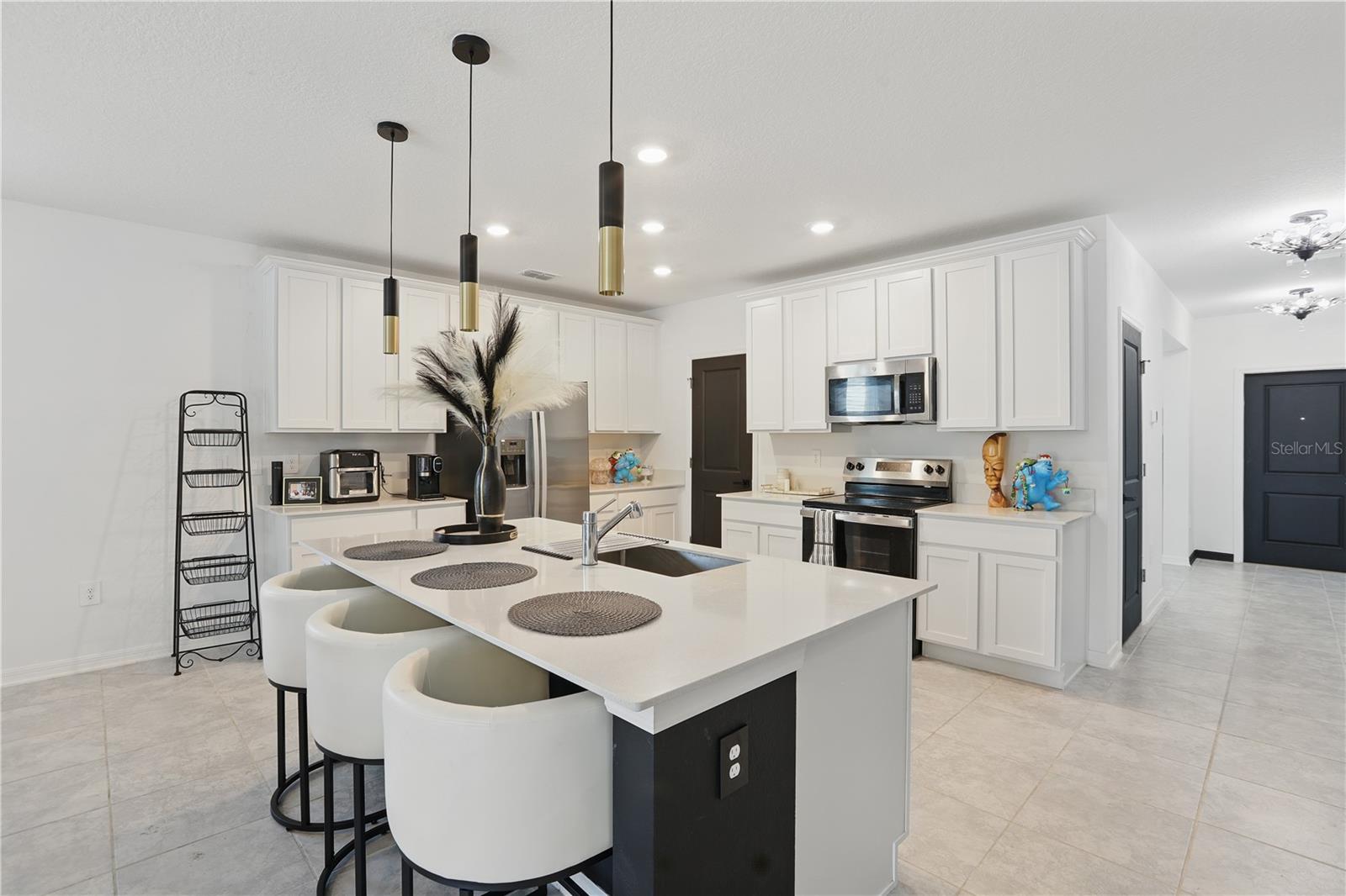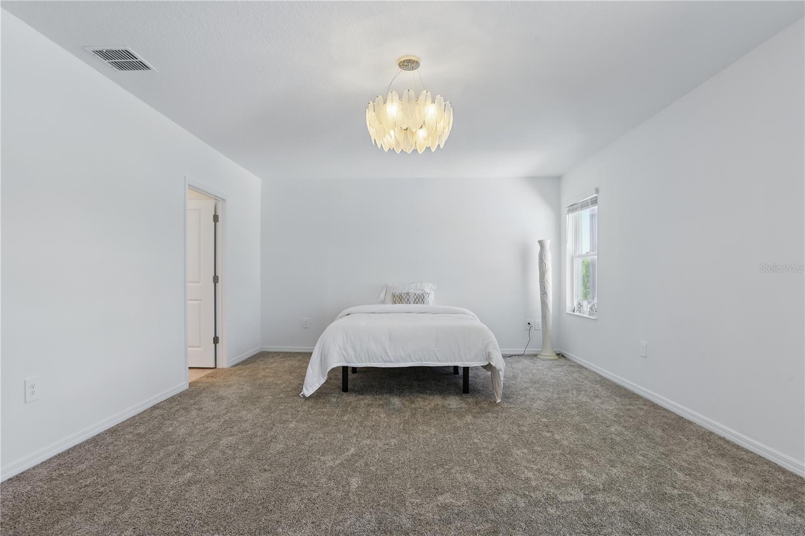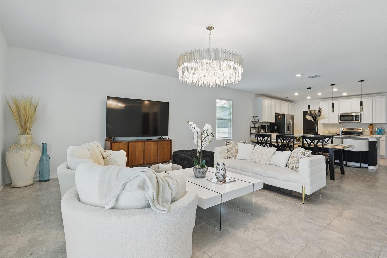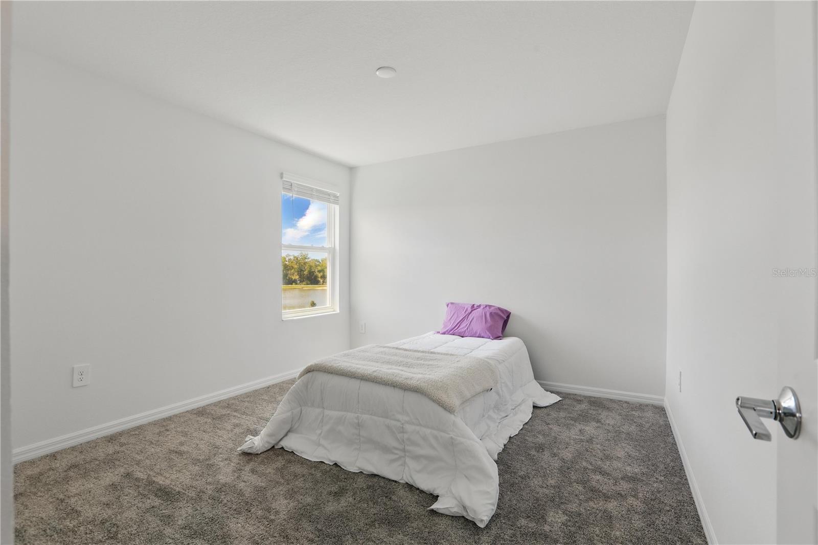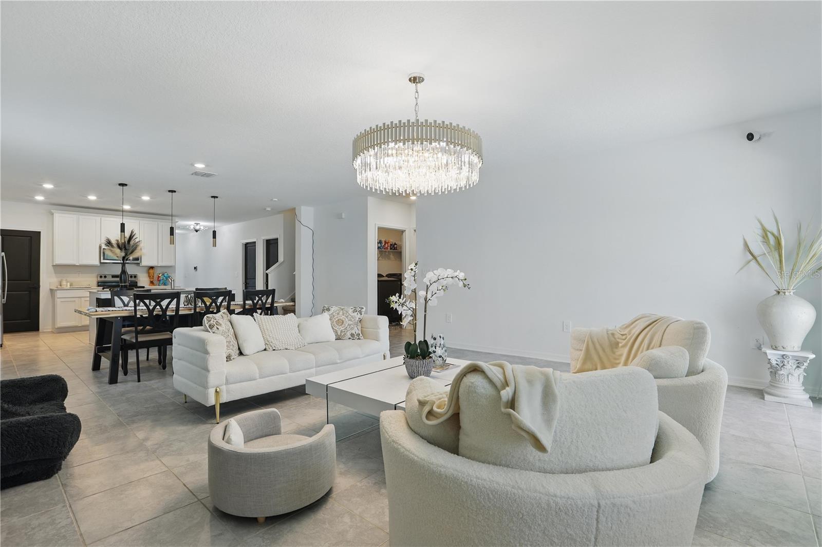 Welcome to this exquisite 5-bedroom, 2.5-bathroom contemporary home located in the highly desirable Storey Creek community of Kissimmee, Florida. Built in 2024 and very lightly used as a second home, this nearly 2,900 sq ft residence sits on one of the most premium lots in the neighborhood—offering unparalleled lake and conservation views that deliver breathtaking west-facing sunsets right from your backyard. The home’s crown jewel is the custom-built, fully enclosed pool and spa area measuring almost 1100 sq. ft., a $110,000 investment designed for both luxury and convenience. Enjoy features like a pool heater, spa jets, ambient lighting, and a WiFi adapter for effortless control from your smartphone. All of this is complemented by the unbeatable views from the backyard, which is rare for this community. Inside, the open-concept layout offers versatile living with a first-floor master suite, laundry room, a flex space ideal for an office or formal sitting area, an open concept space combining the kitchen dining room and living room, and an upstairs loft perfect for a media room or play area. You'll find 42" white cabinets in the kitchen, complemented with white cabinets in the bathrooms. You'll also enjoy the quartz countertops throughout the home, creating a clean, modern aesthetic. What truly sets this property apart is its unique lot positioning. With an easement between this home and the neighboring property to the left, you’ll enjoy enhanced privacy—an uncommon perk in this area. The tranquil lakefront setting with protected conservation land behind the home provides not only unmatched scenery but also peace and seclusion. Storey Creek offers a resort-style lifestyle with a brand-new clubhouse featuring a fitness center, entertainment space, community pool, and sundeck. Additional amenities include basketball, tennis, and soccer courts, walking trails, a dog park, and multiple playgrounds—all just steps from your front door. Conveniently located next to Pleasant Hill Elementary and Horizon Middle School, and within easy driving distance to major attractions: 30 minutes to Disney, 40 minutes to Orlando International Airport, 15 minutes to downtown Kissimmee, and just 20 minutes to Lakefront Park and historic downtown Kissimmee. This is more than a home—it’s a lifestyle upgrade. With its rare lot, spectacular views, and state-of-the-art outdoor living space, this property is truly one-of-a-kind in Storey Creek. Don’t miss your opportunity to own a slice of Florida paradise.