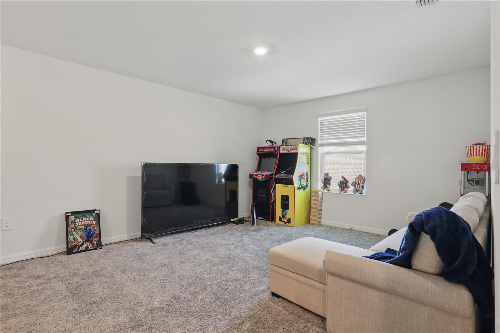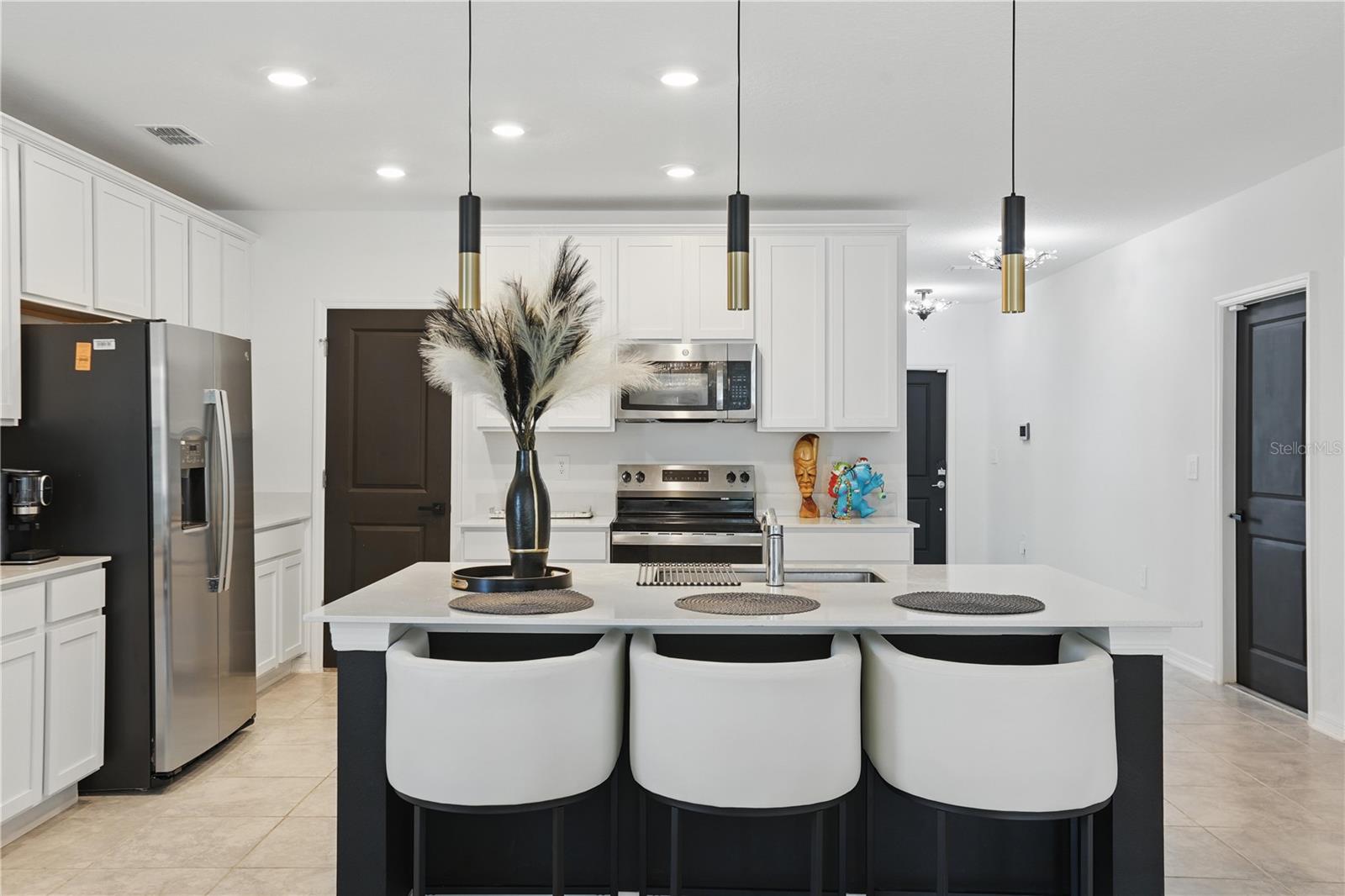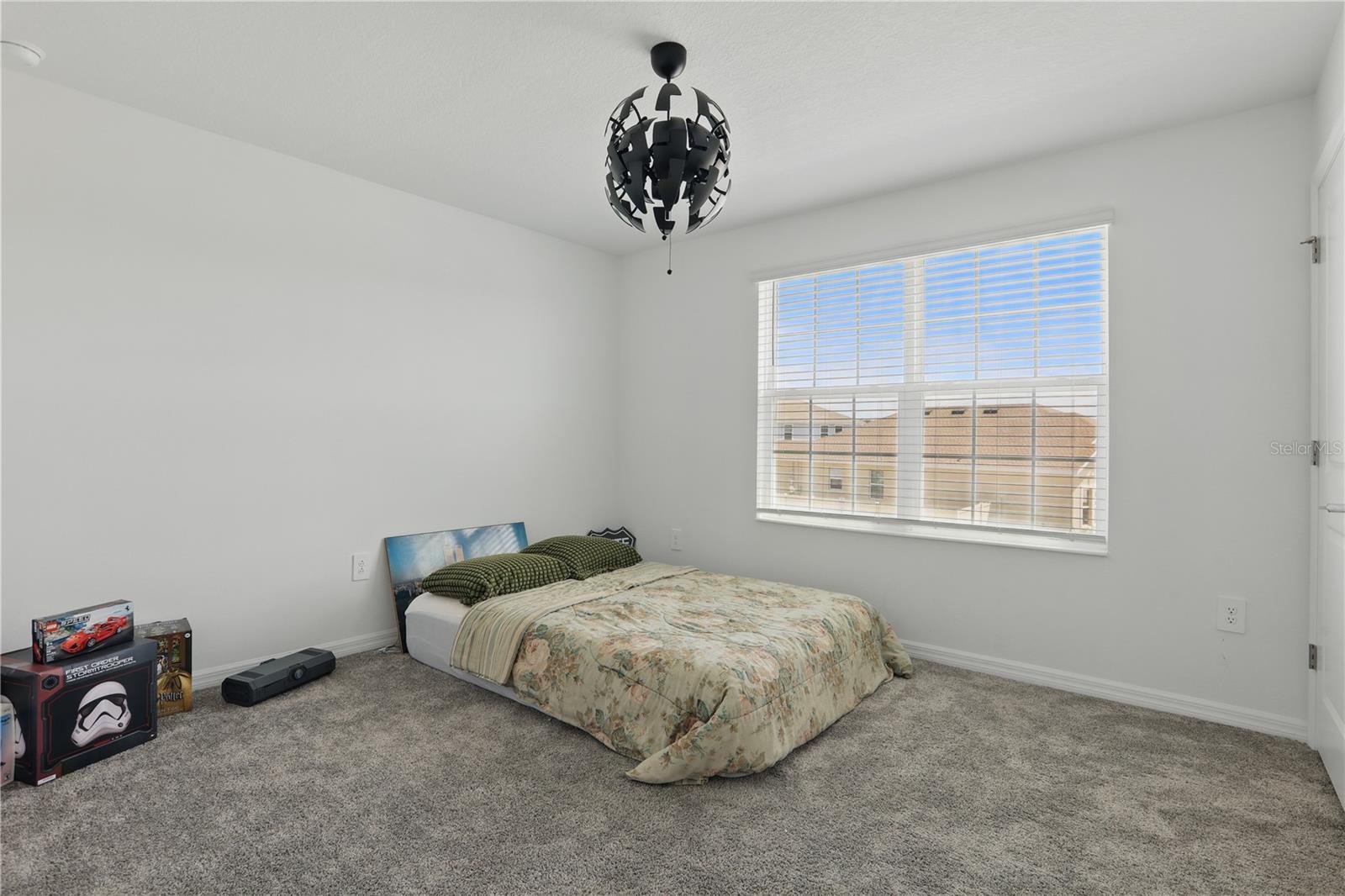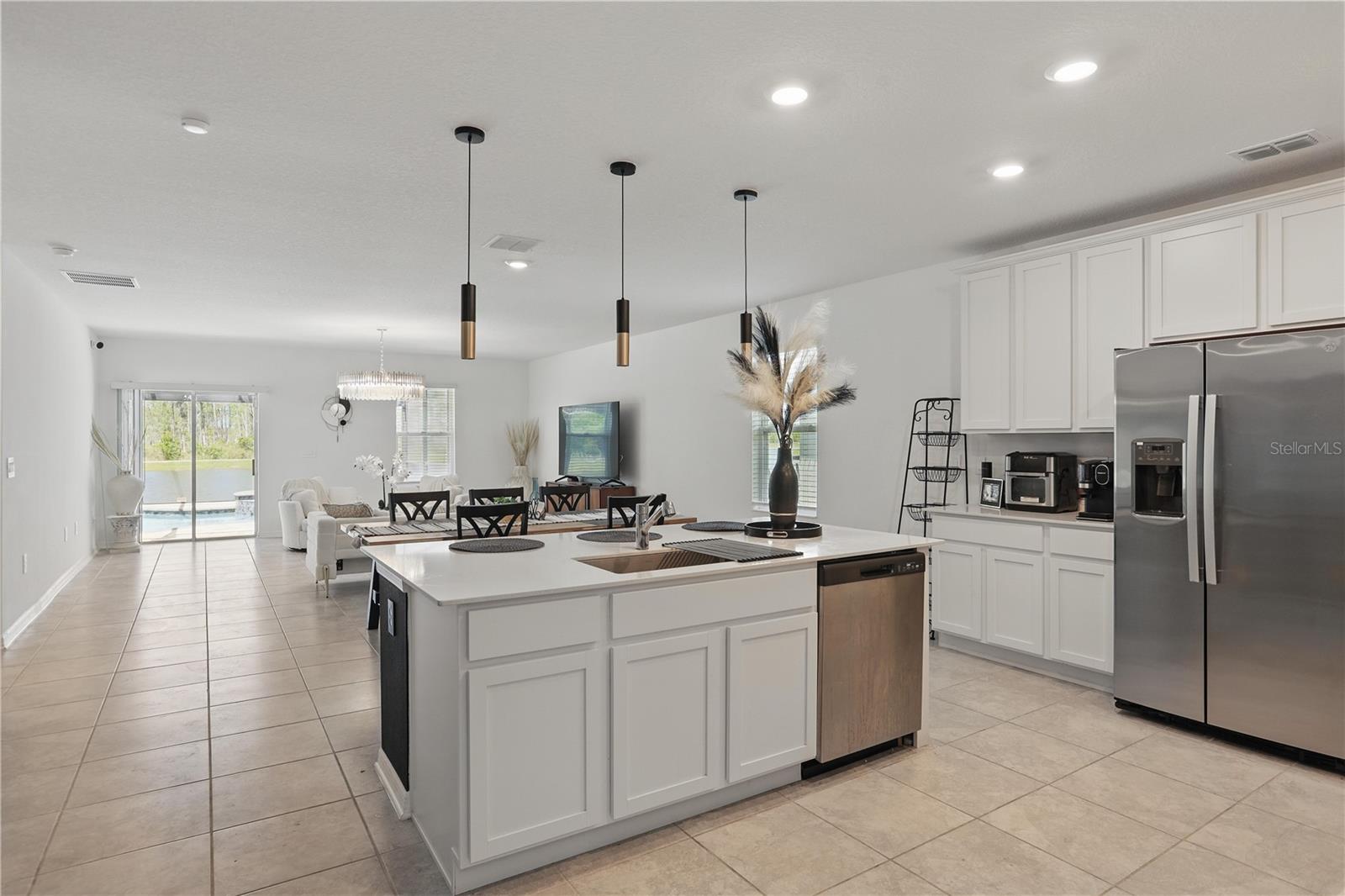 Welcome to this exquisite 5-bedroom, 2.5-bathroom contemporary home located in the highly desirable Storey Creek community of Kissimmee, Florida. Built in 2024 and very lightly used as a second home, this nearly 2,900 sq ft residence sits on one of the most premium lots in the neighborhood—offering unparalleled lake and conservation views that deliver breathtaking west-facing sunsets right from your backyard. The home’s crown jewel is the custom-built, fully enclosed pool and spa area measuring almost 1100 sq. ft., a $110,000 investment designed for both luxury and convenience. Enjoy features like a pool heater, spa jets, ambient lighting, and a WiFi adapter for effortless control from your smartphone. All of this is complemented by the unbeatable views from the backyard, which is rare for this community. Inside, the open-concept layout offers versatile living with a first-floor master suite, laundry room, a flex space ideal for an office or formal sitting area, an open concept space combining the kitchen dining room and living room, and an upstairs loft perfect for a media room or play area. You'll find 42" white cabinets in the kitchen, complemented with white cabinets in the bathrooms. You'll also enjoy the quartz countertops throughout the home, creating a clean, modern aesthetic. What truly sets this property apart is its unique lot positioning. With an easement between this home and the neighboring property to the left, you’ll enjoy enhanced privacy—an uncommon perk in this area. The tranquil lakefront setting with protected conservation land behind the home provides not only unmatched scenery but also peace and seclusion. Storey Creek offers a resort-style lifestyle with a brand-new clubhouse featuring a fitness center, entertainment space, community pool, and sundeck. Additional amenities include basketball, tennis, and soccer courts, walking trails, a dog park, and multiple playgrounds—all just steps from your front door. Conveniently located next to Pleasant Hill Elementary and Horizon Middle School, and within easy driving distance to major attractions: 30 minutes to Disney, 40 minutes to Orlando International Airport, 15 minutes to downtown Kissimmee, and just 20 minutes to Lakefront Park and historic downtown Kissimmee. This is more than a home—it’s a lifestyle upgrade. With its rare lot, spectacular views, and state-of-the-art outdoor living space, this property is truly one-of-a-kind in Storey Creek. Don’t miss your opportunity to own a slice of Florida paradise.
