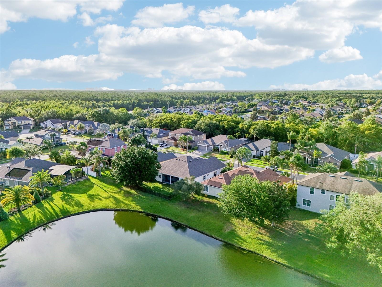 ***BACK ON THE MARKET - to NO fault of the Sellers. Passed inspection and appraisal contingencies - Buyer could not obtain financing*** MUST SEE POND VIEW HOME! Welcome to a stunning 4-bedroom, 3-bathroom home located in a highly coveted gated community. Perfectly located just minutes away from the Loop, with its fantastic shopping and dining options, this home offers both comfort and convenience. Step inside a freshly painted and spacious entryway that opens into the large family room, the dining room opens into the oversized kitchen ideal for hosting and entertaining. A flex room, perfect for use as an office, playroom, or cozy den, adds versatility to the layout. The split-bedroom design ensures privacy and comfort for all residents. Enjoy the charm of vaulted ceilings, abundant natural light streaming through windows, and a sliding glass door that leads to the screened-in lanai. From here, you'll admire tranquil views of the pond and a fenced backyard—your own personal retreat. This community boasts low HOA fees and resort-style amenities, including a sparkling pool, playground, beach volleyball court, and scenic biking and walking trails. Plus, you’ll find elementary, middle, and high schools just a short walk or drive away. Situated less than 15 minutes from Disney World, and surrounded by endless shopping, dining, and entertainment, this home is perfectly situated near Hunters Creek—a prime location with everything you need right at your fingertips. Recent upgrades include Brand New Water Heater (August 2025), roof (April 2022), HVAC system (May 2021), refrigerator (May 2022). With fresh interior paint completed in (April 2025). Don’t let this incredible opportunity pass you by—schedule your private showing today!
