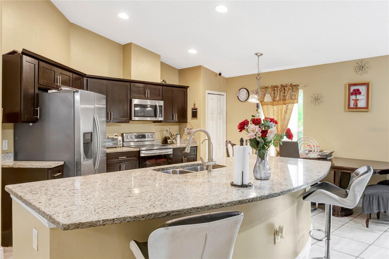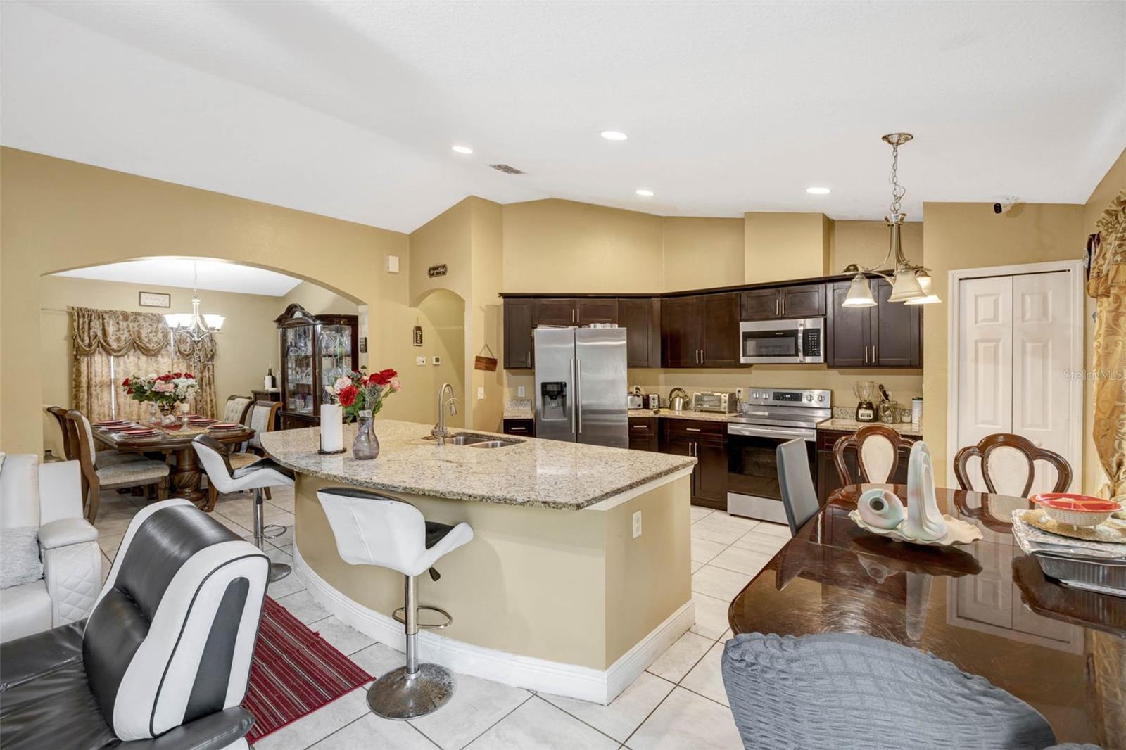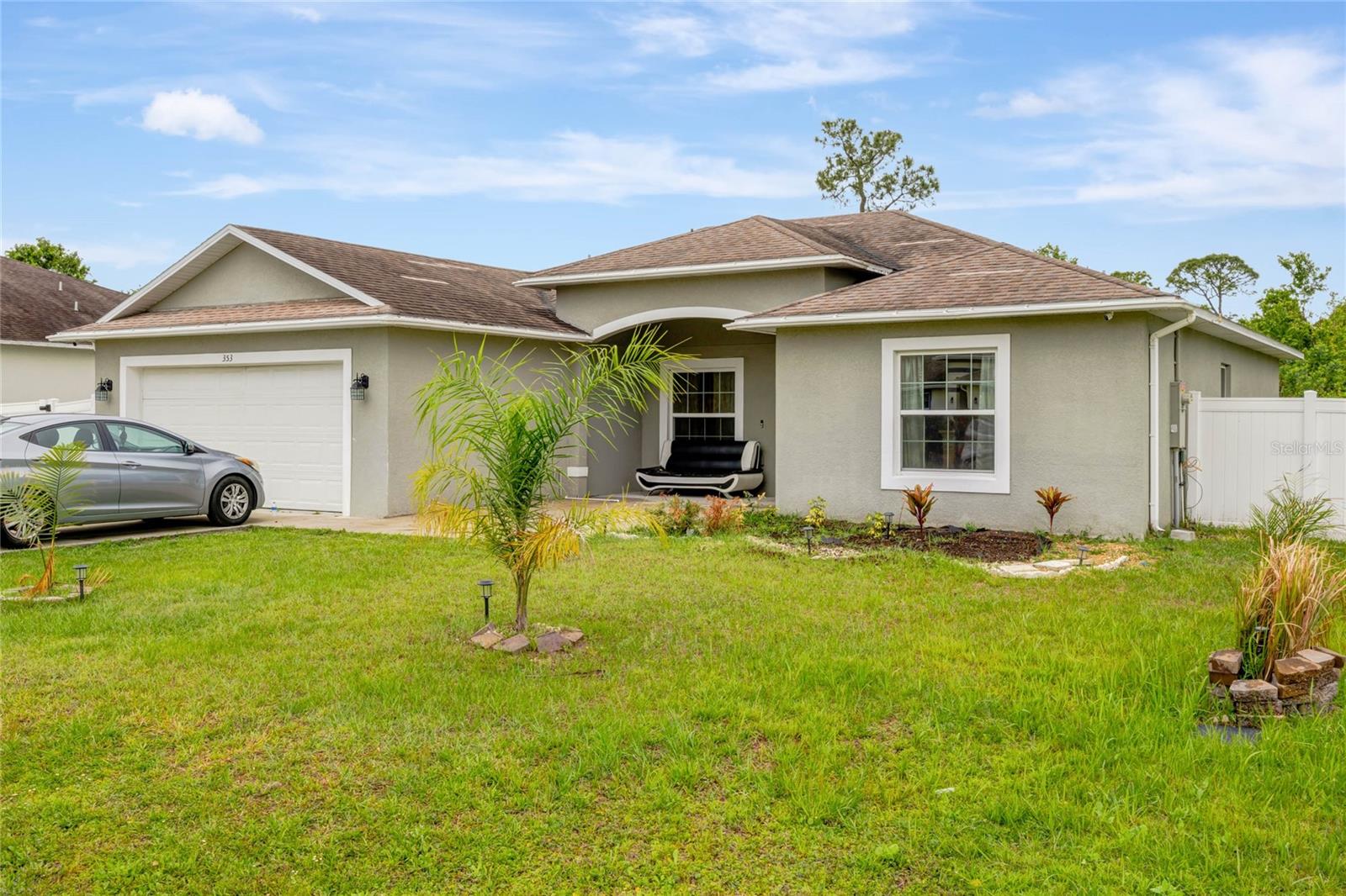 Definitely your chance to own a four bed two bath home in Poinciana with owned SOLAR! SOLA PANELS PPARE PAID OFF!!!!Built in 2017!! Perhaps one of this home’s best features is its outstanding location; offers easy access to shopping in Poinciana, Haines City, Winter Haven, and Lake Wales! Also located just half a mile away, is Poinciana Community Park, just an easy walk! Starting out front of the home the owner has added a great large concrete patio for sitting and entertaining. When you enter the home, you’re immediately in the beautiful great room which features a formal dining area, kitchen with HUGE island, and living area. The great room has a lot of the walls freshly painted with a neutral and inviting color. This home offers a split floor plan, on the South side of the home is the large master bedroom with two walk-in closets, a large bathroom area with garden tub and walk-in shower, and dual vanities. On the North side of the home are three guest bedrooms and a guest bathroom that’s easily accessible to the living areas as well. A large laundry room is an excellent feature set up as a mud room leading from the two-car garage. Out back is a full fenced yard with a concrete patio and currently the home has a beautiful view with no rear neighbors. Come see this beautiful home today! Will not last for this price. SOLD-AS-IS. Information entered in the MLS are intended to be accurate but not guaranteed and must be independently verified by buyers, or their agent.