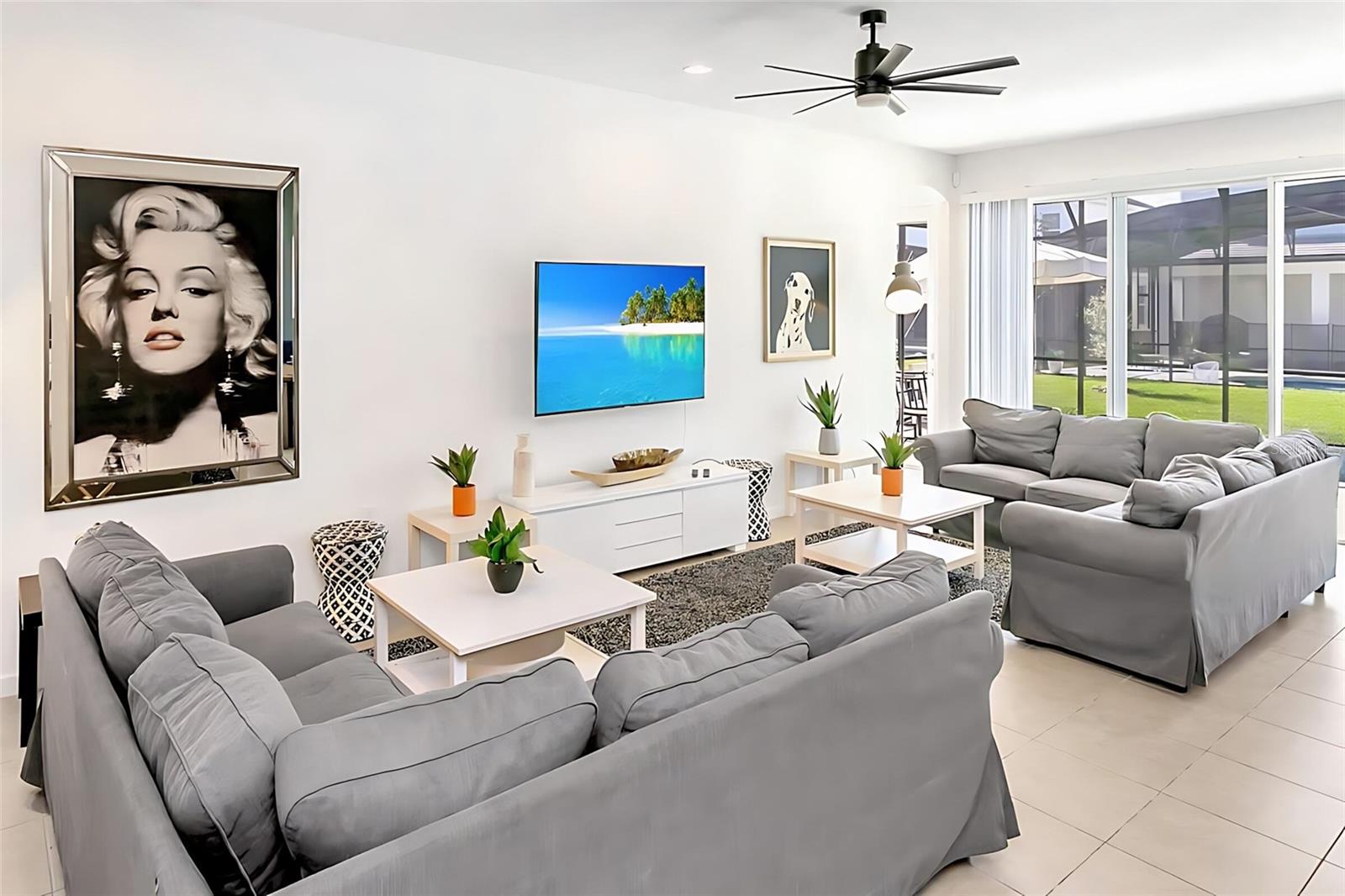 Luxury living in this excellent 10 bedrooms, 8 bathrooms, professionally decorated vacation home with a private screen enclosed swimming pool located in the exclusive Sonoma Resort Community. Conveniently located next to The Loop, a premier shopping and entertainment hub, and minutes away from all greater Orlando major attractions. The ample floor plan provides great space for relaxation and entertainment comfortably. With a modern, open-concept design, the living area flows seamlessly into a gourmet kitchen equipped with high-end appliances and plenty of cabinetry. The primary bedroom on the first floor has a deluxe en-suite bathroom with dual vanities, a walk-in shower, and a private walk-in closet. Sonoma Resort offers exceptional amenities including a luxury clubhouse with resort-style pool, cabanas, well-equipped fitness center, scenic walking/jogging trails, and 24-hours security. This splendid vacation home represents the perfect blend of comfort and convenience. Don’t miss out on this incredible opportunity to own a piece of paradise in the heart of Orlando! The property can be used as a short-term rental investment home.