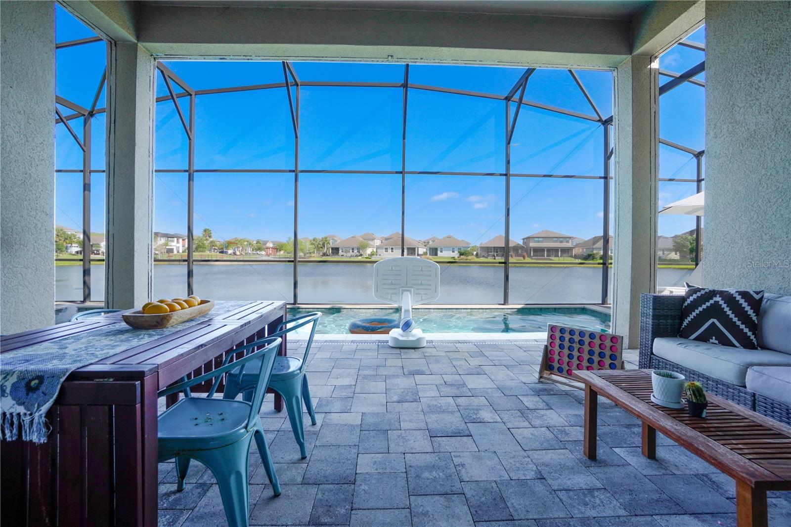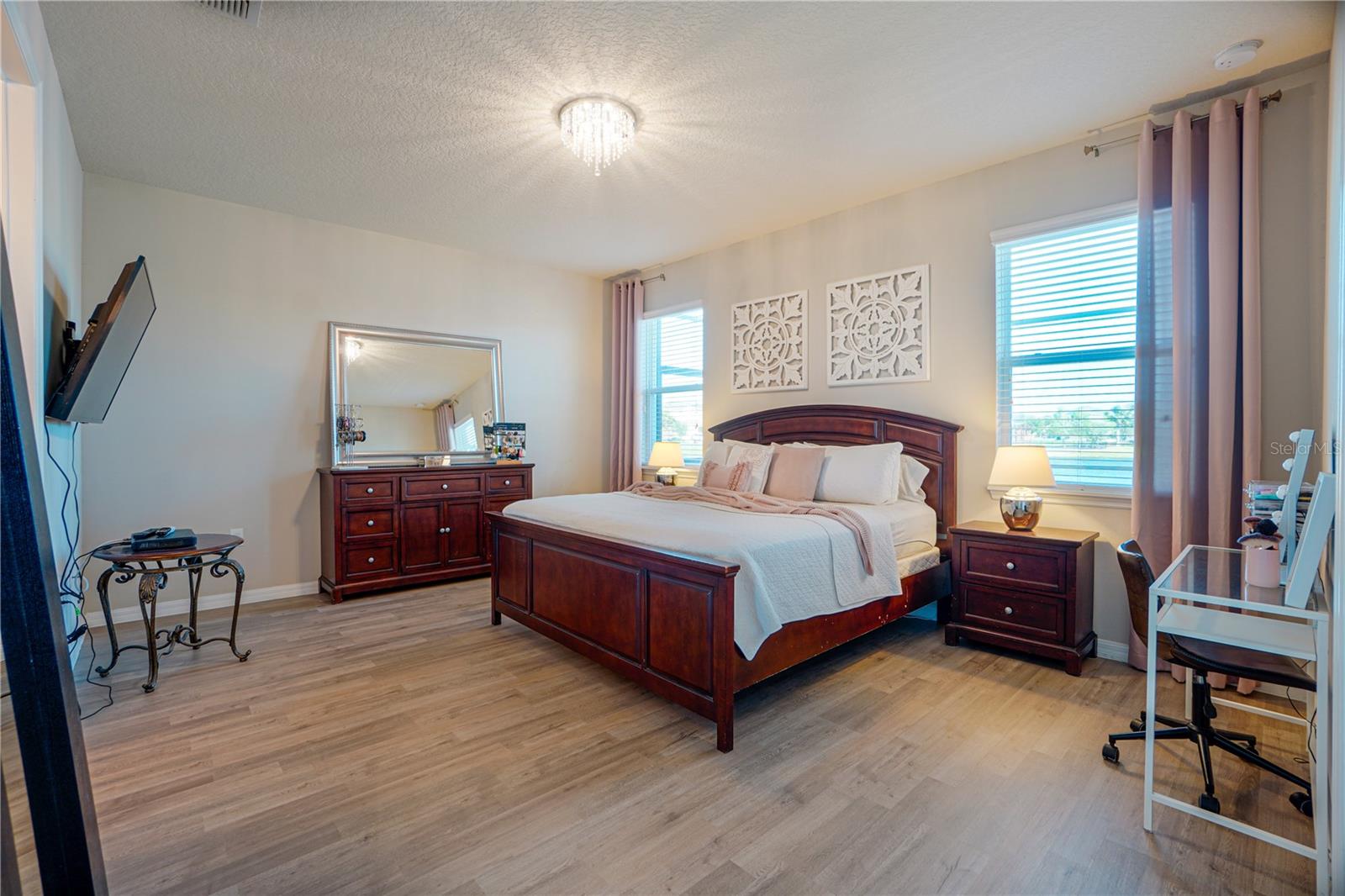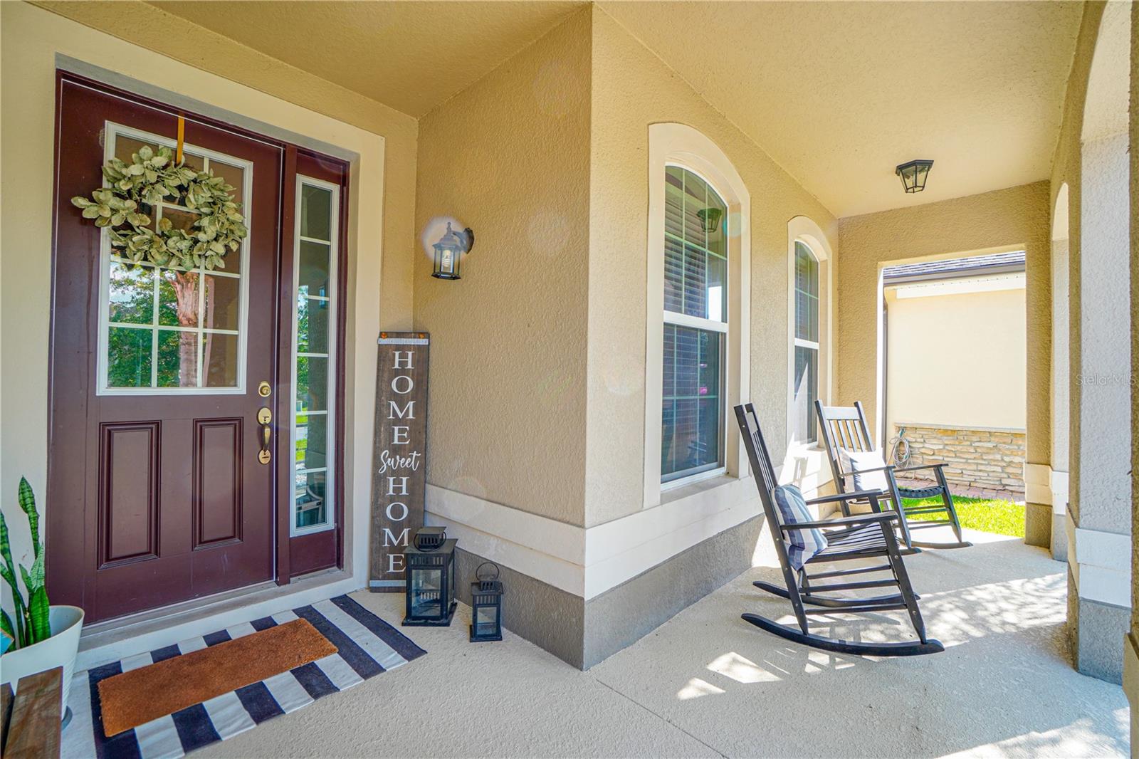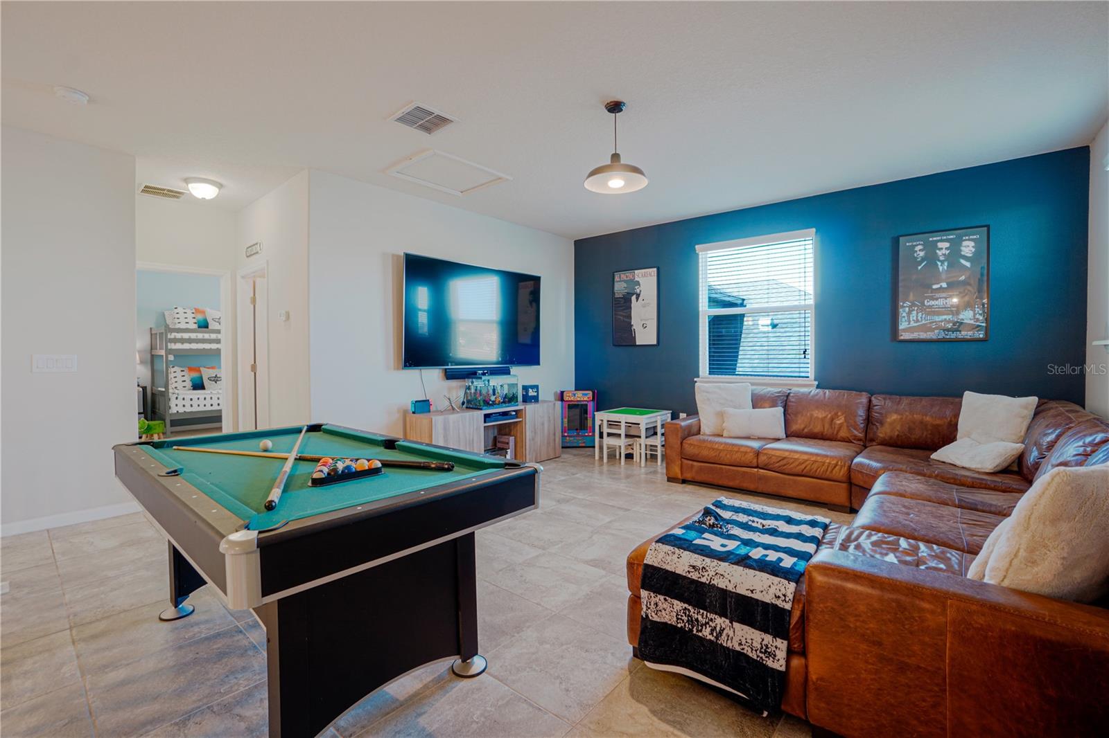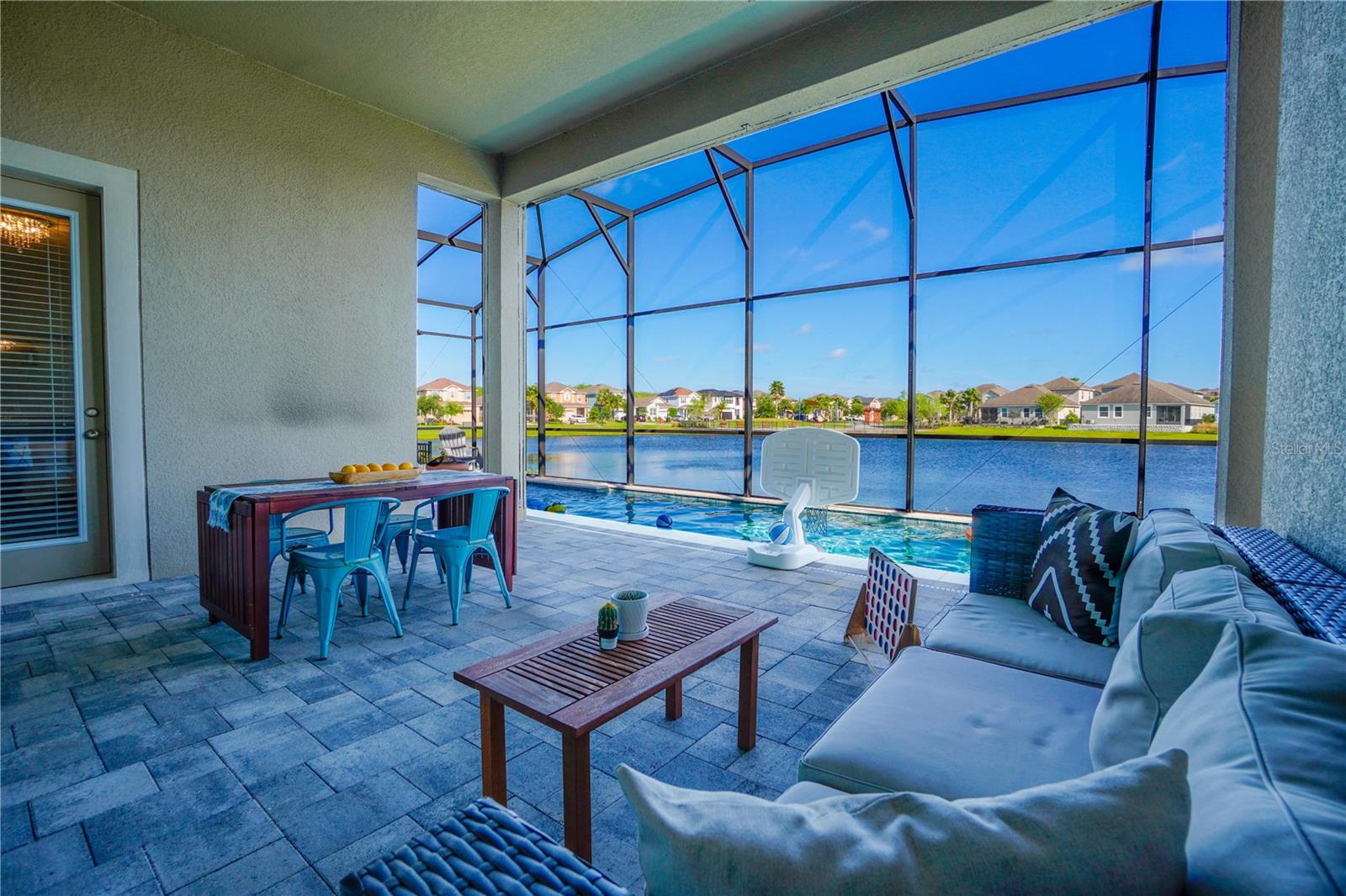 Welcome to this stunning 5-bedroom, 4-bath pool home located in the highly sought-after Tapestry community. From the moment you arrive, the charming front porch invites you in—and once inside, you’ll be captivated by elegant tray ceilings, designer light fixtures, and a bright, open layout. The formal living and dining areas offer a welcoming space for entertaining, while soaring ceilings and abundant natural light create an airy, luxurious feel. At the heart of the home, the gourmet kitchen is a chef’s dream—featuring granite countertops, stainless steel appliances, double ovens, a massive center island, upgraded cabinetry with crown molding, and ample cabinet and counter space, plus a cozy eat-in area. The kitchen flows seamlessly into the spacious family room, where oversized four-panel sliding doors open wide to reveal a sparkling screened-in pool with tranquil pond views—perfect for indoor-outdoor living and entertaining. The primary suite is a serene retreat, boasting elegant luxury vinyl flooring, dual vanities, a soaking tub, and a separate walk-in shower. Two additional bedrooms and a full hall bath are conveniently located off the family room, while a private guest bedroom and bathroom are tucked away at the back of the home. Upstairs, a generous loft offers flexible space—ideal for a kids’ lounge, home office, or game room—along with another full bedroom and bath. Enjoy Florida living at its finest from your private lanai, taking in the peaceful water views from the poolside. Tapestry is a premier gated community offering 24-hour security and resort-style amenities including a clubhouse, resort pool, fitness center, walking trails, dog park, playgrounds, sports fields, BBQ pavilion, ballroom, and an upgraded catering kitchen. Ideally located just minutes from The Loop shopping center, major highways, world-class dining, and Central Florida’s top attractions and theme parks. Don't miss your chance to own this incredible home—schedule your private showing today!