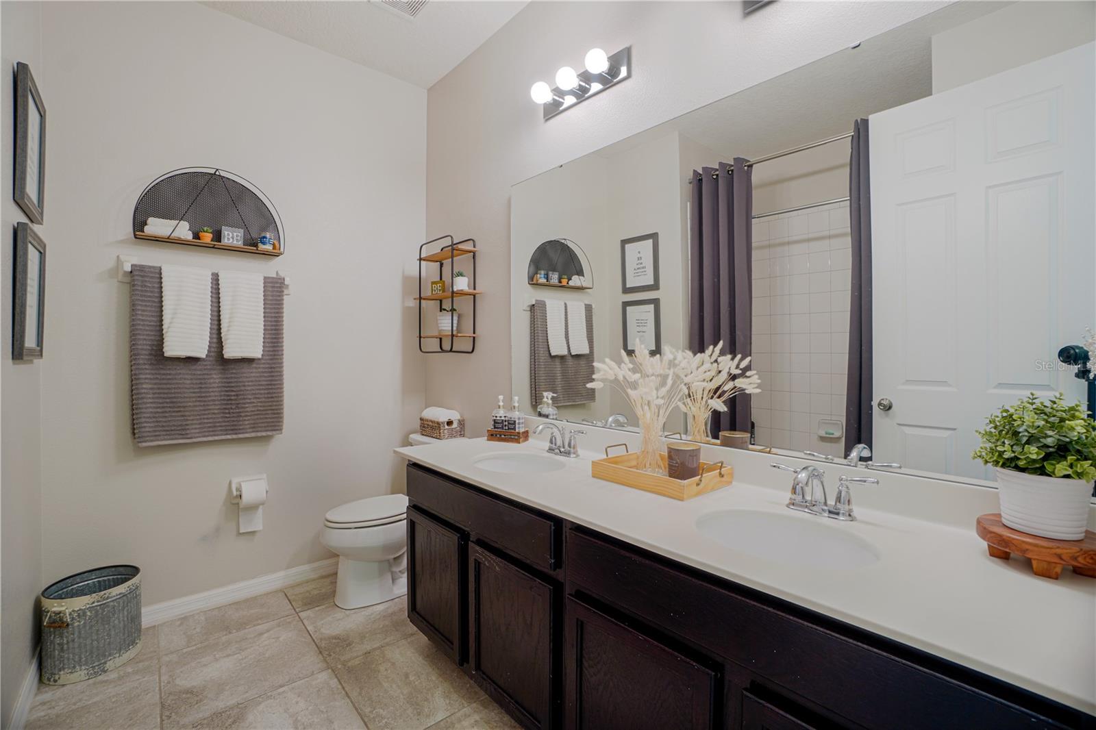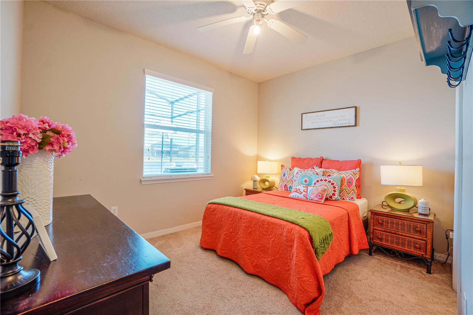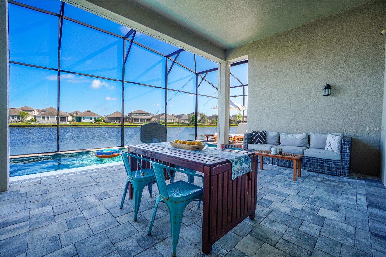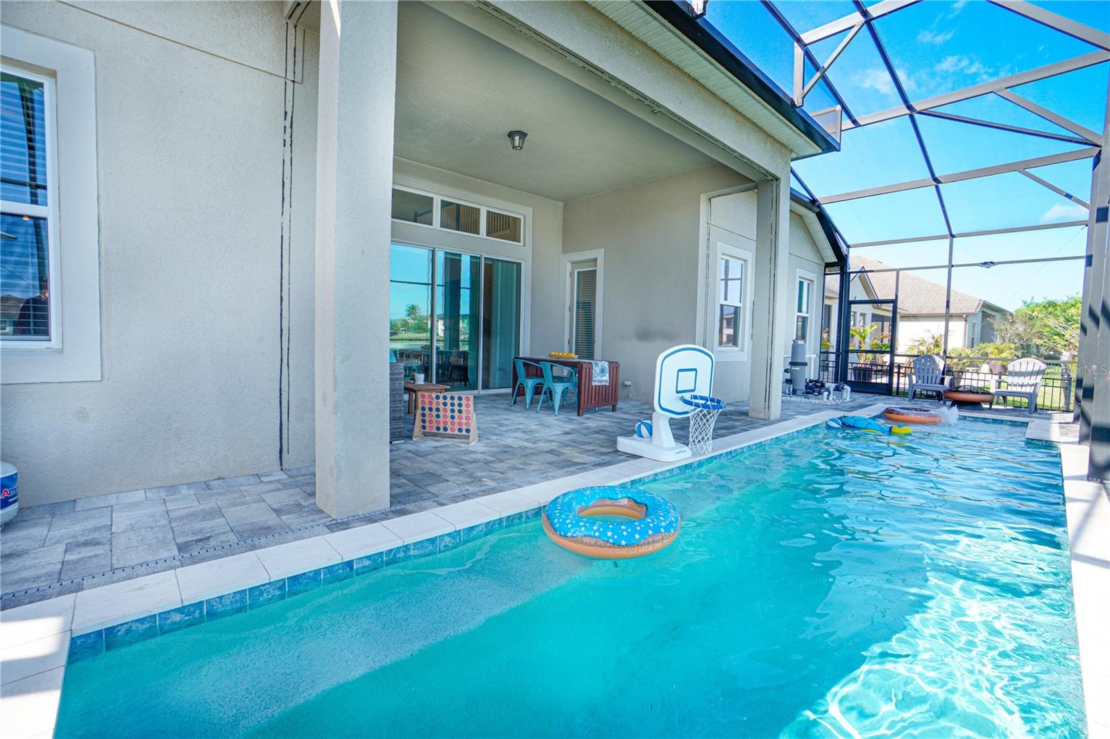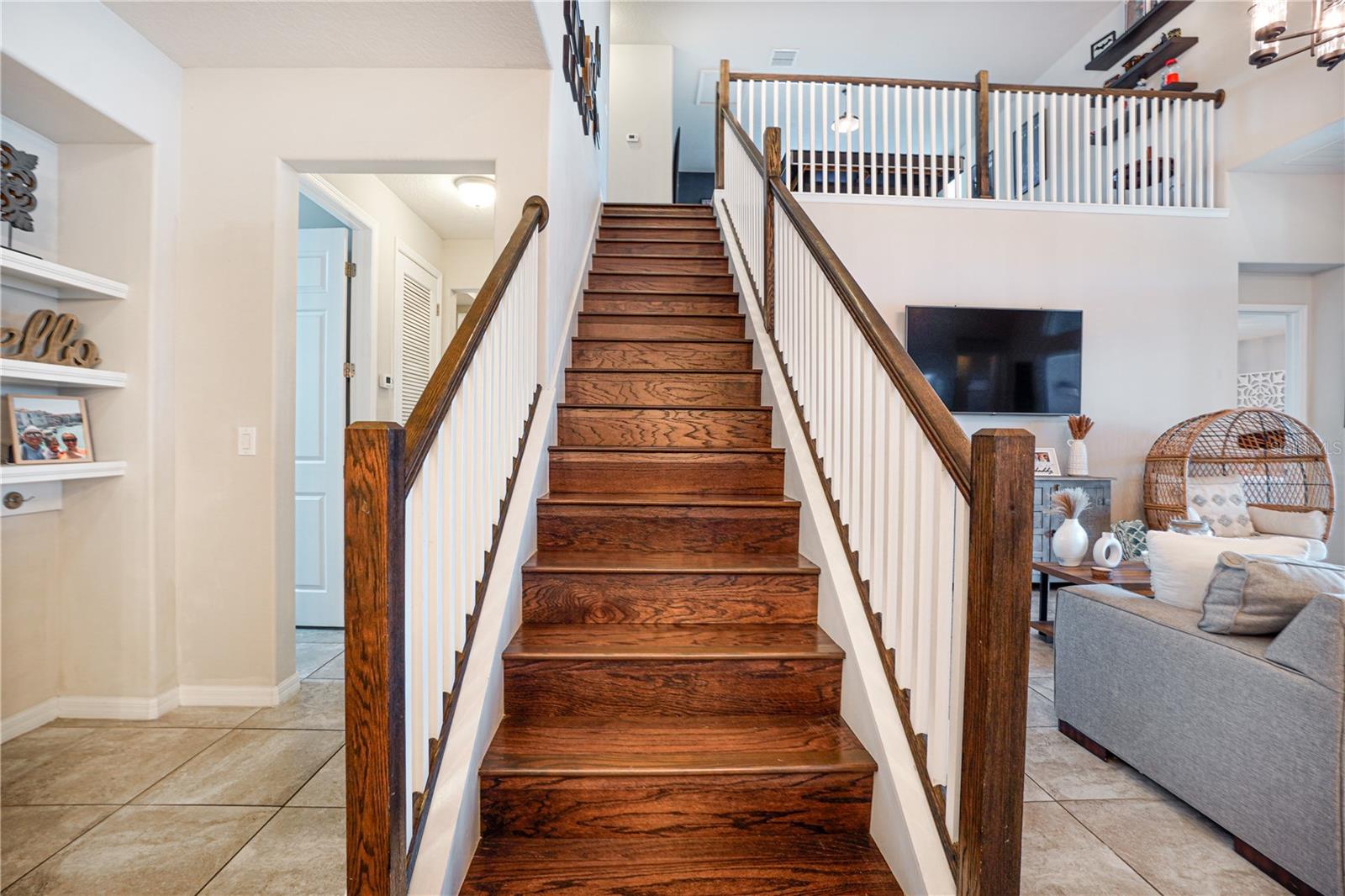 Welcome to this stunning 5-bedroom, 4-bath pool home located in the highly sought-after Tapestry community. From the moment you arrive, the charming front porch invites you in—and once inside, you’ll be captivated by elegant tray ceilings, designer light fixtures, and a bright, open layout. The formal living and dining areas offer a welcoming space for entertaining, while soaring ceilings and abundant natural light create an airy, luxurious feel. At the heart of the home, the gourmet kitchen is a chef’s dream—featuring granite countertops, stainless steel appliances, double ovens, a massive center island, upgraded cabinetry with crown molding, and ample cabinet and counter space, plus a cozy eat-in area. The kitchen flows seamlessly into the spacious family room, where oversized four-panel sliding doors open wide to reveal a sparkling screened-in pool with tranquil pond views—perfect for indoor-outdoor living and entertaining. The primary suite is a serene retreat, boasting elegant luxury vinyl flooring, dual vanities, a soaking tub, and a separate walk-in shower. Two additional bedrooms and a full hall bath are conveniently located off the family room, while a private guest bedroom and bathroom are tucked away at the back of the home. Upstairs, a generous loft offers flexible space—ideal for a kids’ lounge, home office, or game room—along with another full bedroom and bath. Enjoy Florida living at its finest from your private lanai, taking in the peaceful water views from the poolside. Tapestry is a premier gated community offering 24-hour security and resort-style amenities including a clubhouse, resort pool, fitness center, walking trails, dog park, playgrounds, sports fields, BBQ pavilion, ballroom, and an upgraded catering kitchen. Ideally located just minutes from The Loop shopping center, major highways, world-class dining, and Central Florida’s top attractions and theme parks. Don't miss your chance to own this incredible home—schedule your private showing today!