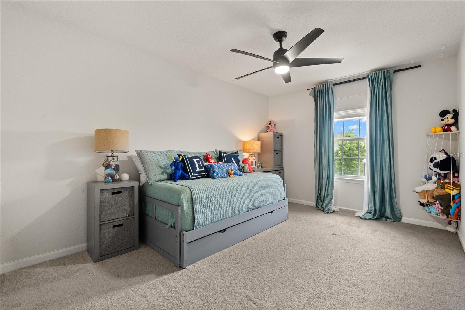 Recent Price Reduction! Welcome to 4301 Creek Bank Dr, a delightful 5-bedroom, 2.5-bathroom residence offering 2,370 sq. ft. of comfortable living space. Built in 2020, this home is nestled within the intimate gated community of Creekside, just 4 miles from Lake Nona's vibrant shopping, dining, and Medical City. Key Features: Spacious Layout: The open-concept design seamlessly connects the kitchen and great room, creating an inviting space for gatherings. Modern Kitchen: Equipped with solid surface counters, solid wood cabinets, and a convenient eating space, perfect for culinary enthusiasts. Owner's Suite: A luxurious retreat featuring double door entry, two walk-in closets, and an en-suite bathroom with dual sinks and a walk-in shower with seating. Versatile Loft: The upstairs loft offers flexibility as a media or game room, catering to various lifestyle needs. Energy Efficiency: Fitted with ENERGY STAR qualified windows, energy-efficient appliances, and a programmable thermostat for enhanced comfort and savings. Community Amenities: Enjoy access to a clubhouse, pool, playground, and recreational facilities within the gated community.