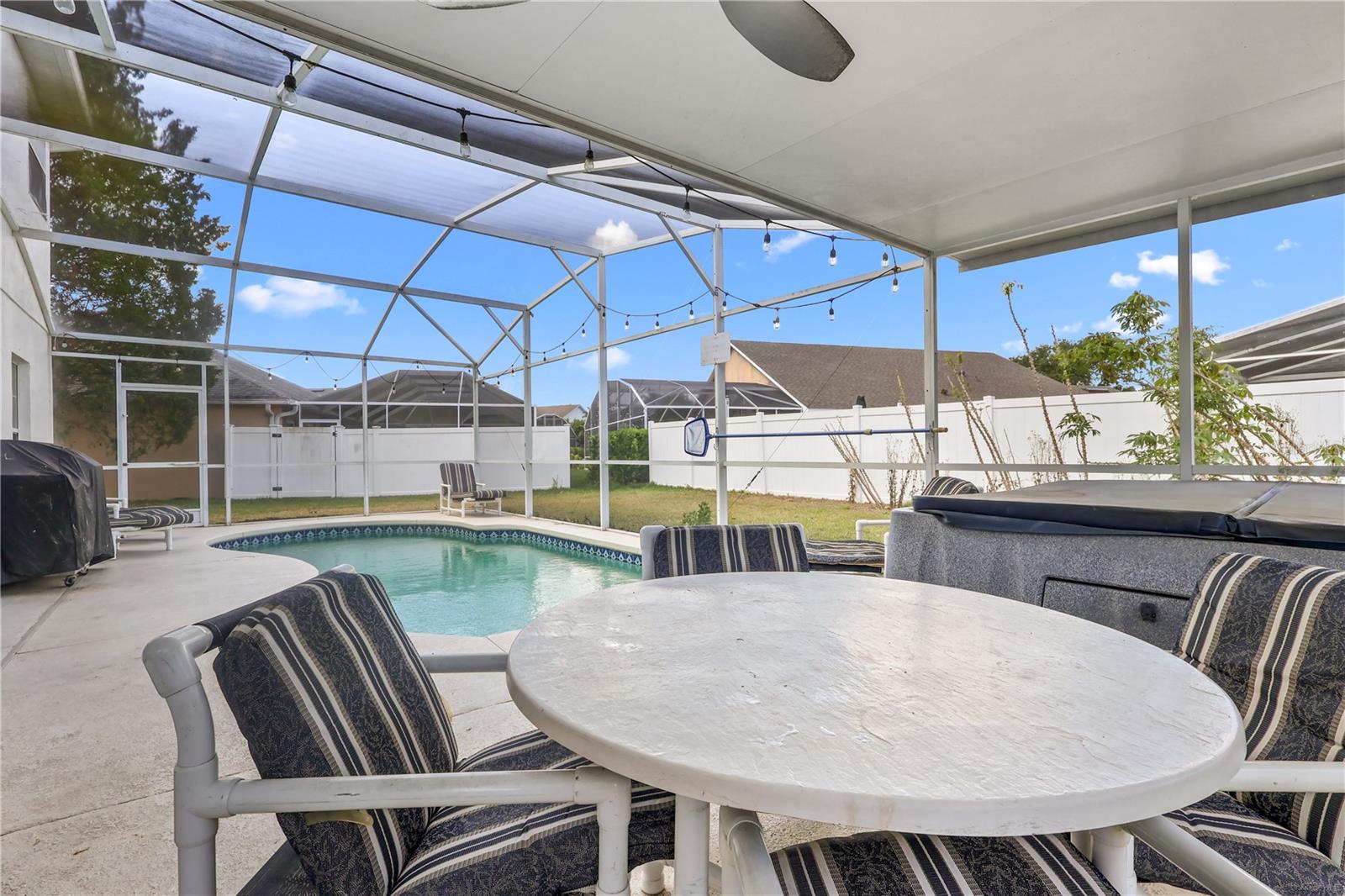 Welcome to this stunning 4-bedroom, 3-bathroom home ready for its next owner! Whether you’re searching for a primary residence, a second home, or a smart investment property, this versatile gem has it all. Located in a desirable short-term rental community with a low HOA, and just 10 minutes from Disney World, the location truly can’t be beat! Inside, you’ll find a spacious open-concept layout with brand new flooring throughout the bedrooms and main living areas. Step outside to your screened-in private pool and separate hot tub, perfect for relaxation or entertaining guests. You’re just minutes from everything you need, hopping and dining are only 5 minutes away on Highway 192. Even better, you’re 3 miles from Margaritaville Resort and Sunset Walk, home to a dine-in movie theater, top-notch restaurants, boutique shopping, and the exciting Island H2O Live! Water Park. With tons of entertainment nearby and new attractions and developments popping up all the time, this home puts you at the center of it all. Nestled in a quiet, peaceful neighborhood, it’s the perfect blend of comfort and convenience. Don’t miss out and schedule your private tour today!
