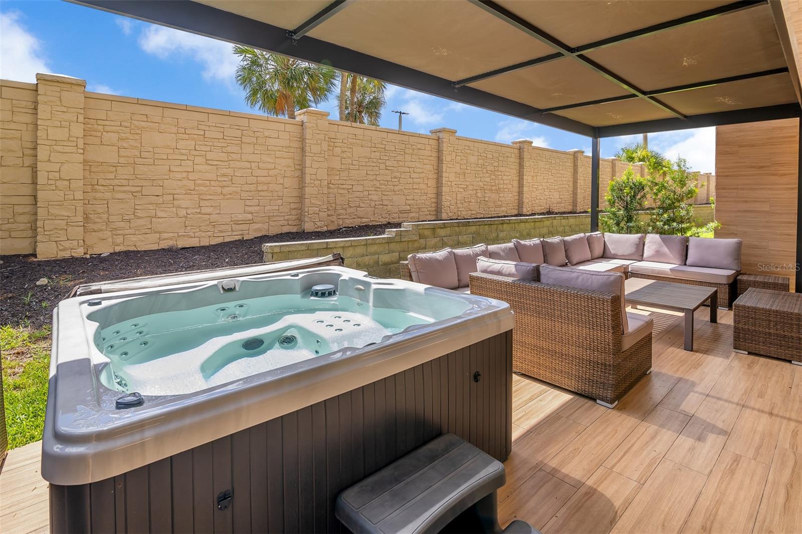 One or more photo(s) has been virtually staged. Luxury 4-bed / 4.5-bath townhouse just 5 minutes from Disney theme parks! Fully furnished and designed for short-term rental income, this unit features an impressive private patio with over $40,000 invested in custom upgrades: modern pergola, built-in BBQ and countertop, and a jacuzzi for the ultimate outdoor experience. Spacious gourmet kitchen, full-size laundry, and resort-style amenities including 24-hour concierge, clubhouse, fitness center, playroom, and on-site restaurant. A perfect blend of resort living and personal comfort – ideal for investors or second-home buyers. Strong rental history and high occupancy year-round!