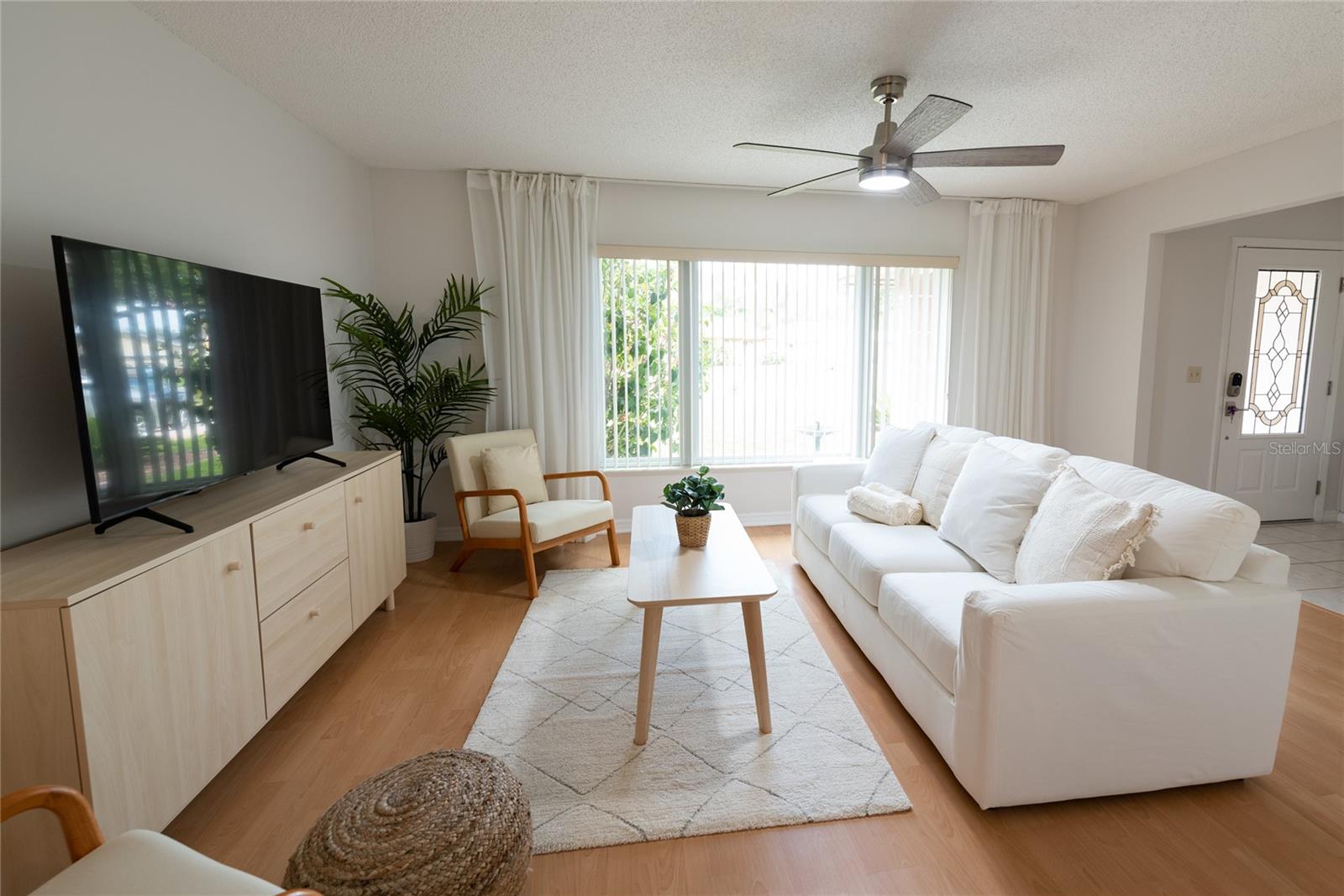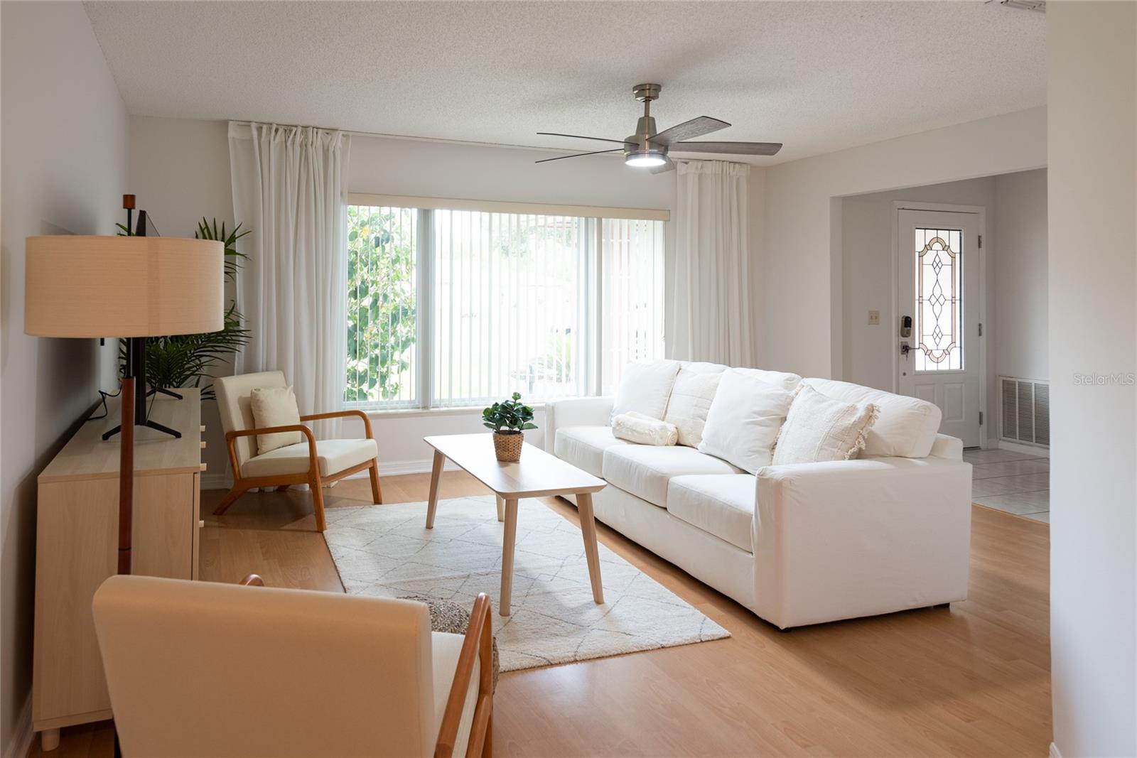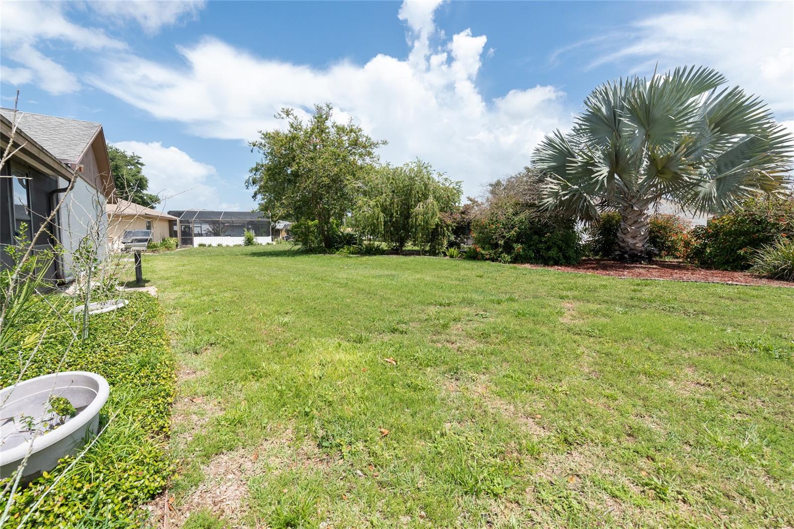Lovely 3 Bedroom 2 Bathroom home on over a 1/2 ACRE lot. This community has easy access to major roadways, 10 minutes away from Disney theme parks, area attractions, dining, shopping, and entertainment. NEW ROOF installed AUGUST 2023. The LOW HOA fees and amenities include a community pool, tennis court, basketball court, sand volleyball, baseball diamond, two playgrounds, and sidewalks throughout the community. The home boasts a split floorplan, vaulted ceilings, ceiling fans in the bedrooms & throughout, lovely light wood laminate flooring, and ceramic tile. The kitchen features wood cabinetry, recessed lighting, and crown molding. The family room is directly off the kitchen and leads to the OVERSIZED 30x12 FLORIDA sunroom.... just perfect for entertaining, family gatherings, additional living space, and so much more! Make this house your new home, long-term rental investment, or short-term rental investment. Call for more information TODAY!
